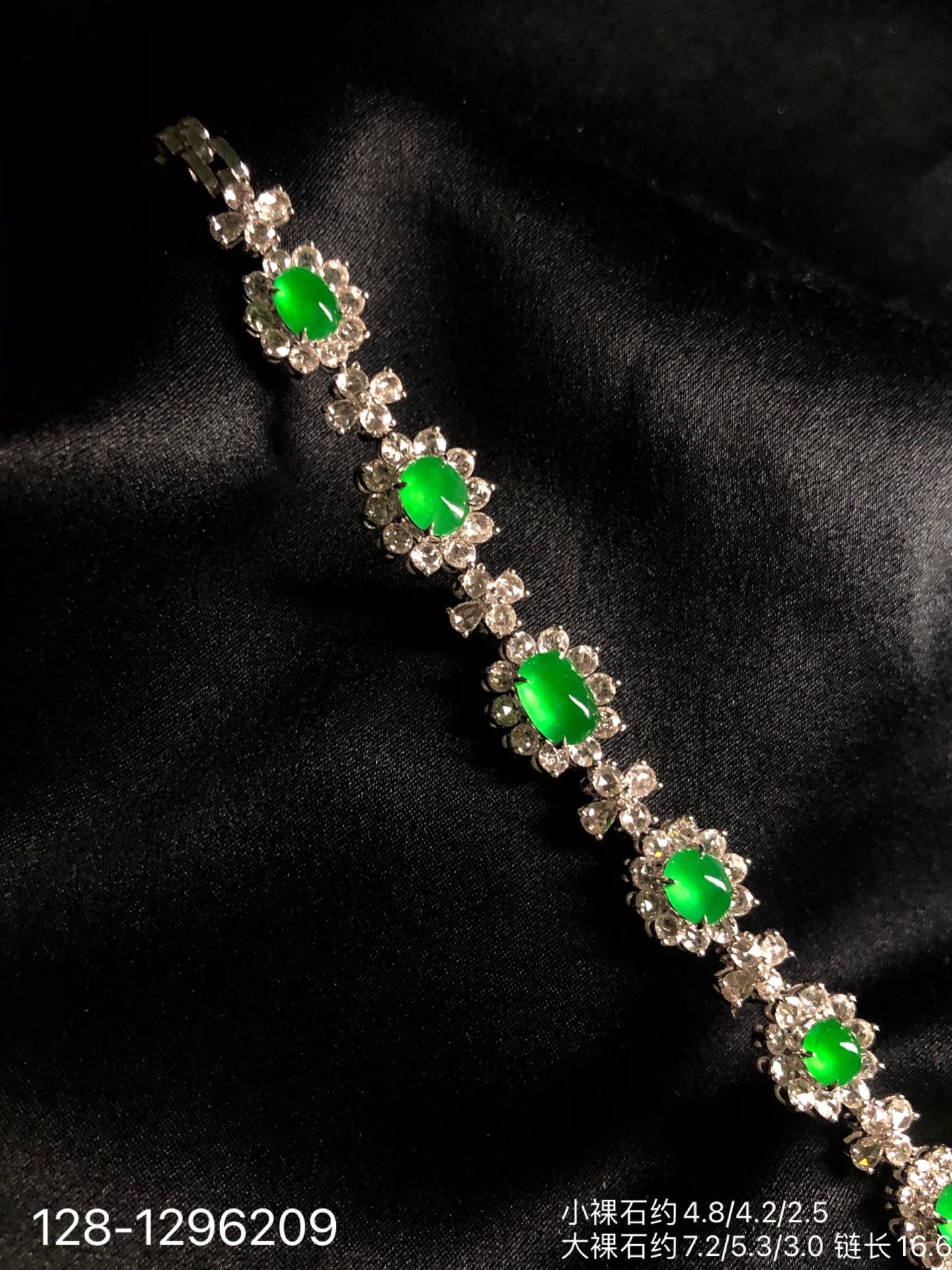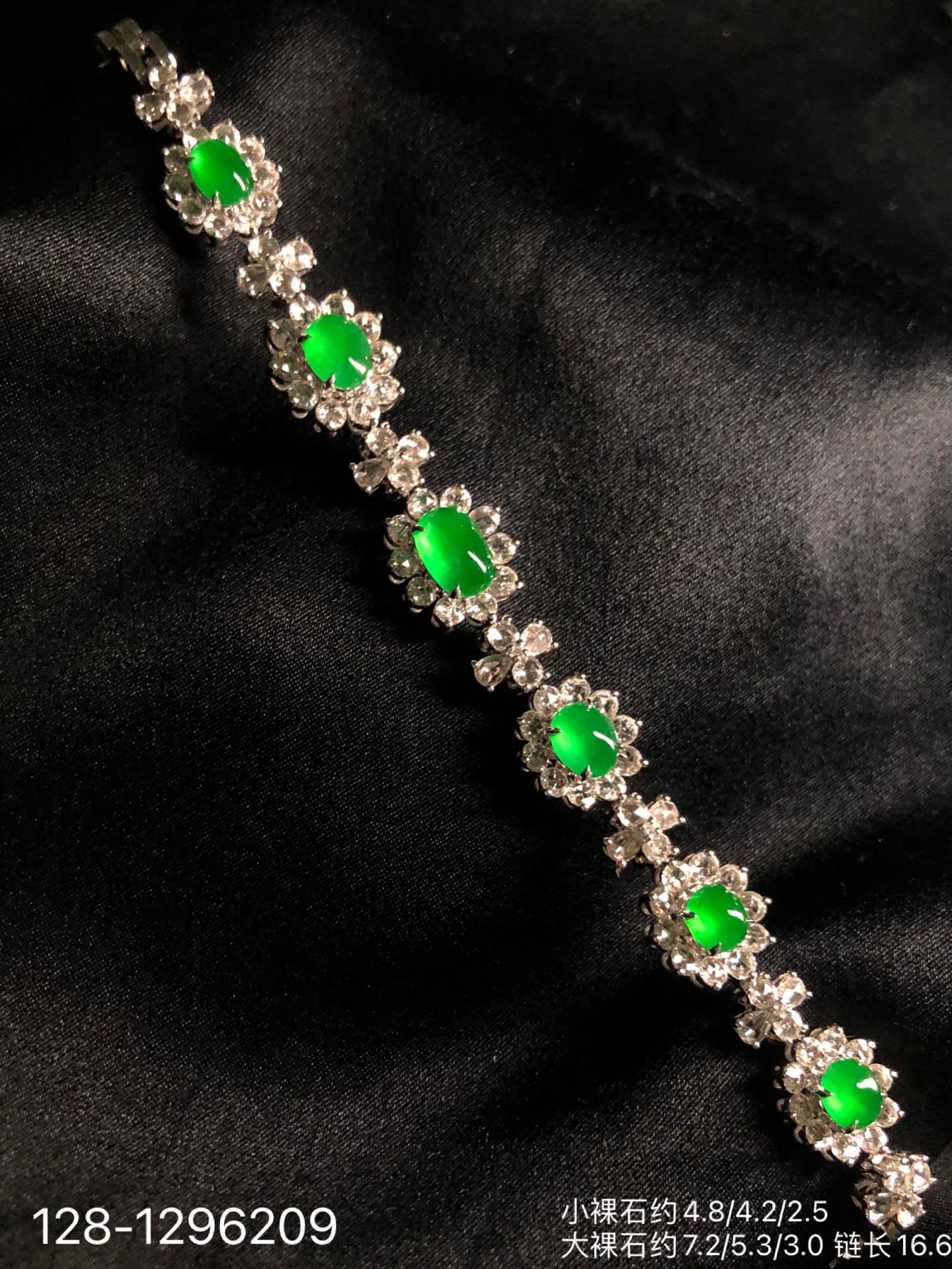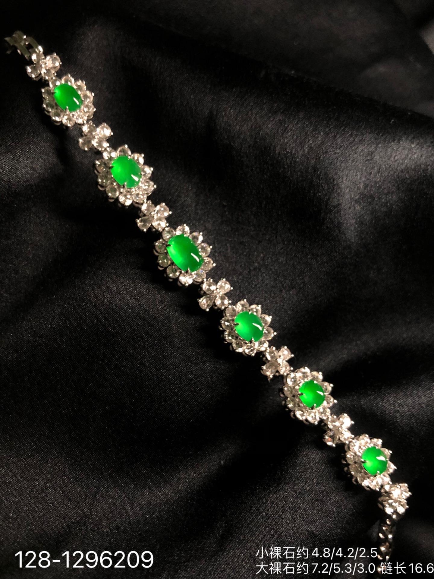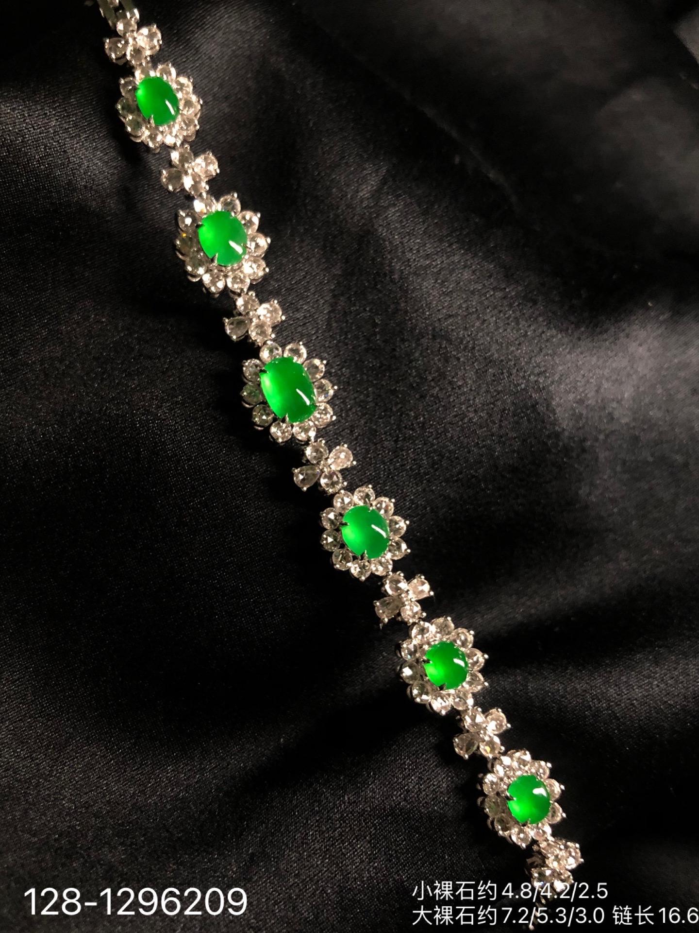 128-1296209,玻璃种木那艳绿蛋面手链,98999