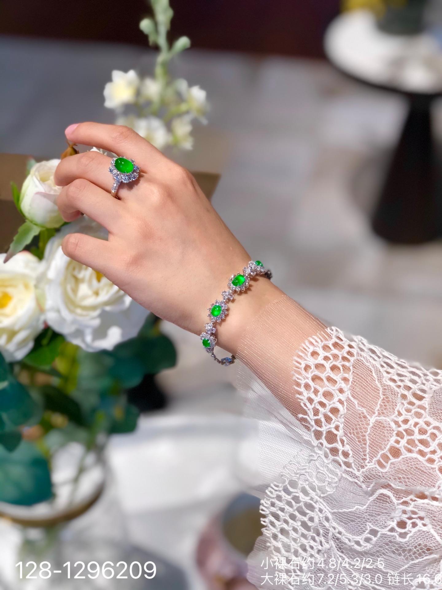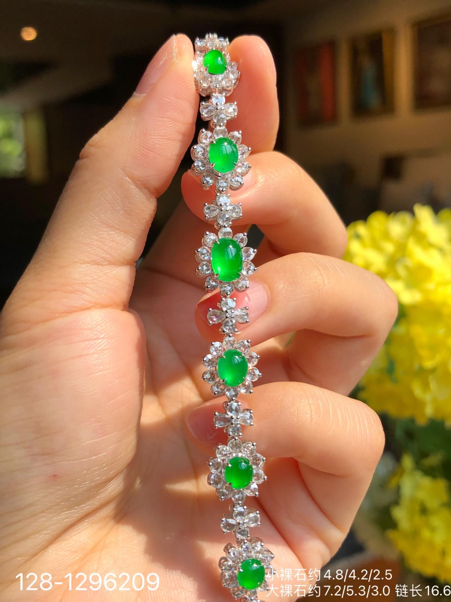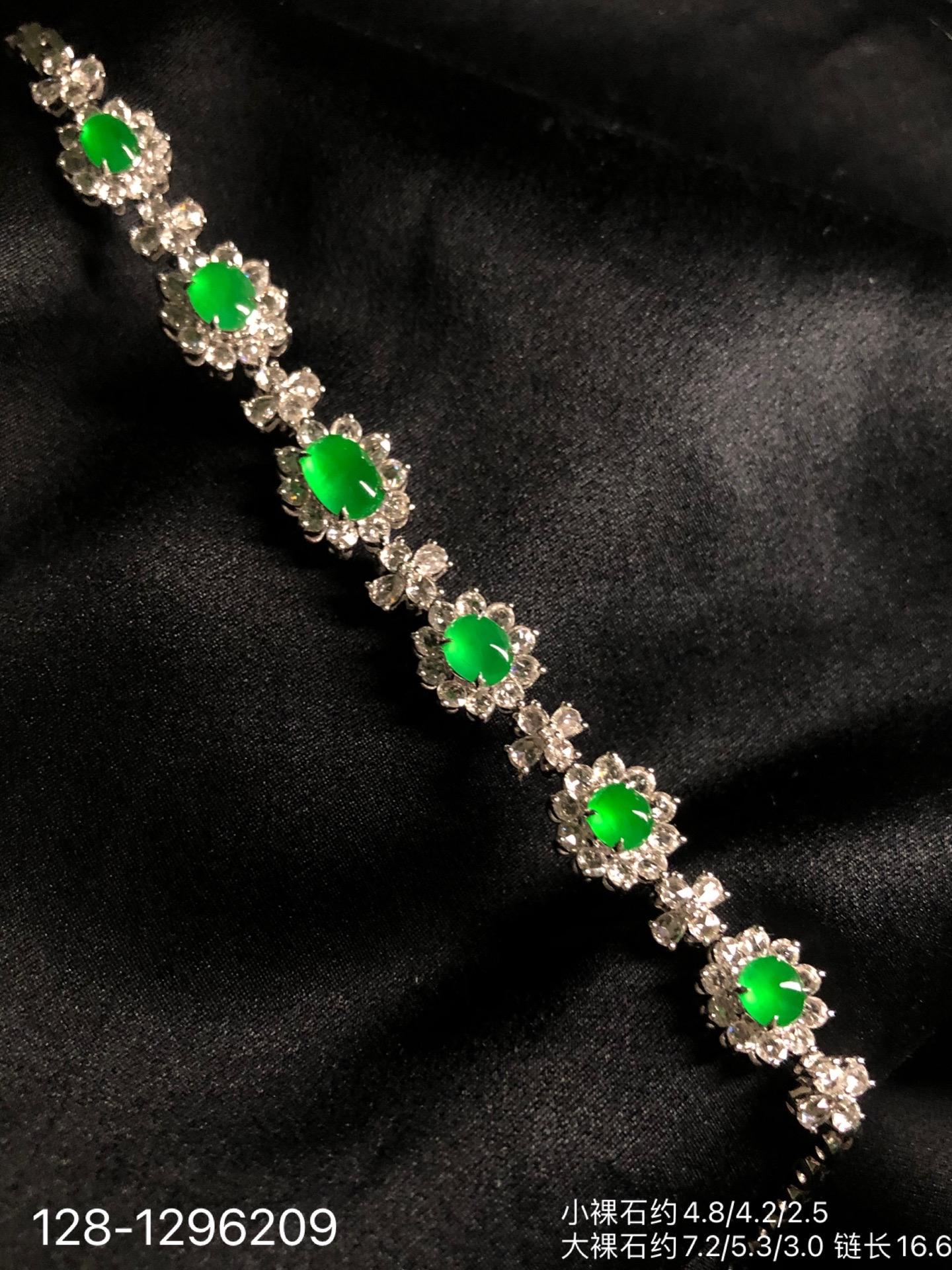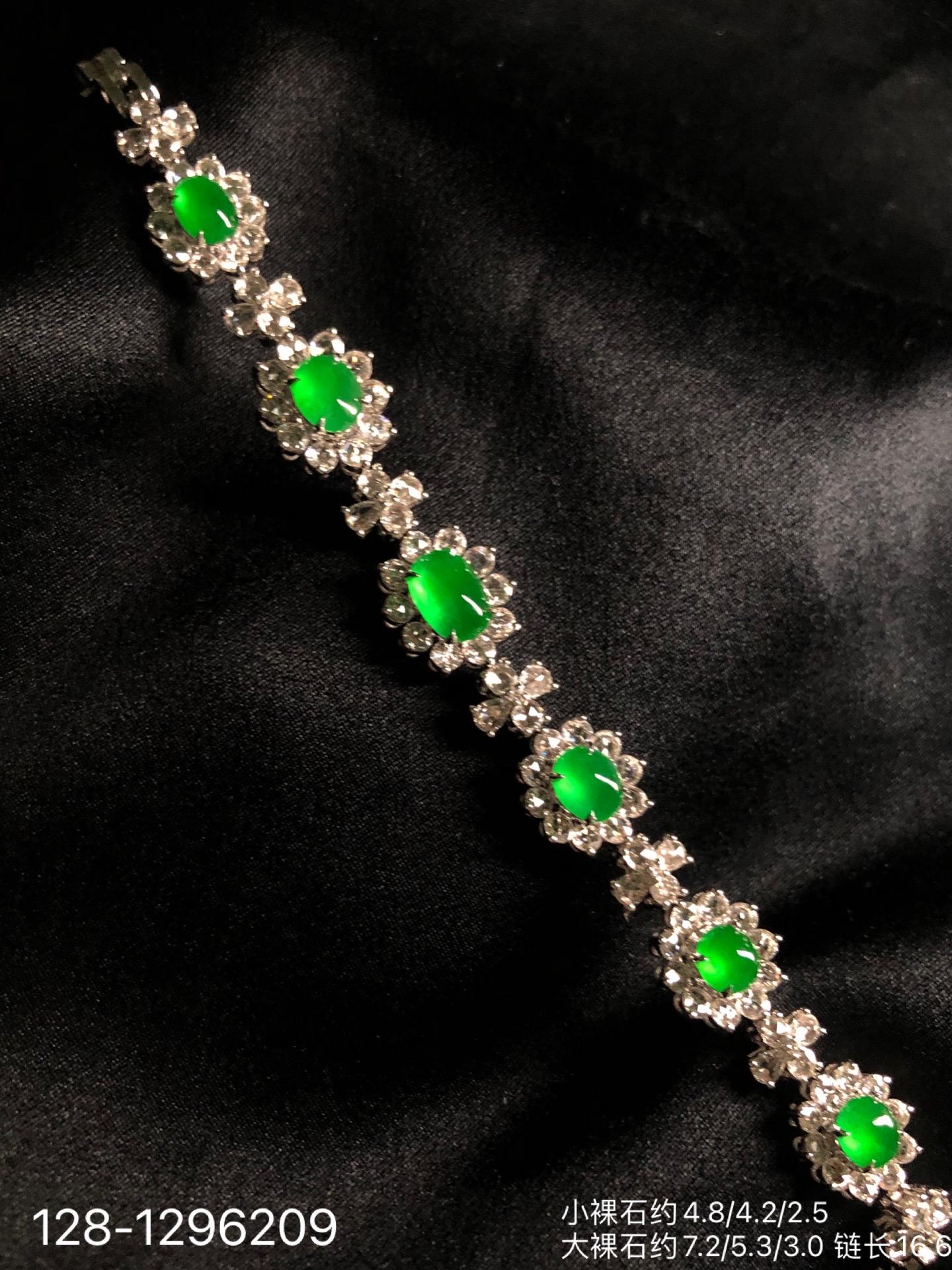 128-1296209,玻璃种木那艳绿蛋面手链,98999