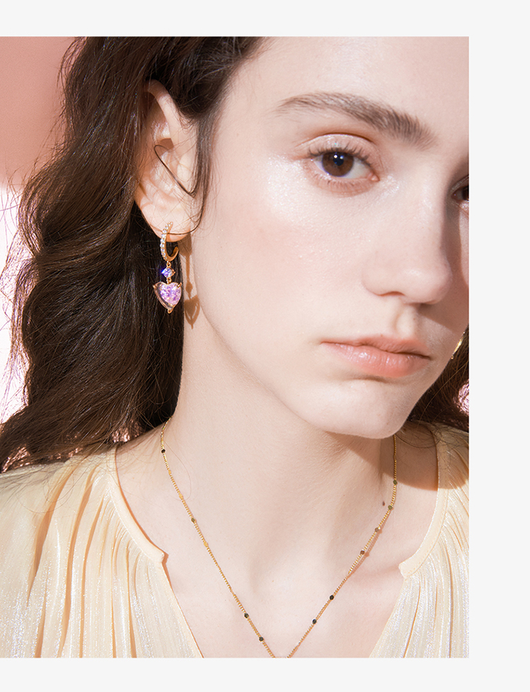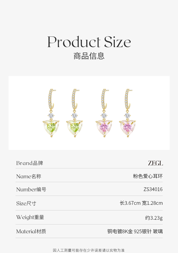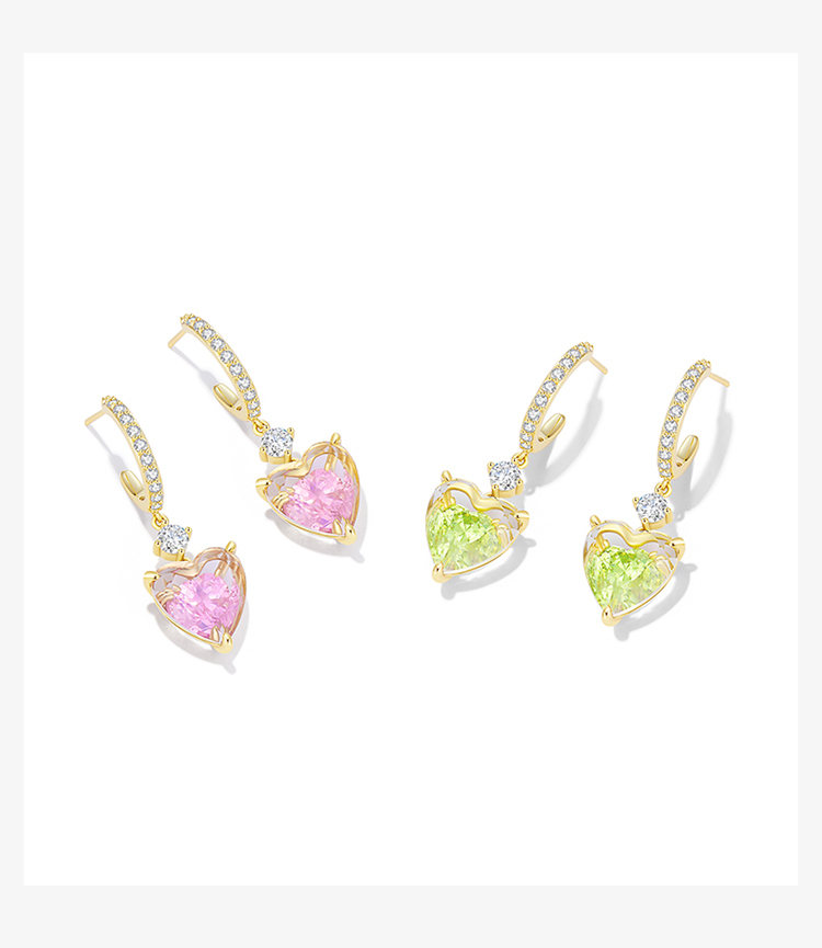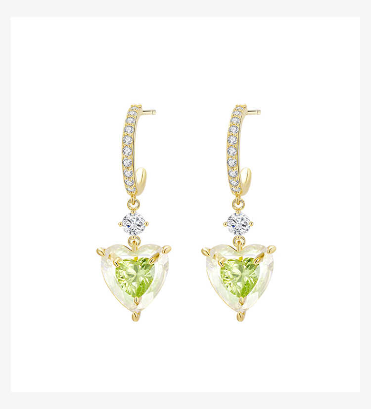 ZEGL设计师早春调色盘系列绿色爱心耳环女小众设计感耳钉银针耳饰