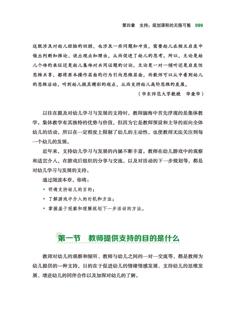 专业支持体系:详细阐述放手后的“观察、解读、支持、反思”要义和策略,助力教师真正成为幼儿游戏的支持者、合作者、引导者。