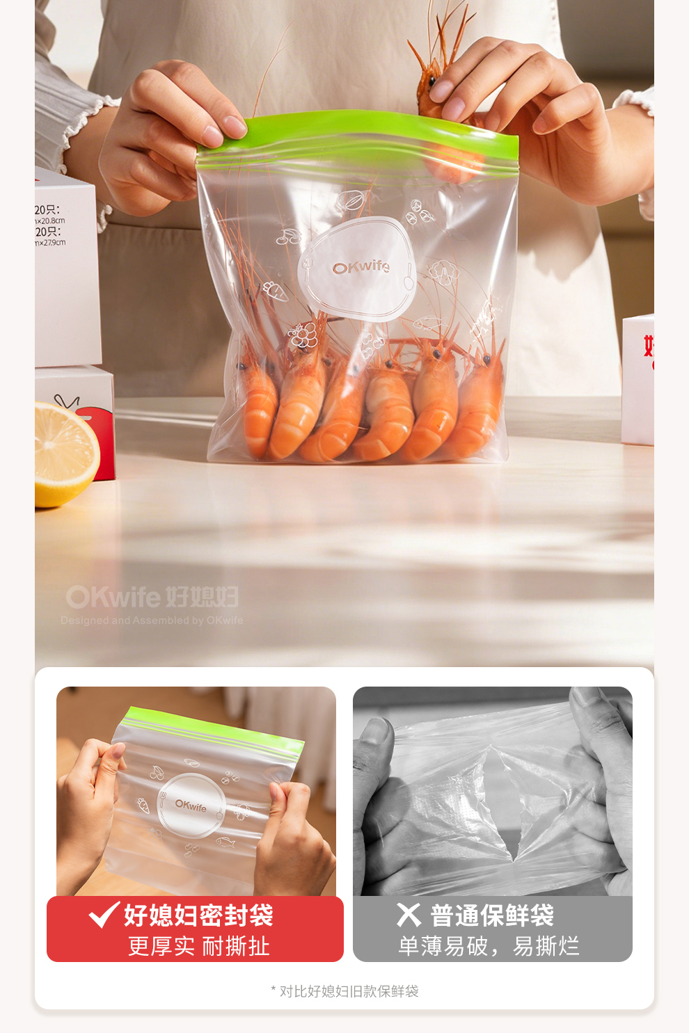 好媳妇密封袋食品级保鲜袋家用自封袋塑封加厚冰箱冷冻食品分装袋