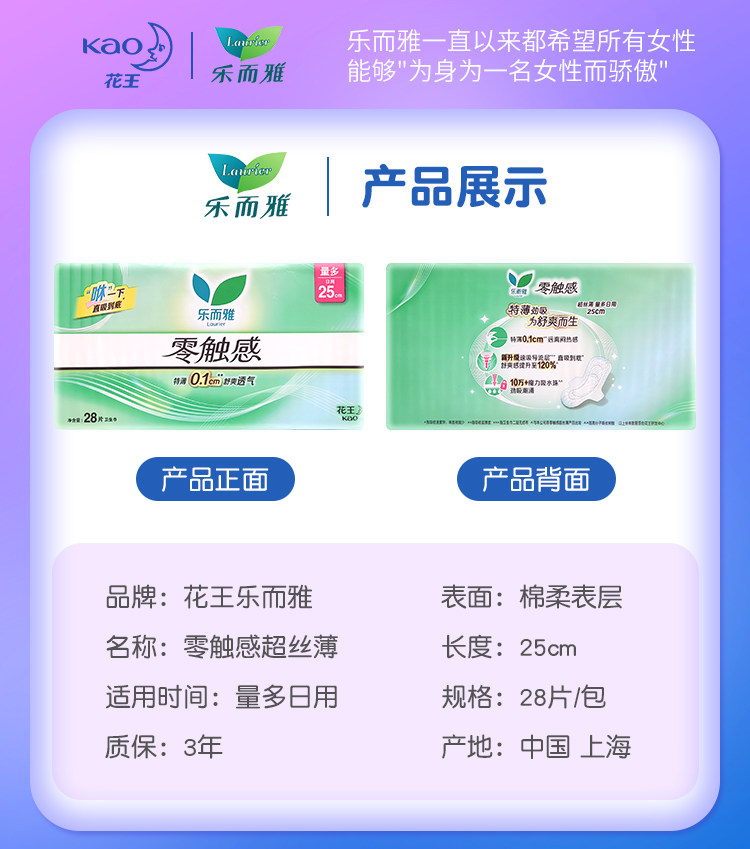 花王乐而雅 零触感特薄日用卫生巾25cm*28p
