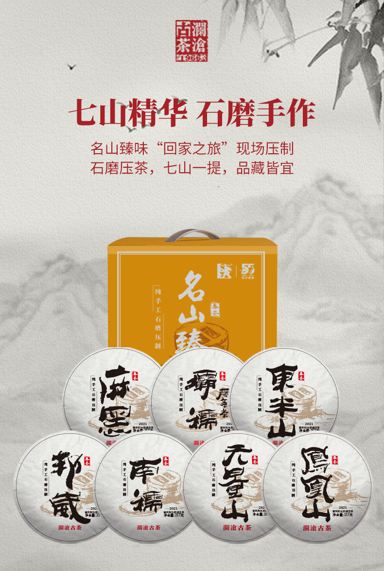 【回家之旅专属】澜沧古茶2021年七座名山古树石磨压茶357g*7山装