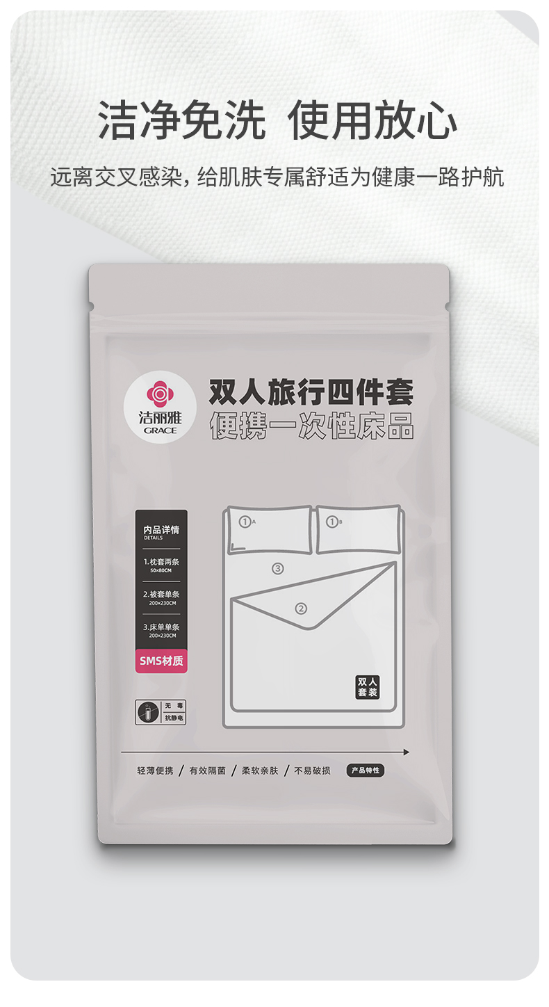 【差旅一次性床单】被套枕套四件套装旅游酒店床上用品隔脏浴巾