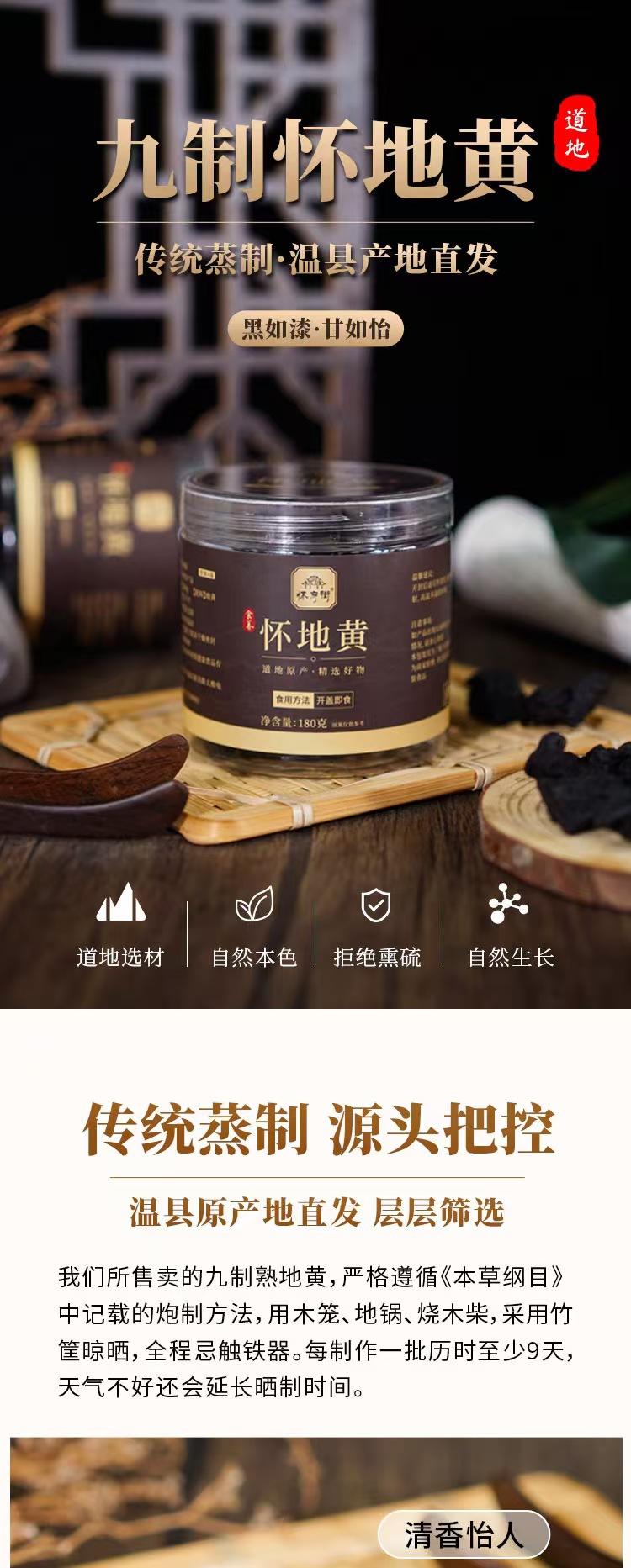 怀府街 | 九制怀地黄即食 传统蒸制拒绝熏硫肉质厚实180g/罐