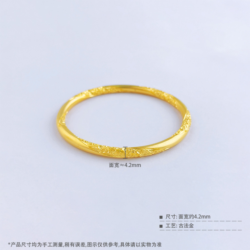 【限时克减150元】足金999.99 #莫比乌斯 五9古法空心固口手镯祥云斜纹莫比乌斯手镯(面宽约3.3-3.7mm)(ACGFSZ00012)(预售产品下单后不退款不退货不换货不补差价)