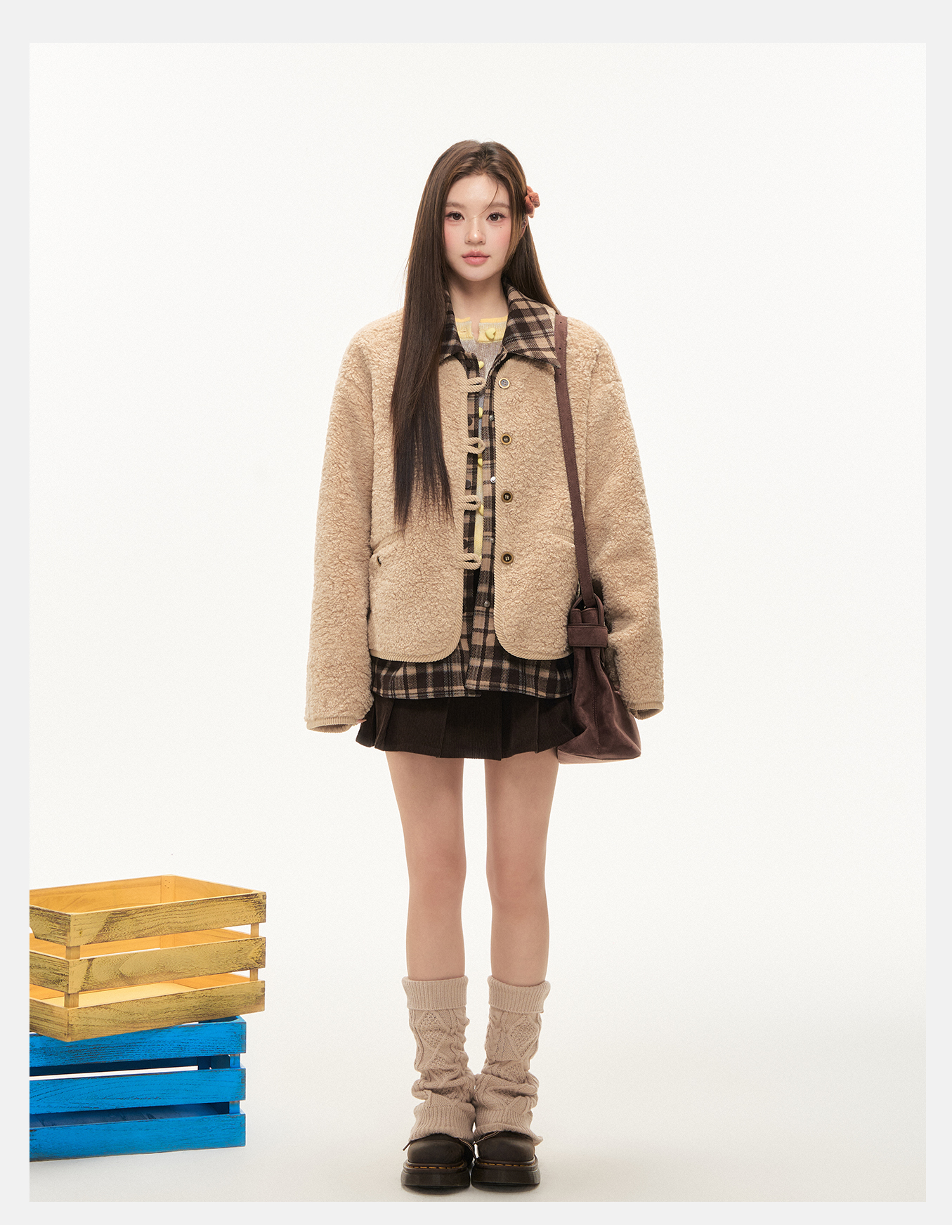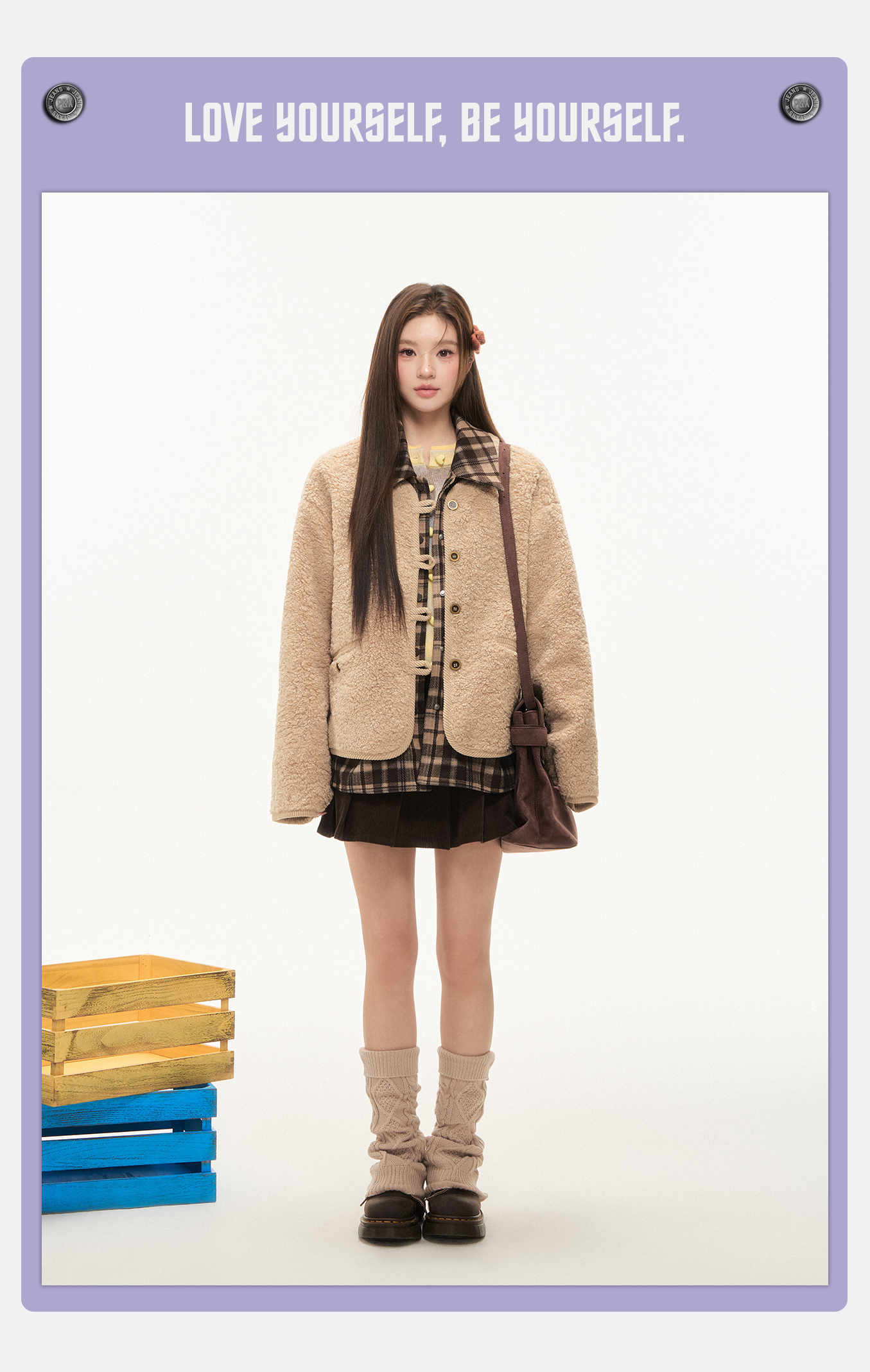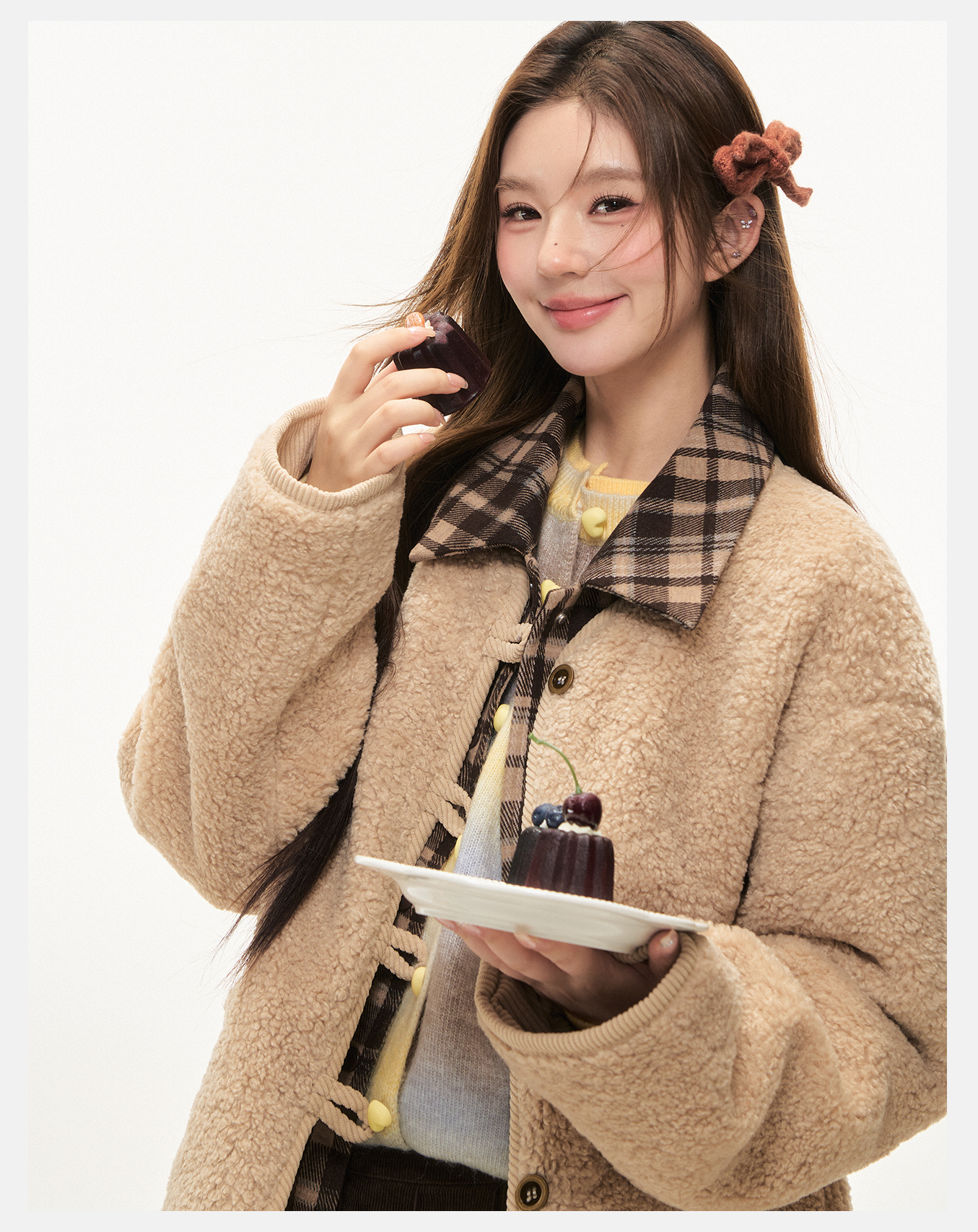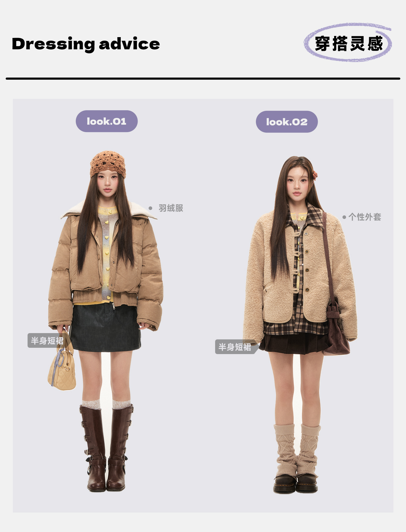 P&X设计师女装2025冬季假两件拼接梭织短款外套 825413240 卡其