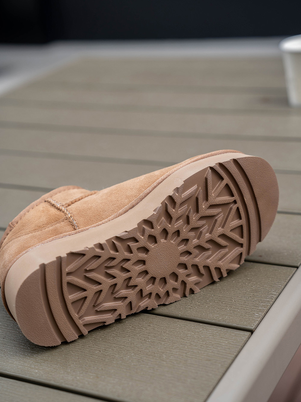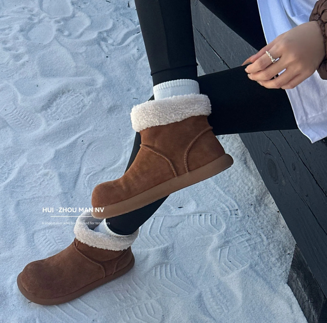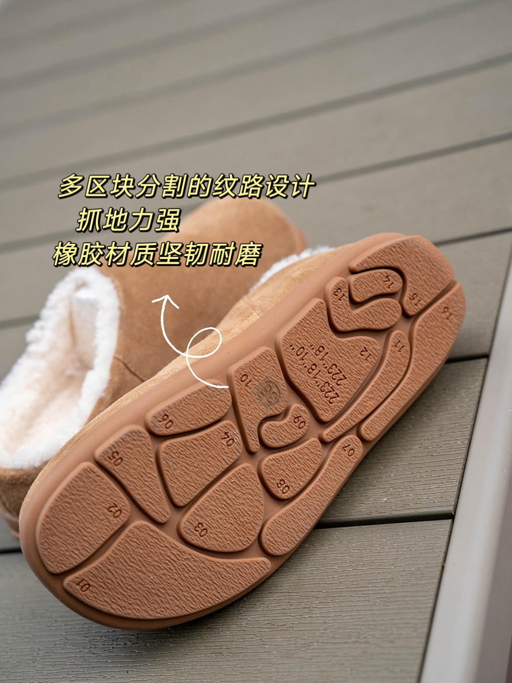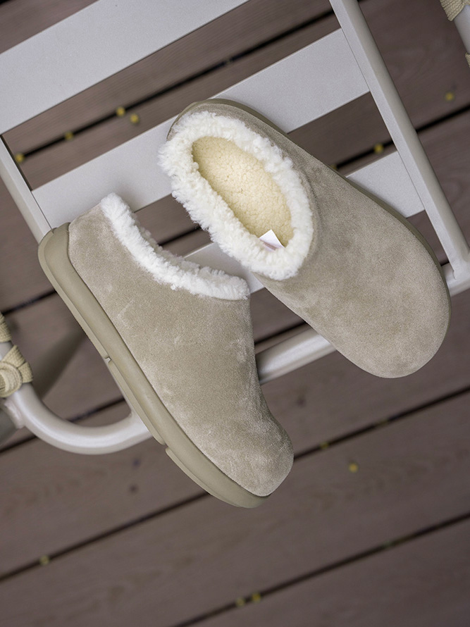 皮毛一体设计,内里丰厚羊羔绒, 双脚就像踩进棉花里,防寒锁温!开模防滑橡胶大底,轻便耐磨久走不累~