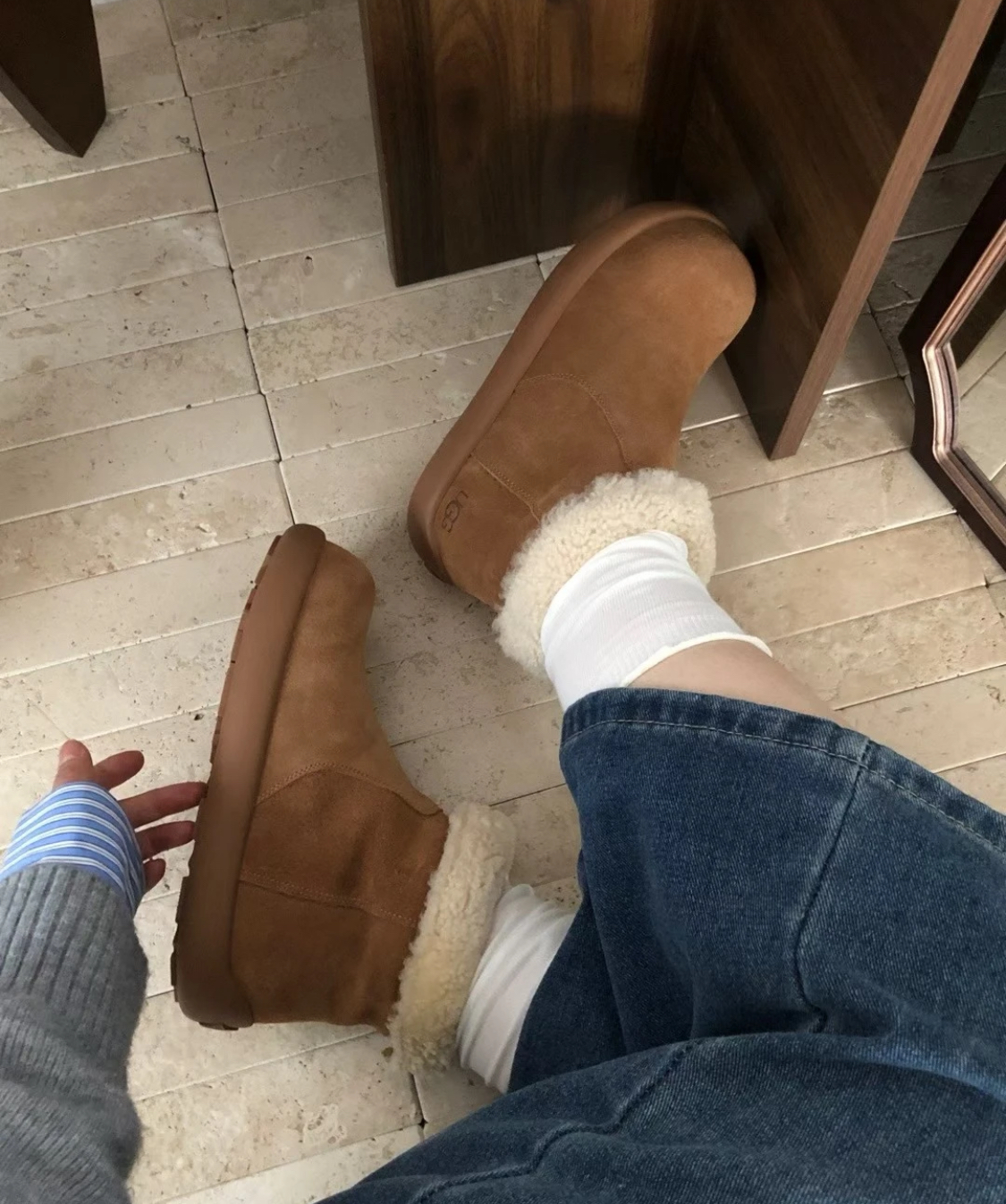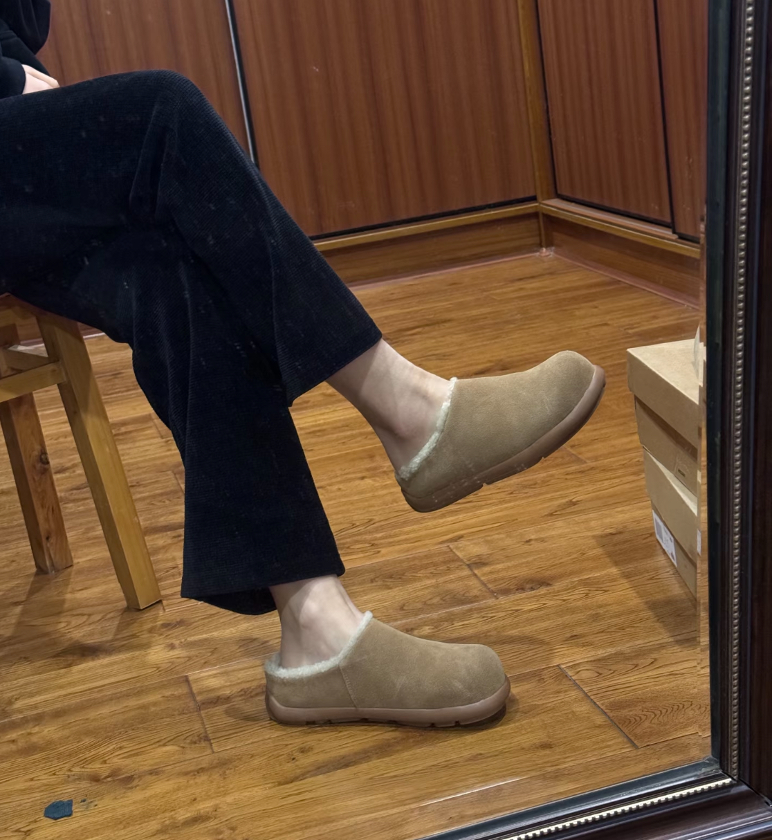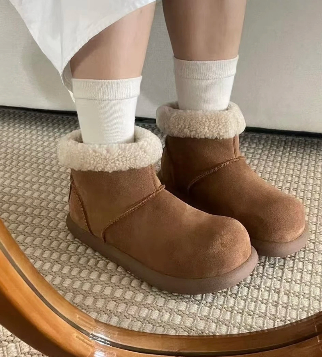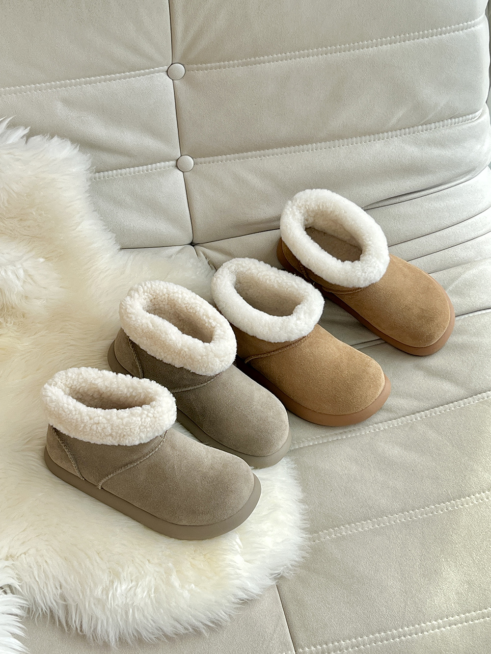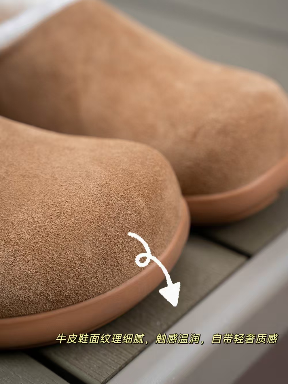 鞋面:牛皮+羊皮毛一体