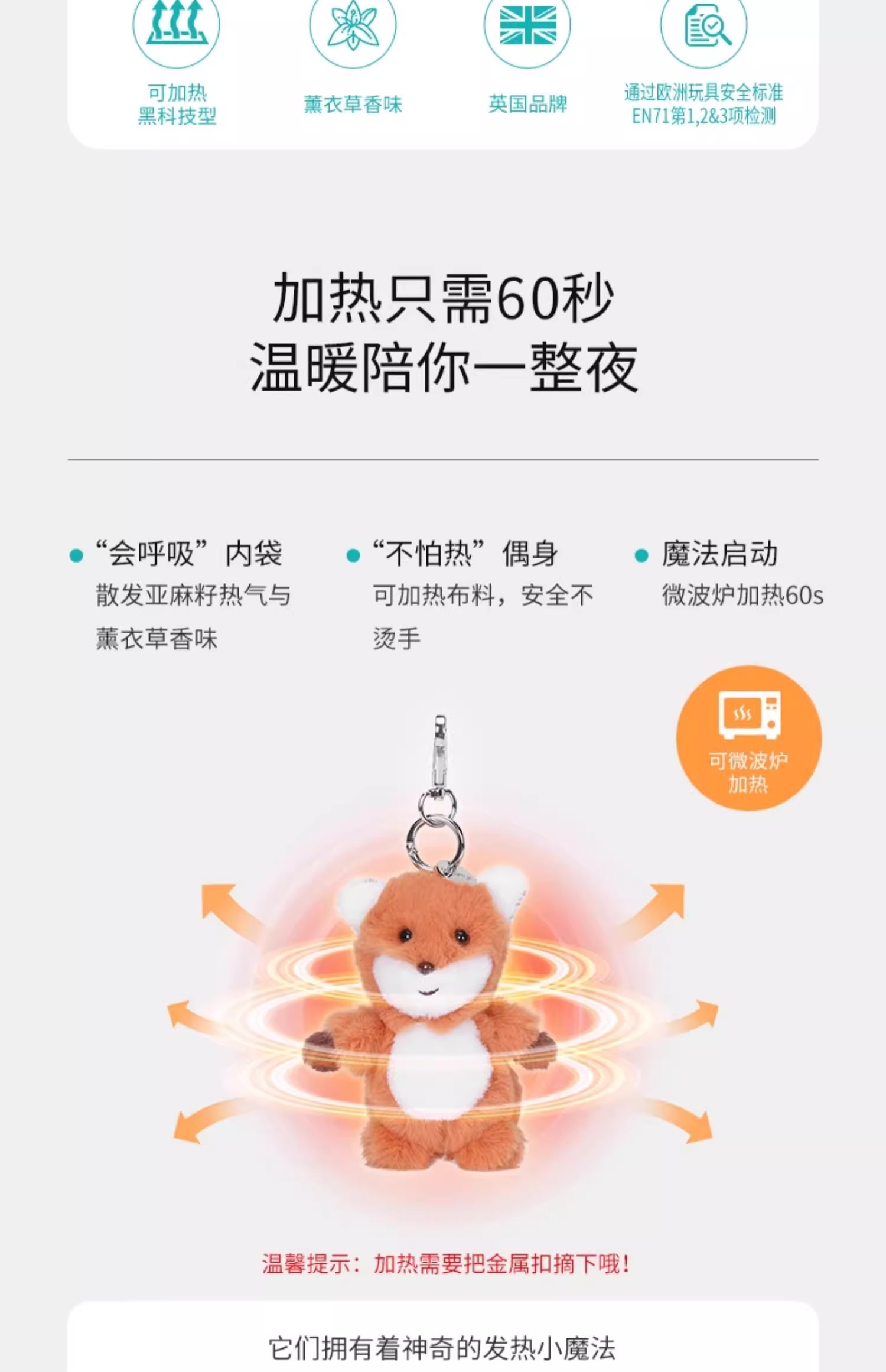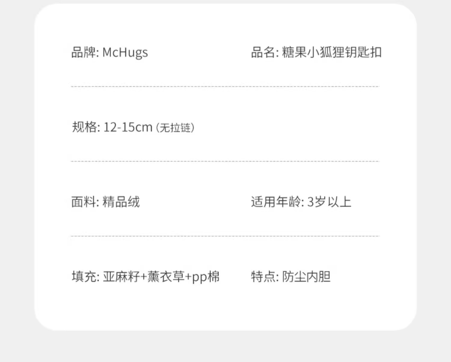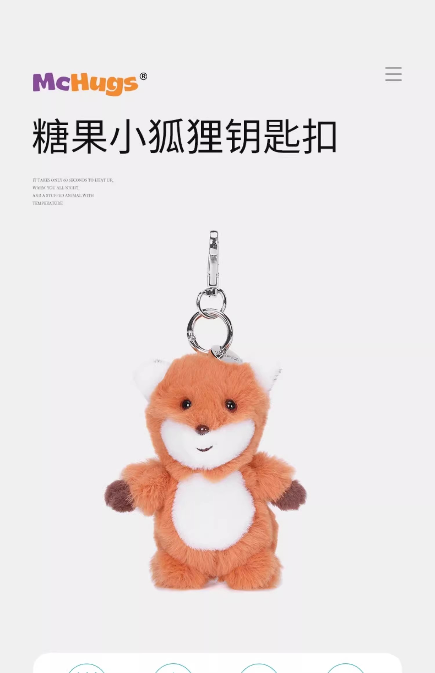 McHugs糖果小狐狸钥匙扣玩偶娃娃可加热薰衣草味挂件配饰礼物挂饰