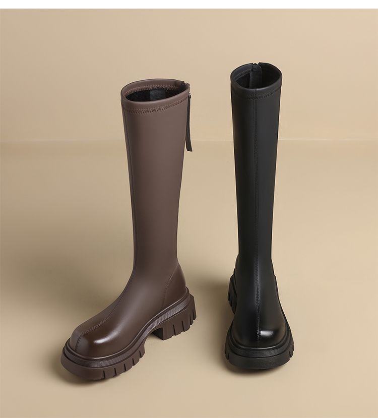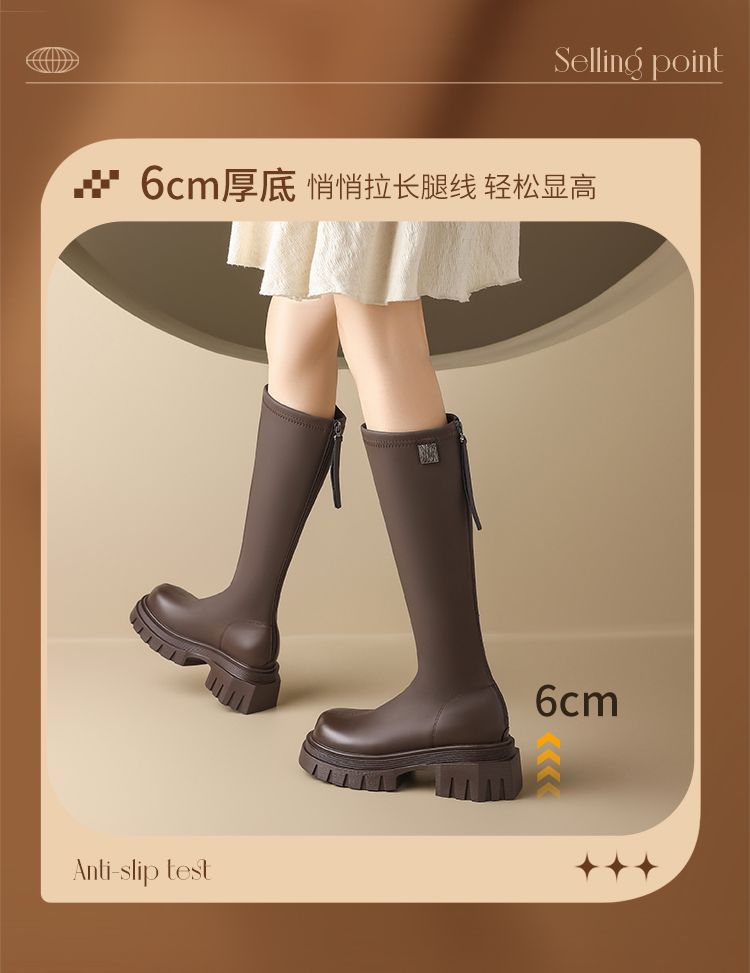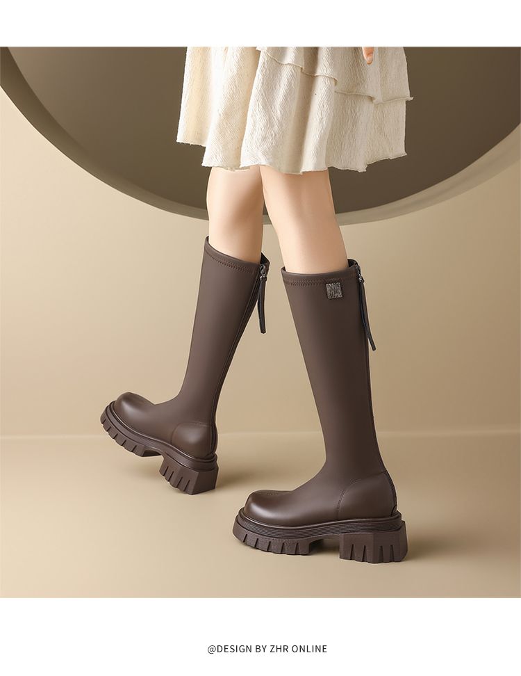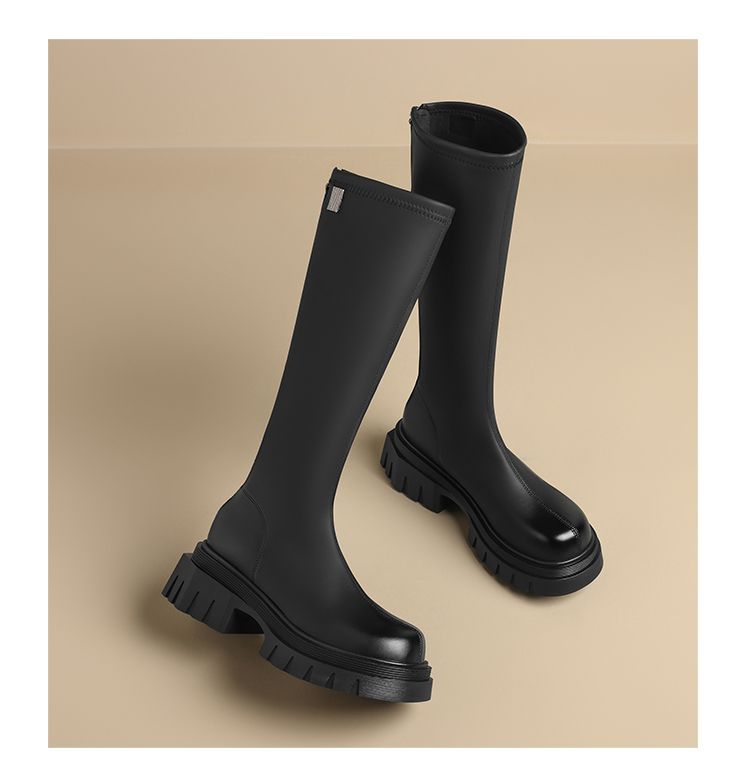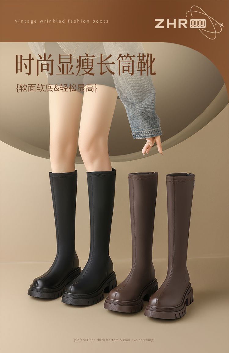 ZHR则则长筒靴加绒厚底骑士靴气质百搭2024新款显瘦长靴时尚女靴
