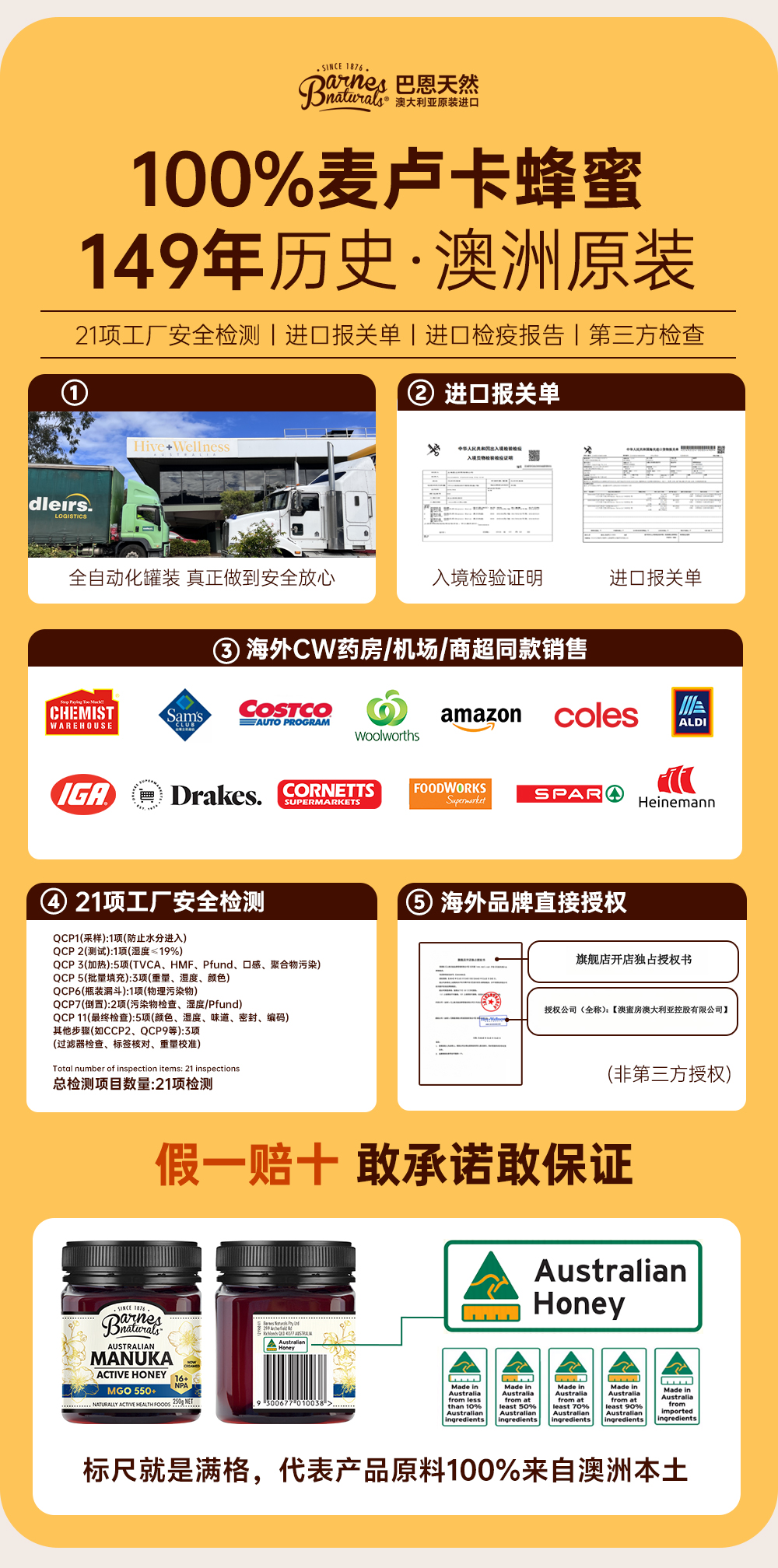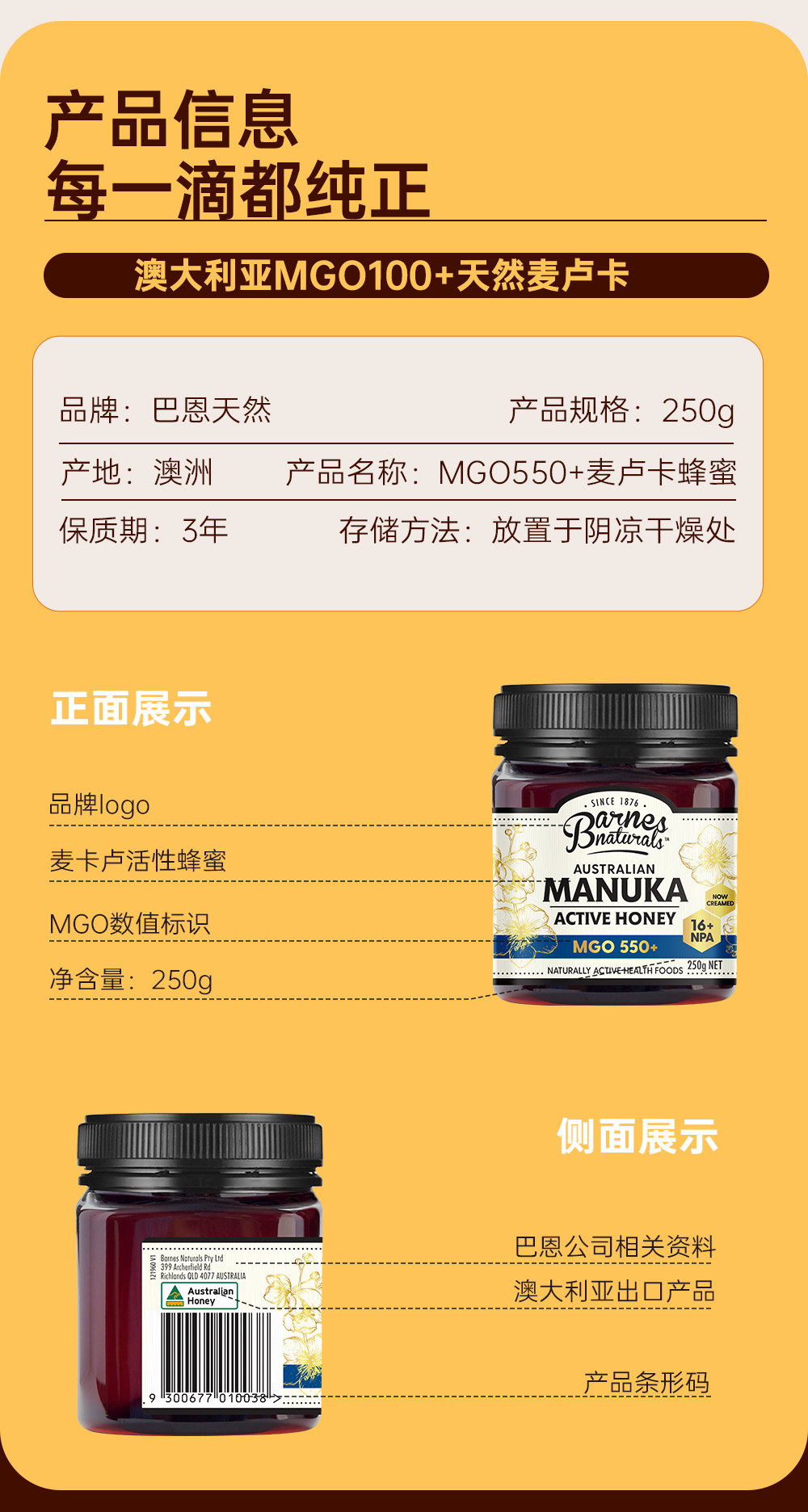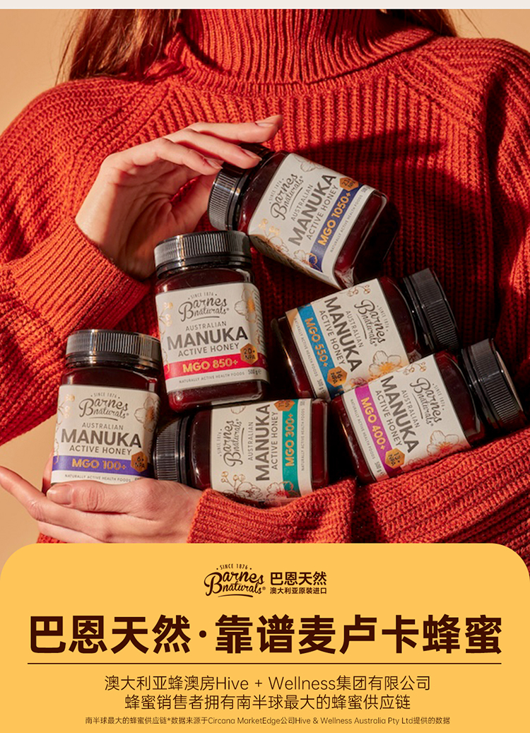 澳大利亚巴恩天然 活性麦努卡蜂蜜 MGO550+ 250g/礼盒装