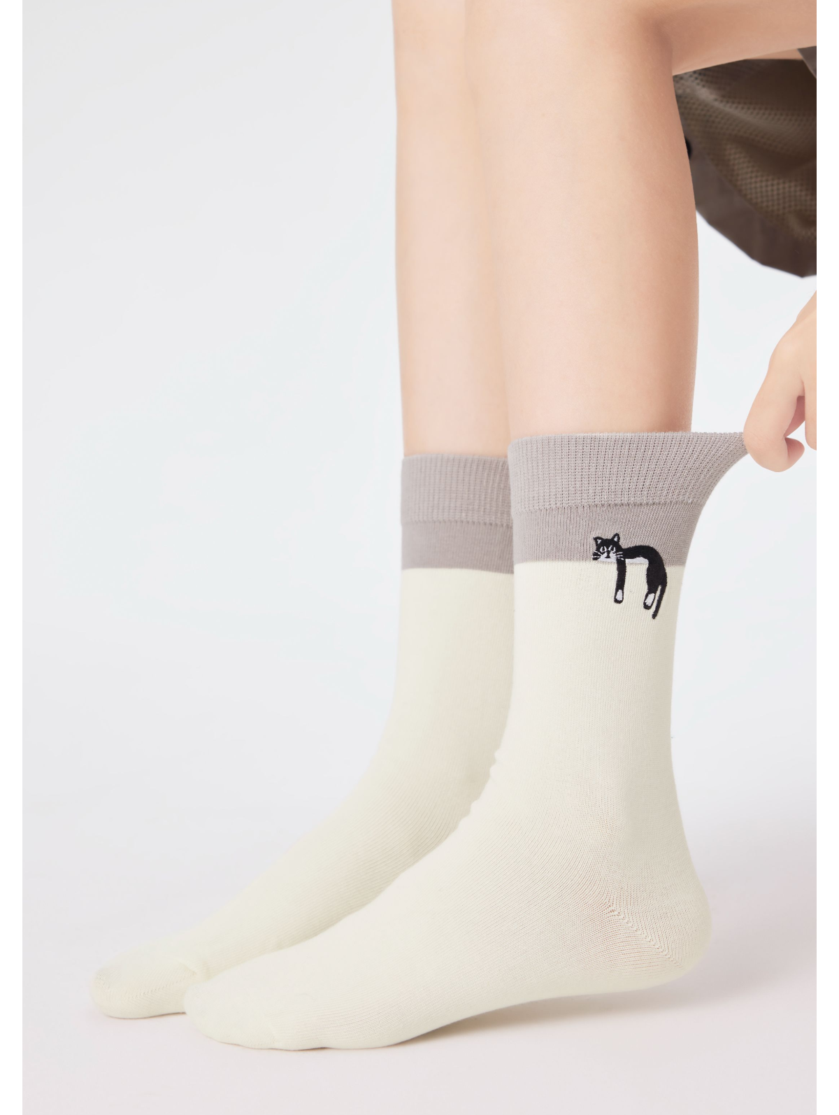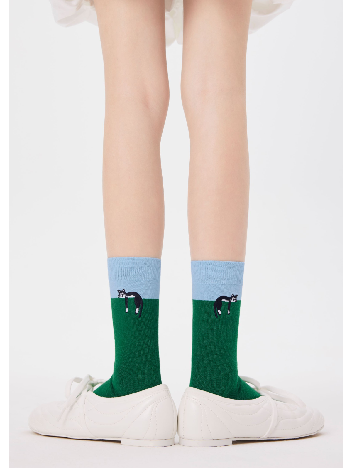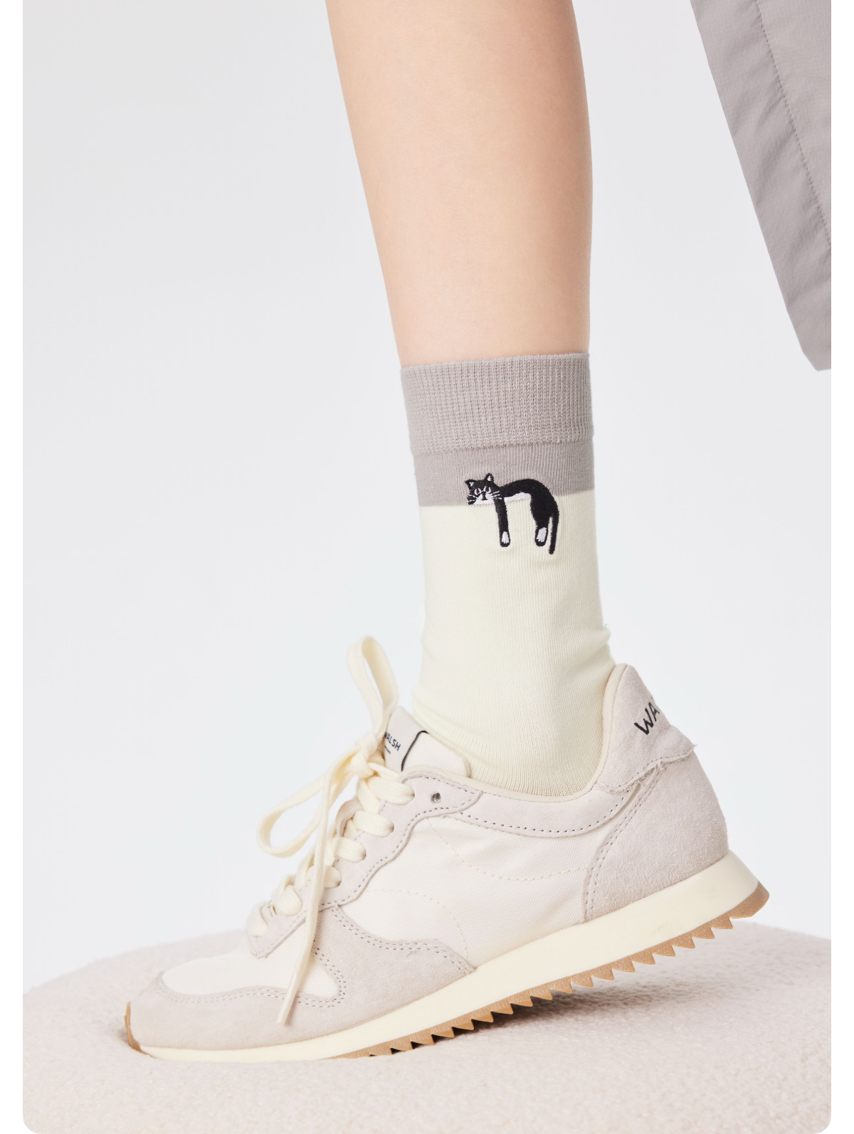 【代发】上森派系袜子 蝴蝶结提花 慵懒猫咪 中筒袜 (下单后不接受退款,请谨慎下单)