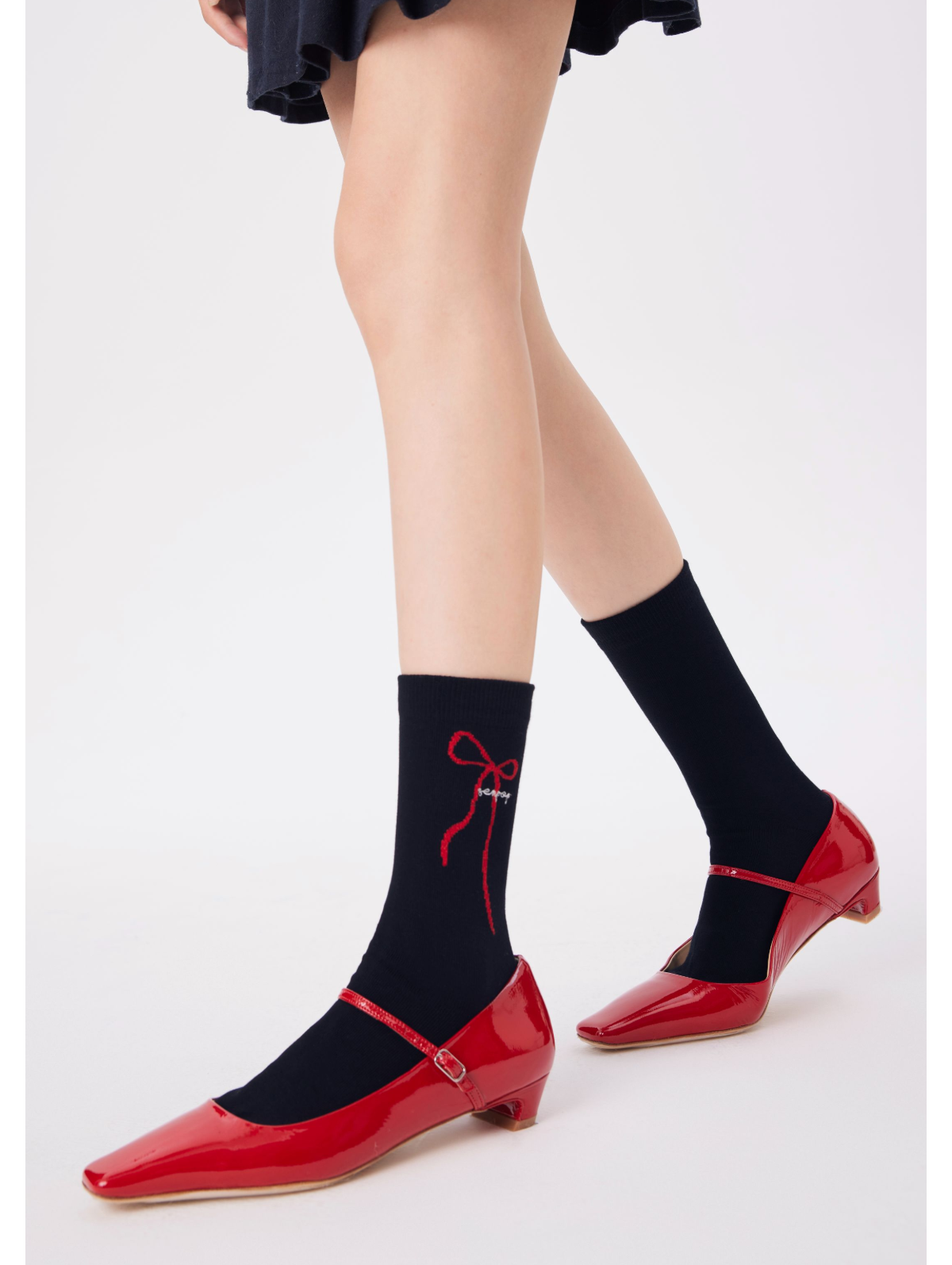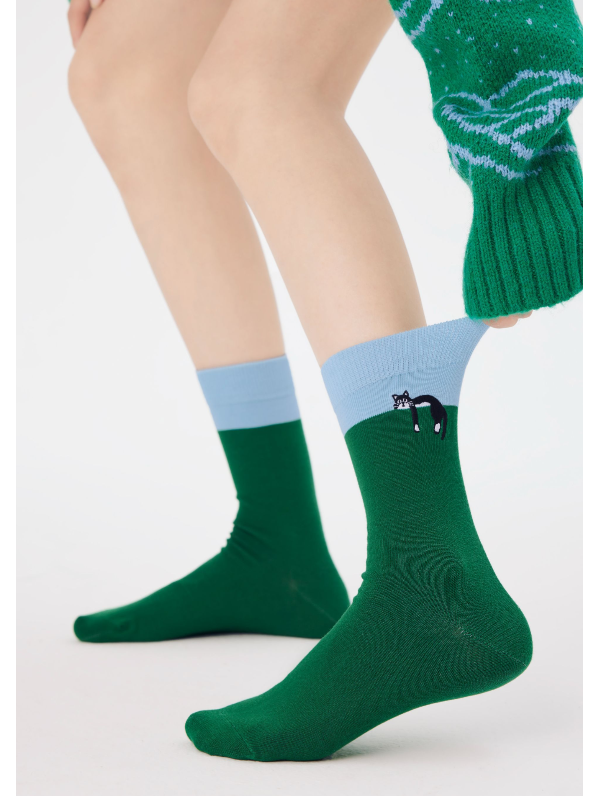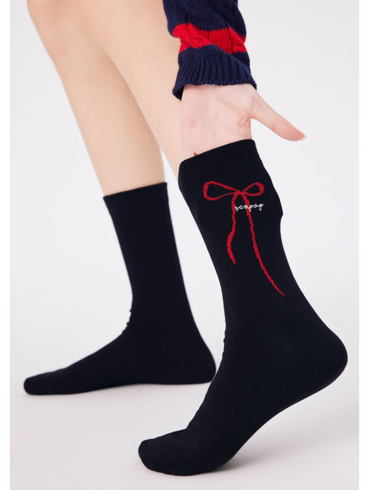 【代发】上森派系袜子 蝴蝶结提花 慵懒猫咪 中筒袜 (下单后不接受退款,请谨慎下单)