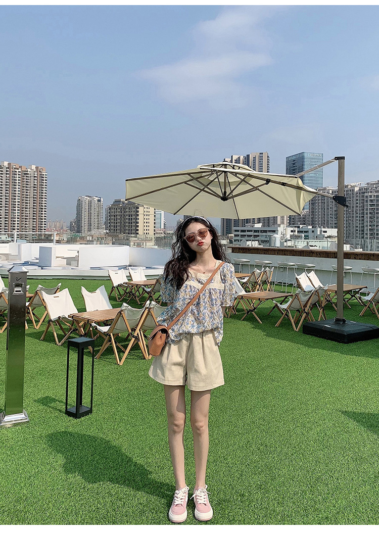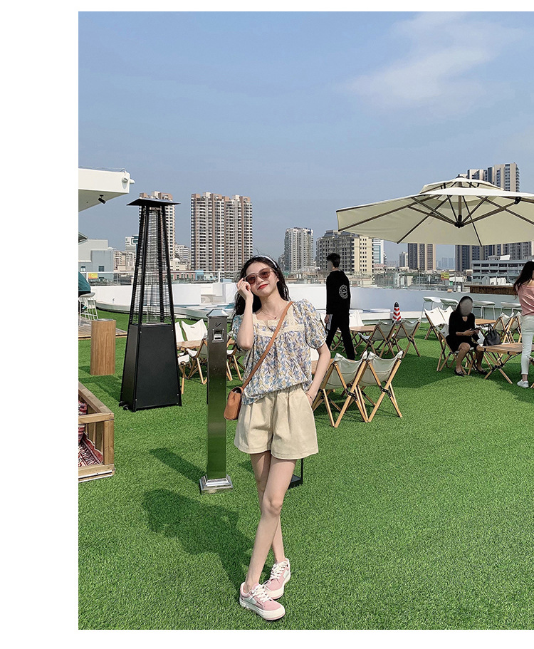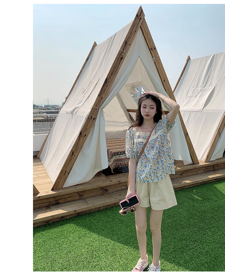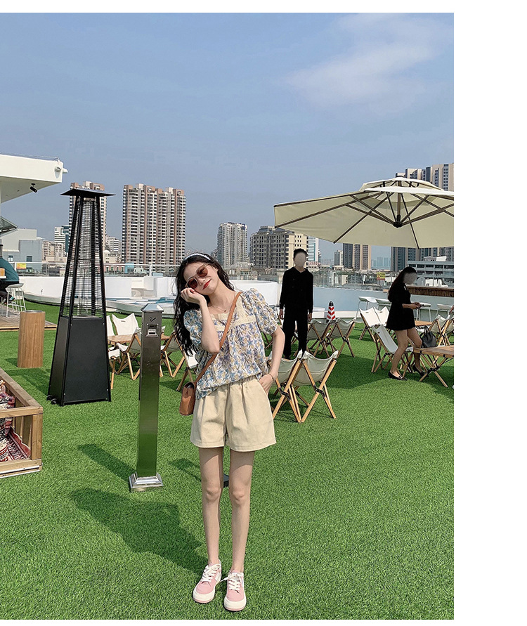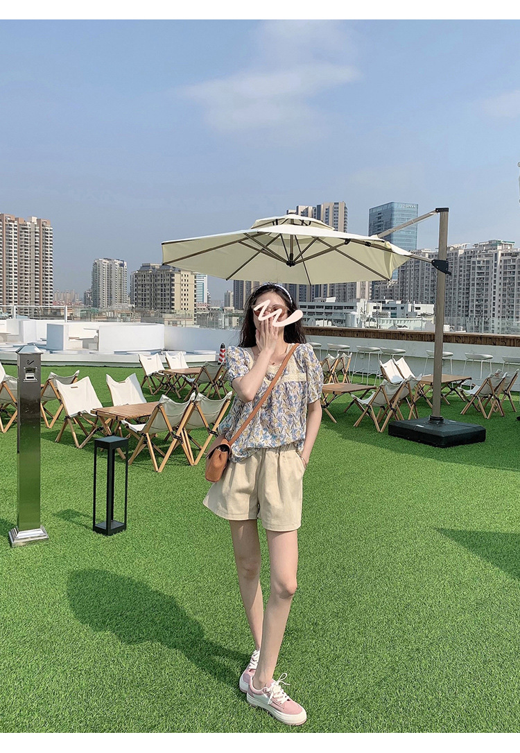 2023年新款法式方领别致碎花上衣泡泡袖短袖衬衫女设计感小众夏季