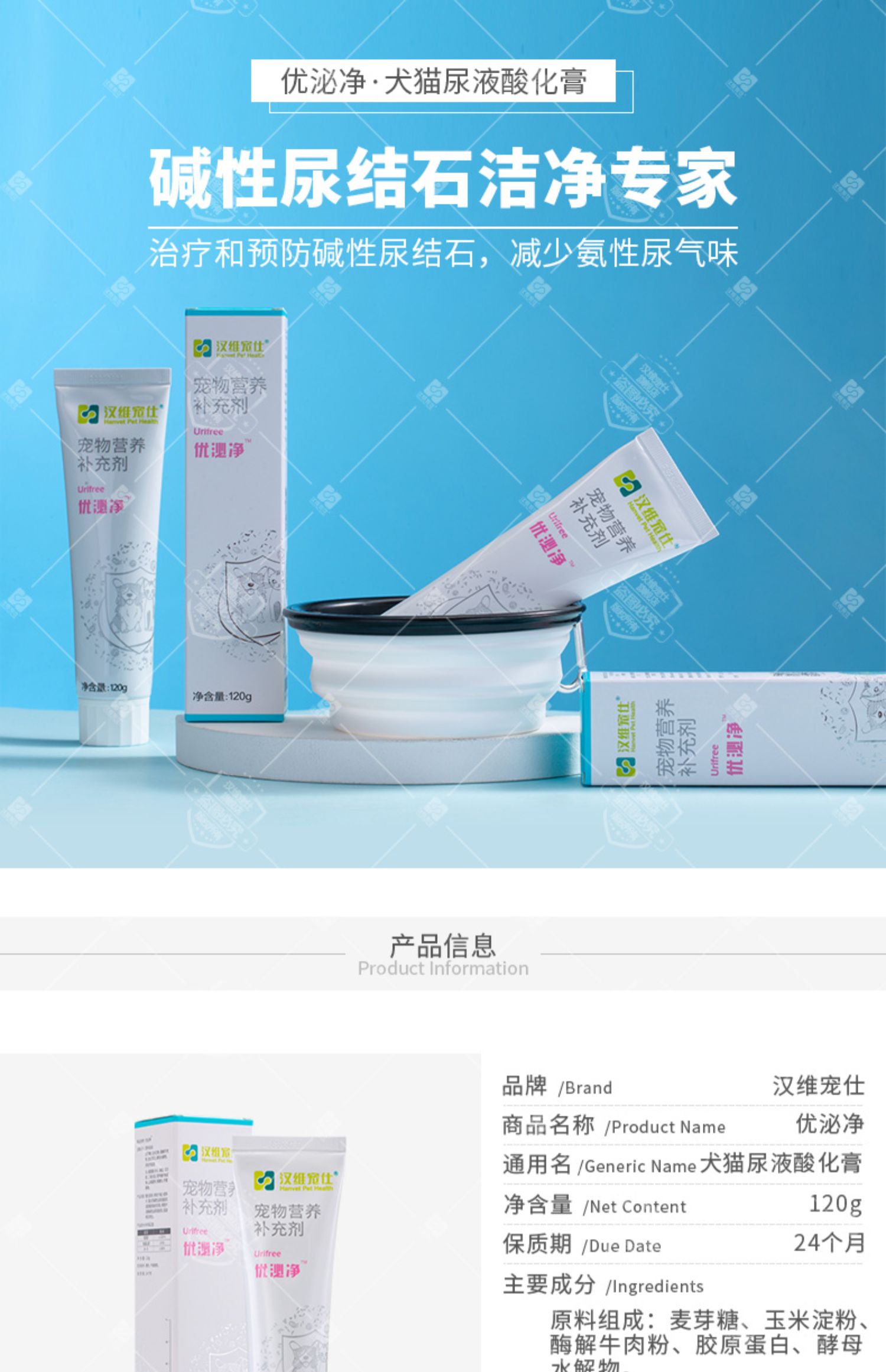 优泌净尿液酸化膏汉维宠仕宠物狗狗犬猫尿结石排石利尿泌尿营养膏