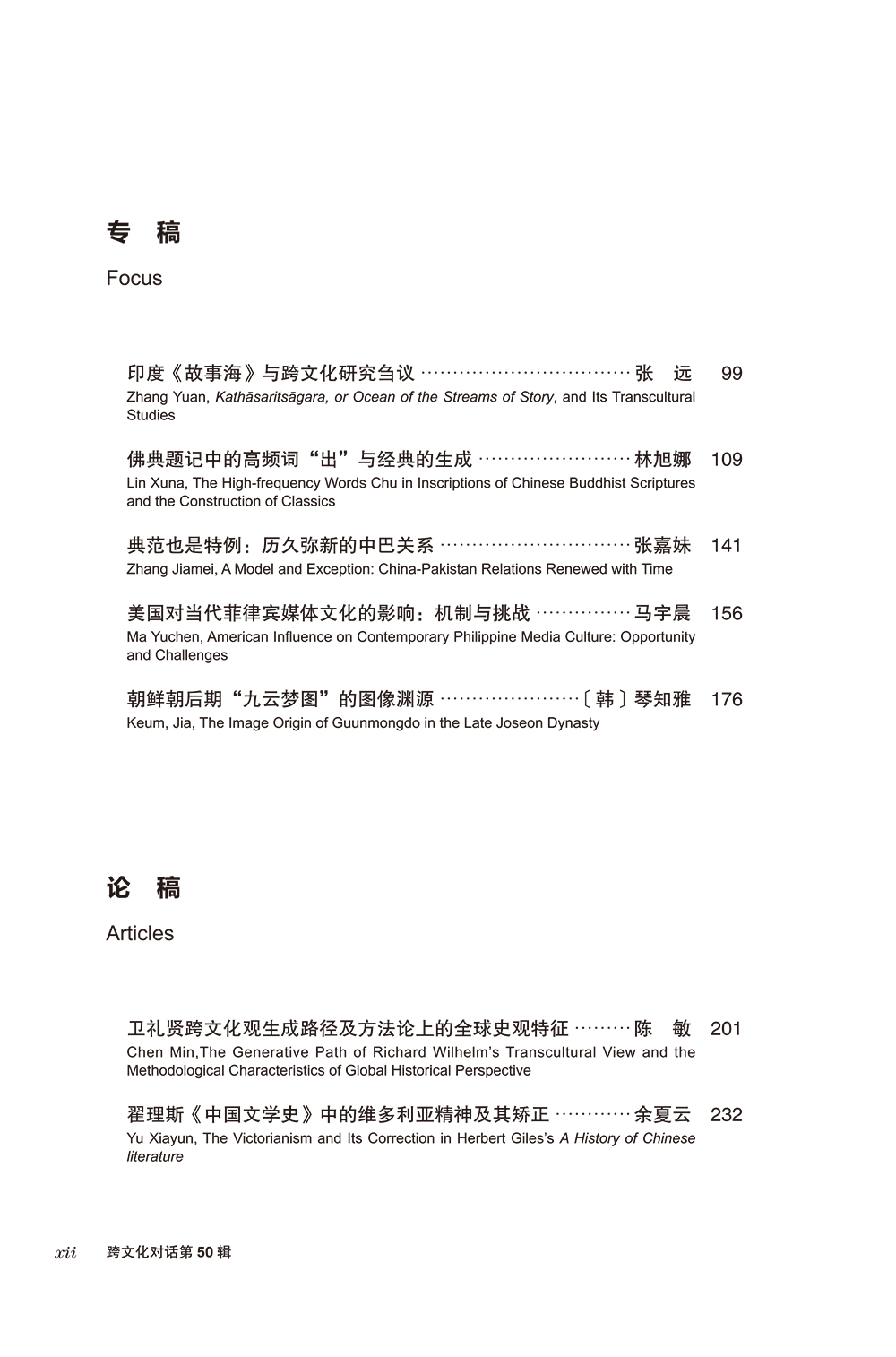 《跨文化对话》是一部中法合办的集刊,其学术委员会和编辑委员会均为国内外知名学者组成,主编乐黛云先生更是著名的比较文学专家。