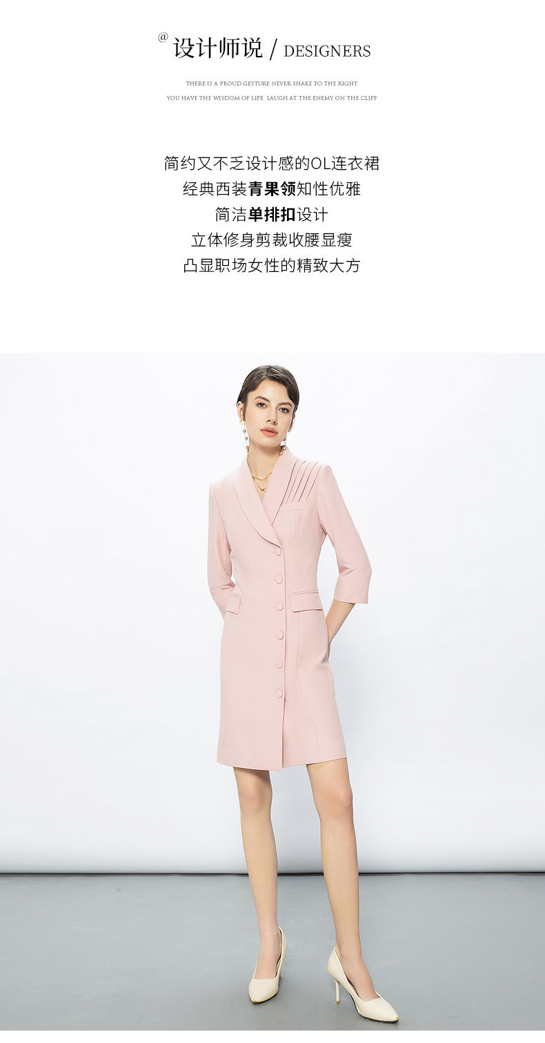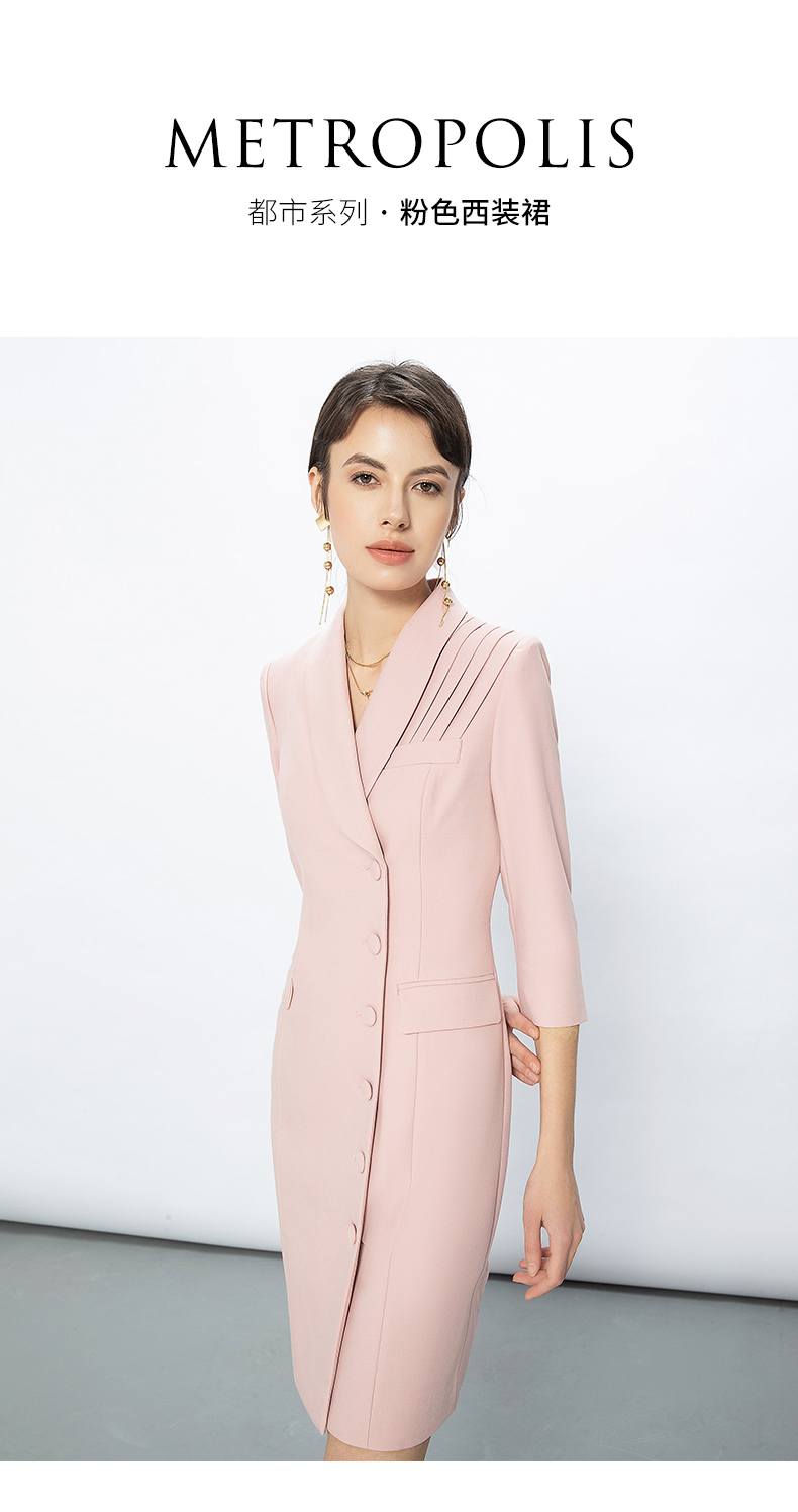 IWY/粉色主持人礼服演讲服装高端气质正装连衣裙粉色西装裙西装裙Q13131