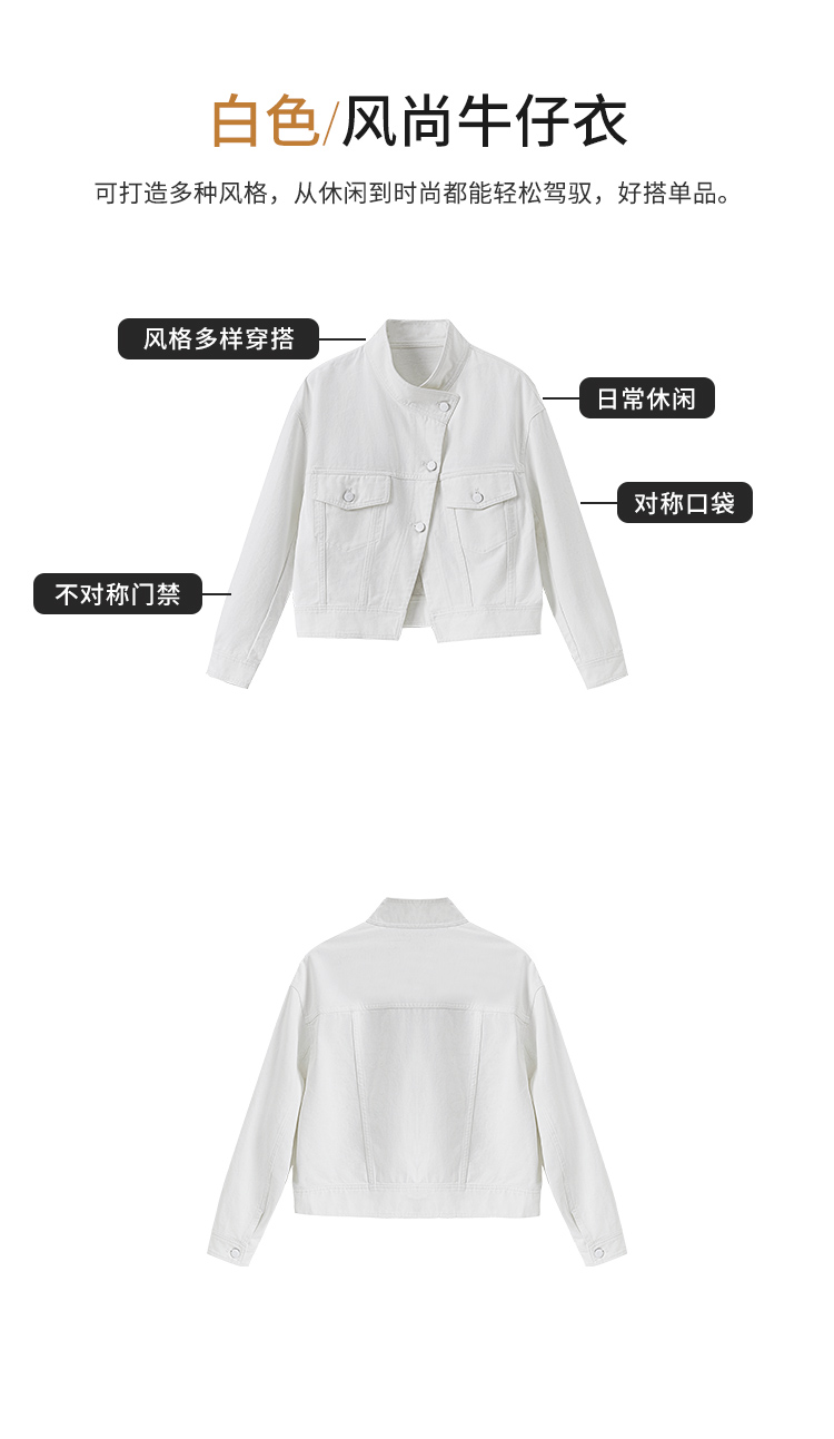【商场同款】CNJ5380 “风尚牛仔衣” 白色清新、轻盈,斜纹牛仔棉,吸汗透气 白色牛仔外套