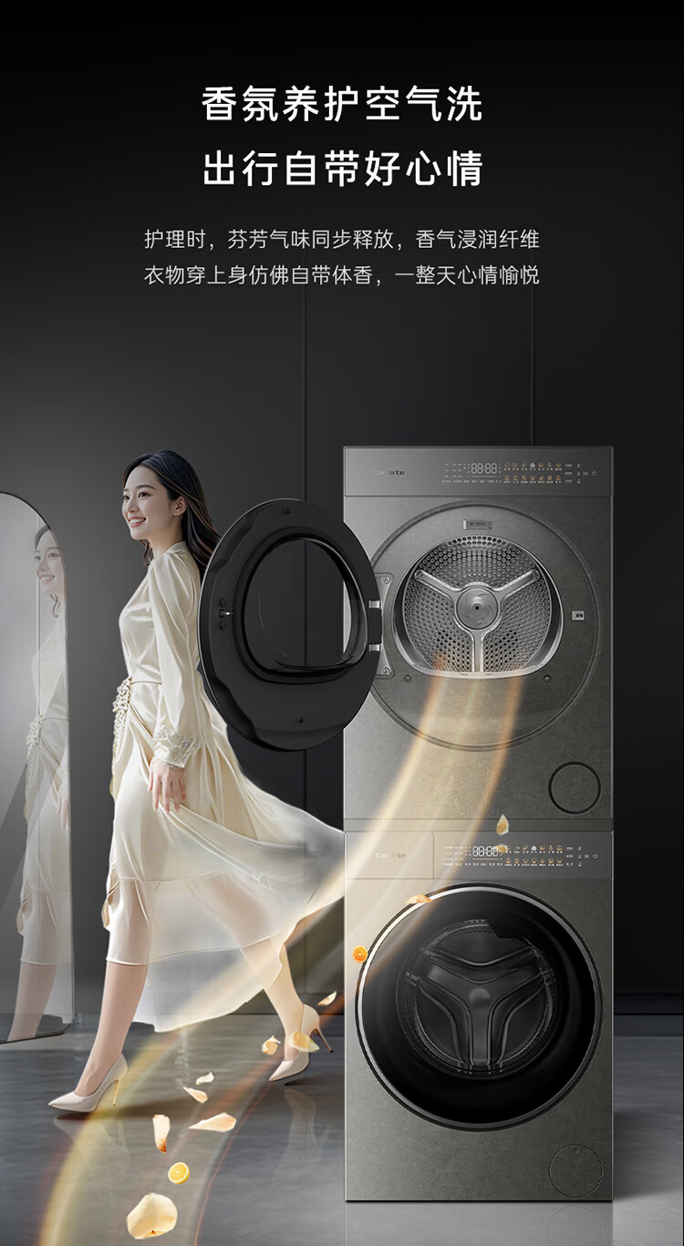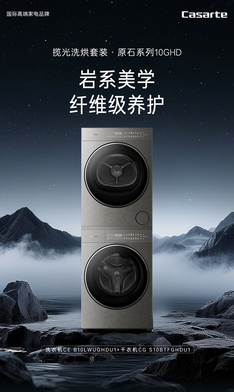 卡萨帝(Casarte)揽光套装原石 10公斤洗烘套装 滚筒懒人洗衣机+双擎热泵烘干机洗烘套装 原创养护湿洗 10BHD+10GHD