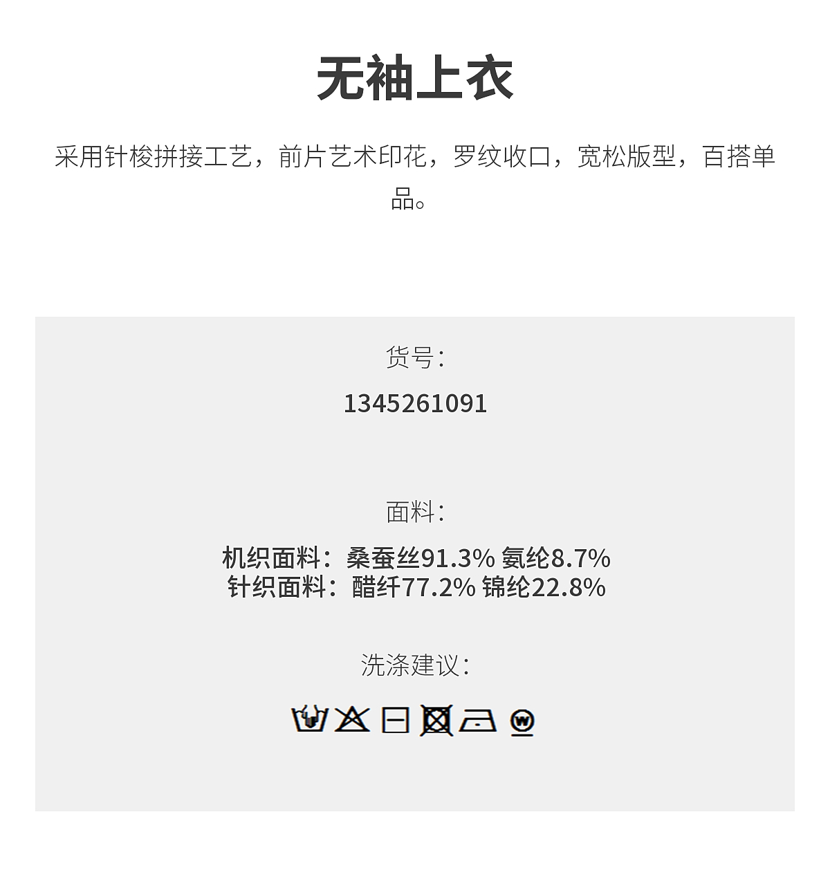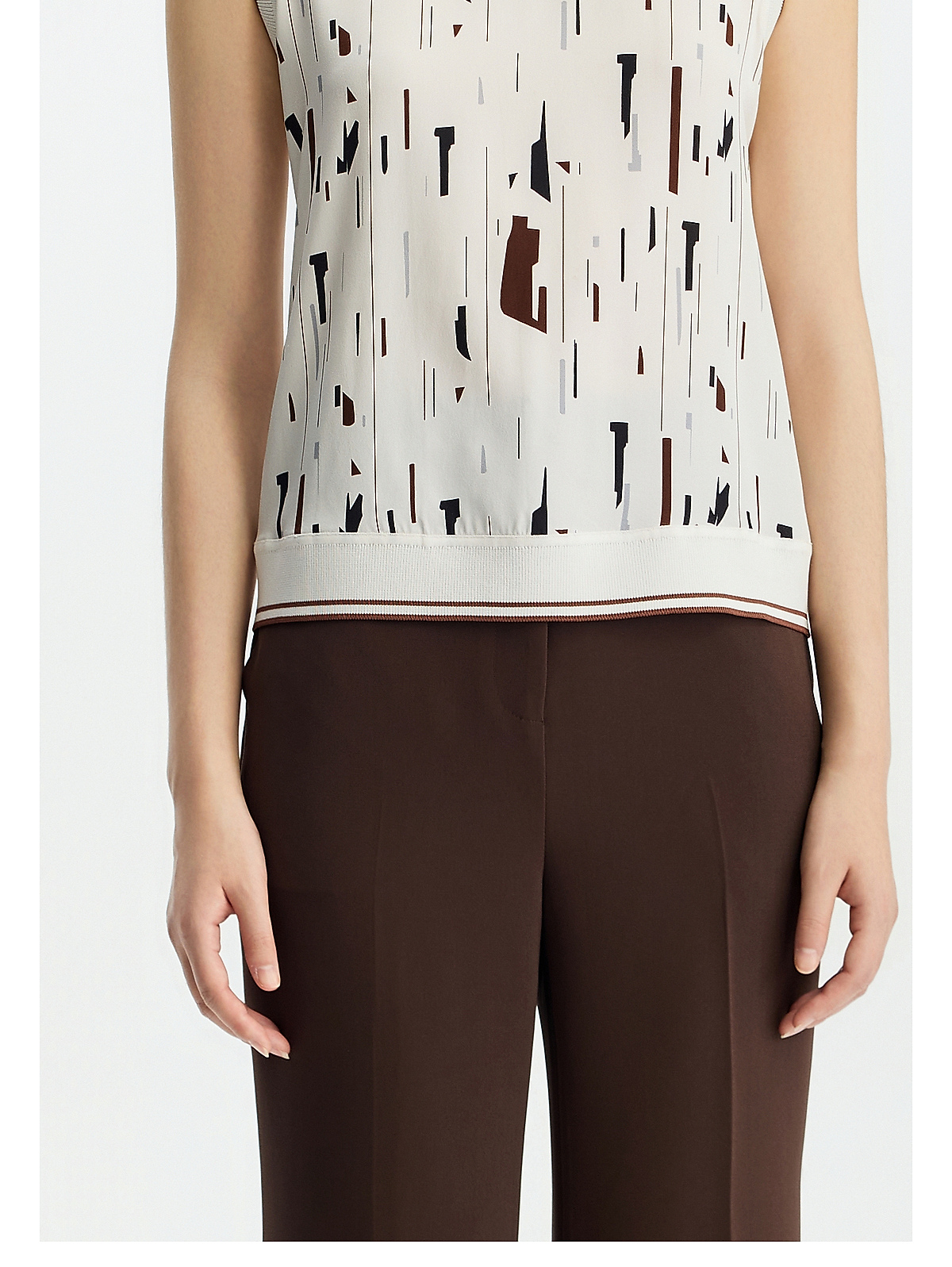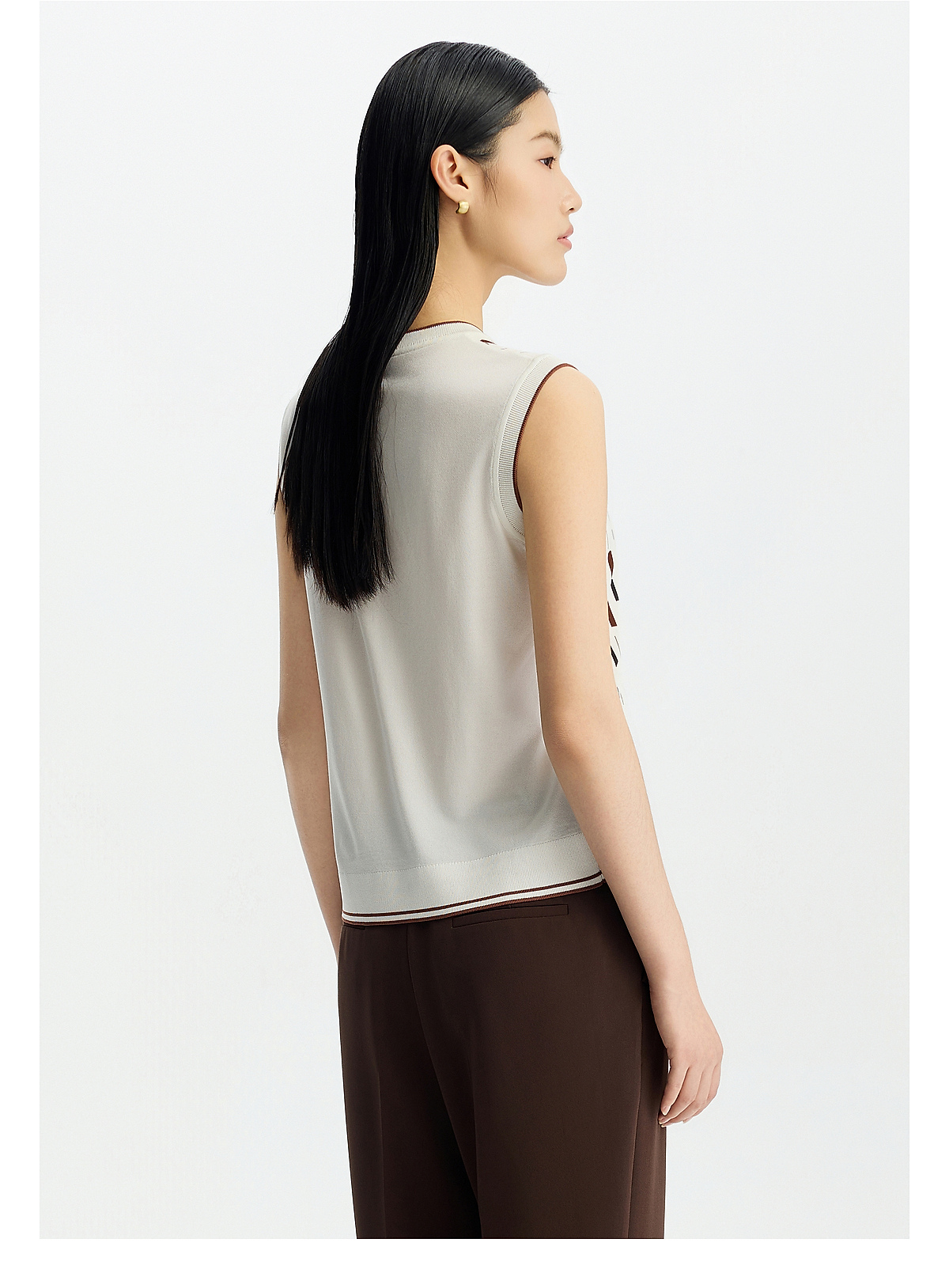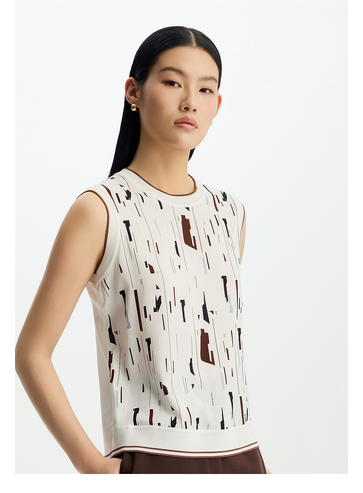 商场同款PURE TOUCH女装26春夏新款无袖上衣针梭拼桑蚕丝印花背心