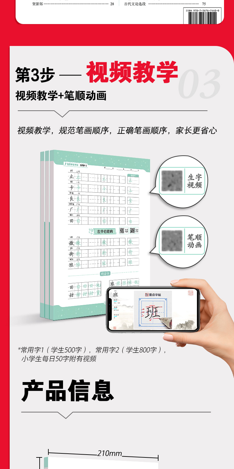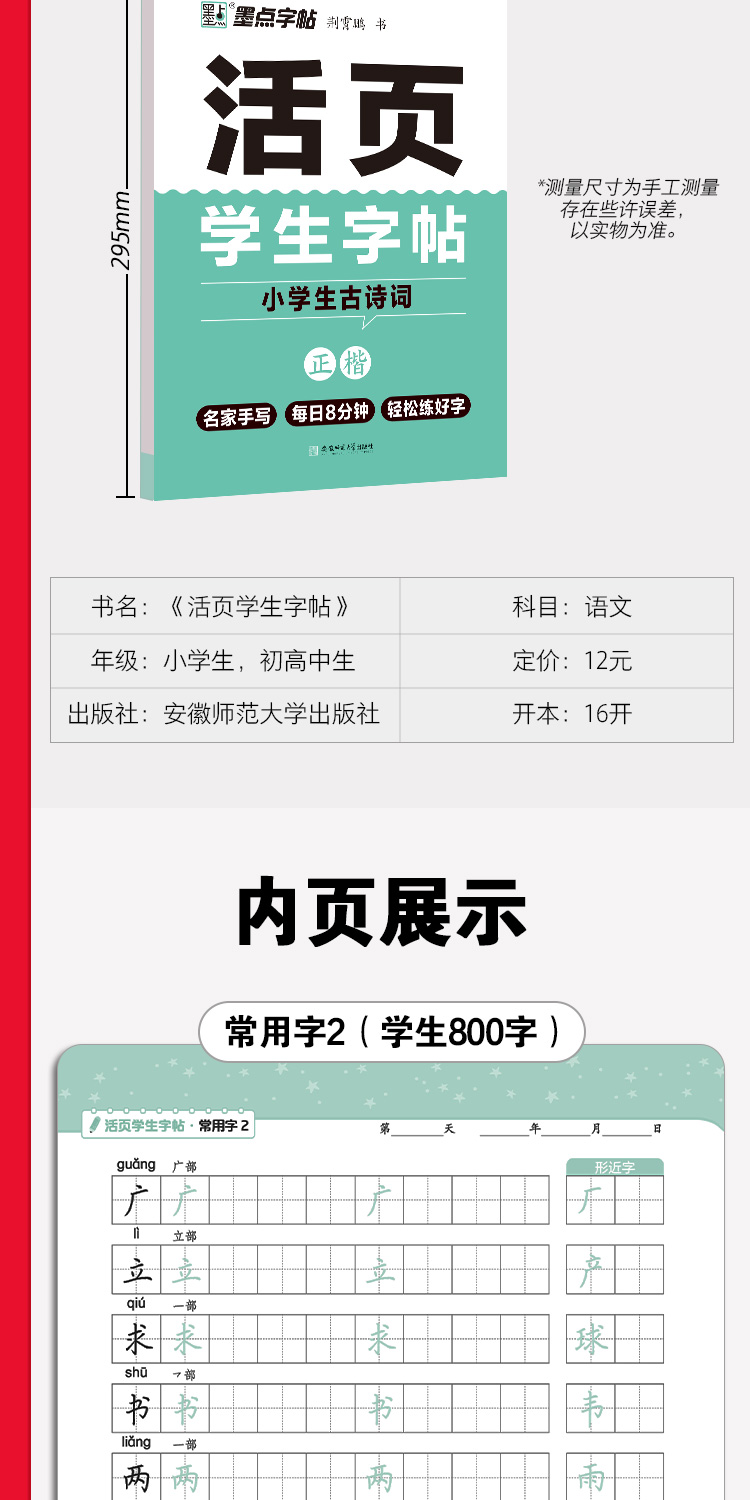 墨点字帖小学生练字帖常用字古诗文正楷字帖初中生荆霄鹏硬笔书法描红字帖高中古诗文练习字帖每日一练钢笔楷书字帖学生练字描红本