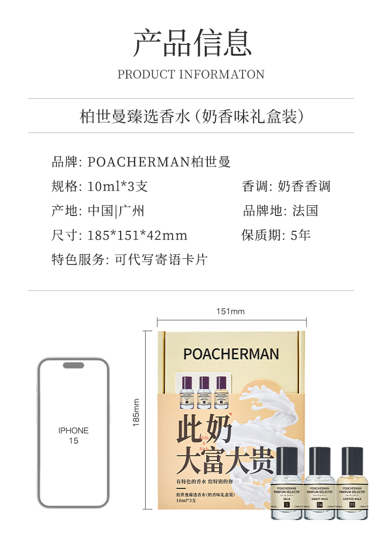 POACHERMAN柏世曼 摩纳哥系列香水试用装 持久留香 香水小样 3ml