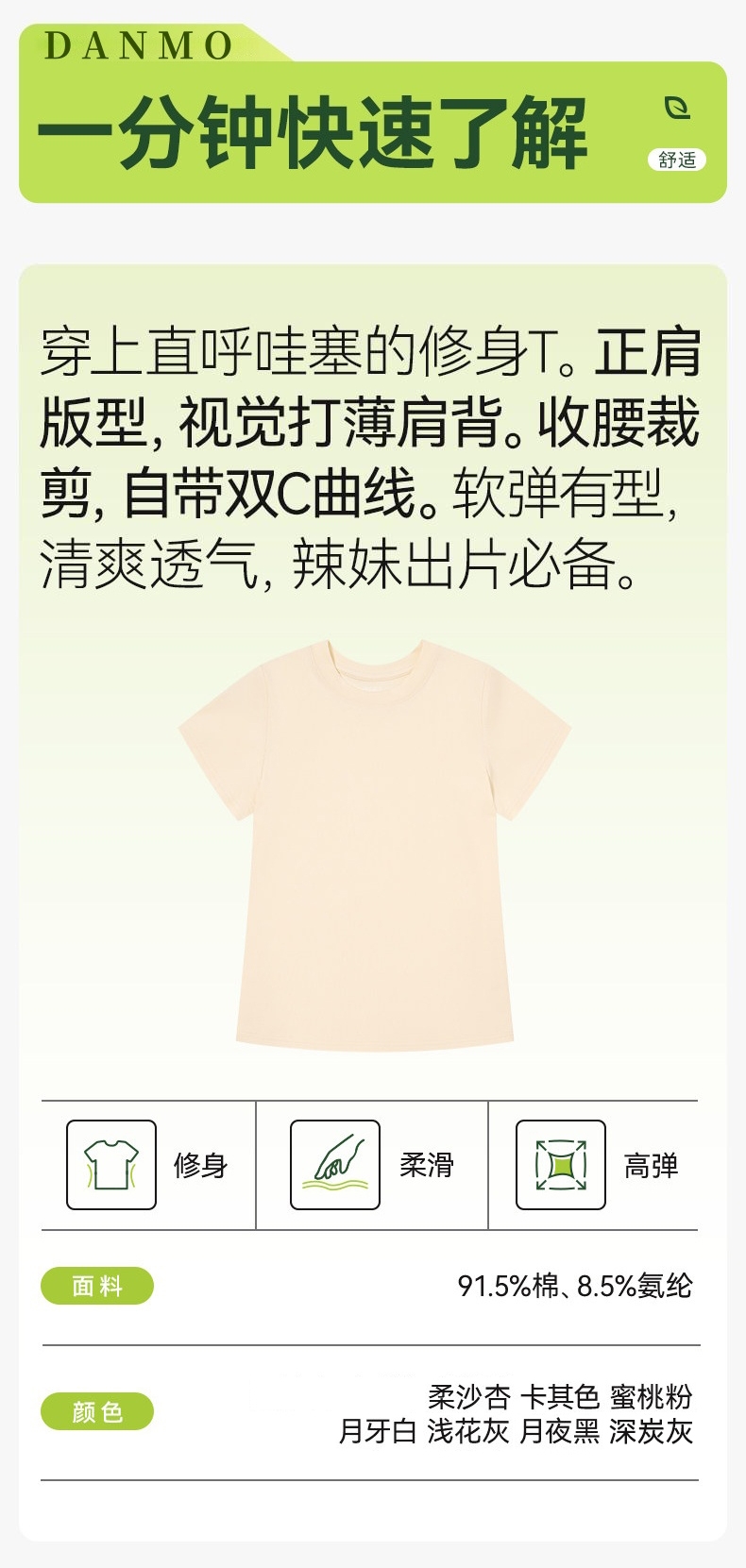 买一送一「DANMO纯色正肩T」软弹修身 正肩版型视觉打薄肩背 收腰裁剪自带双C曲线 骨条加固不易变形 圆领领口不易走光