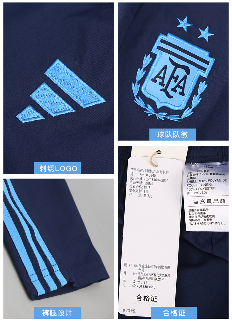 ADIDAS/阿迪达斯AFA PRE PNT阿根廷队足球长裤HF3940