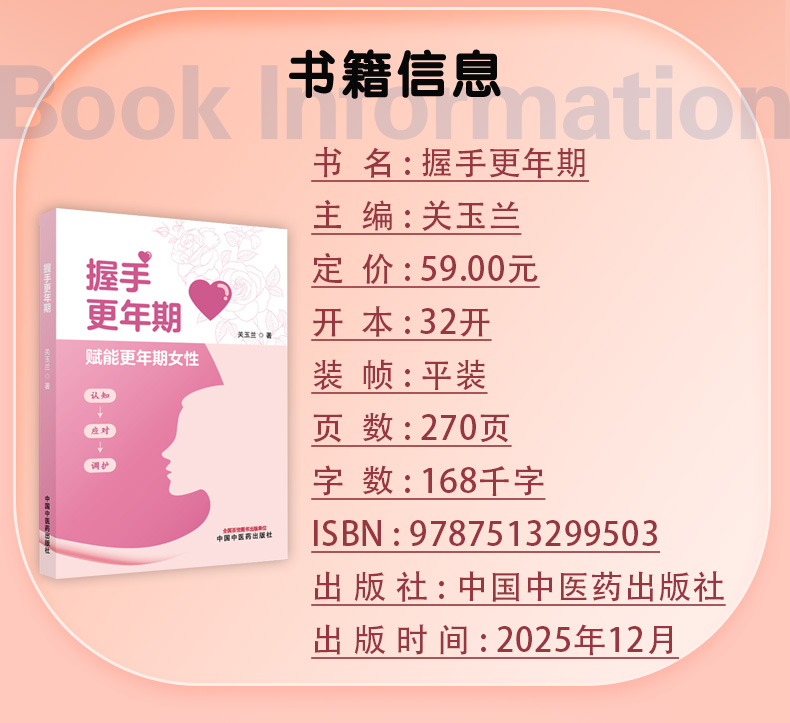 握手更年期 关玉兰 详解更年期身心变化 自我评估方法及常见问题应对 让读者能精准识别自身状况等 9787513299503中国中医药出版社