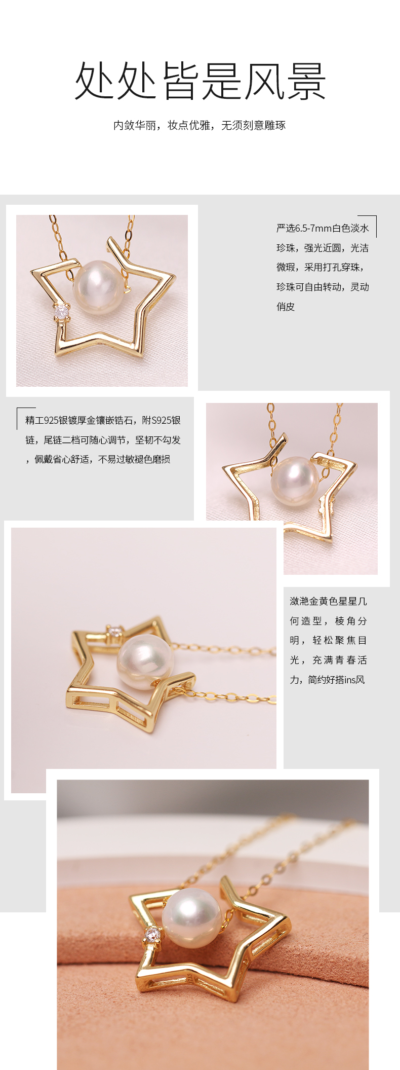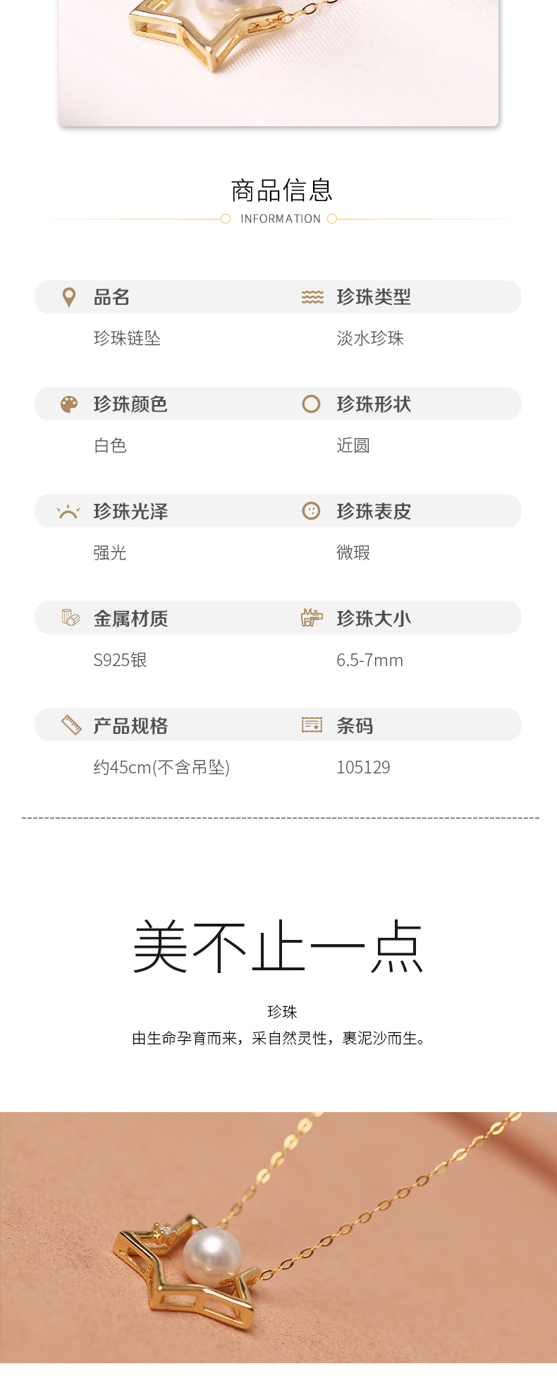 美裕 【幸运之星】银925淡水珍珠链坠 6.5-7mm白 105129