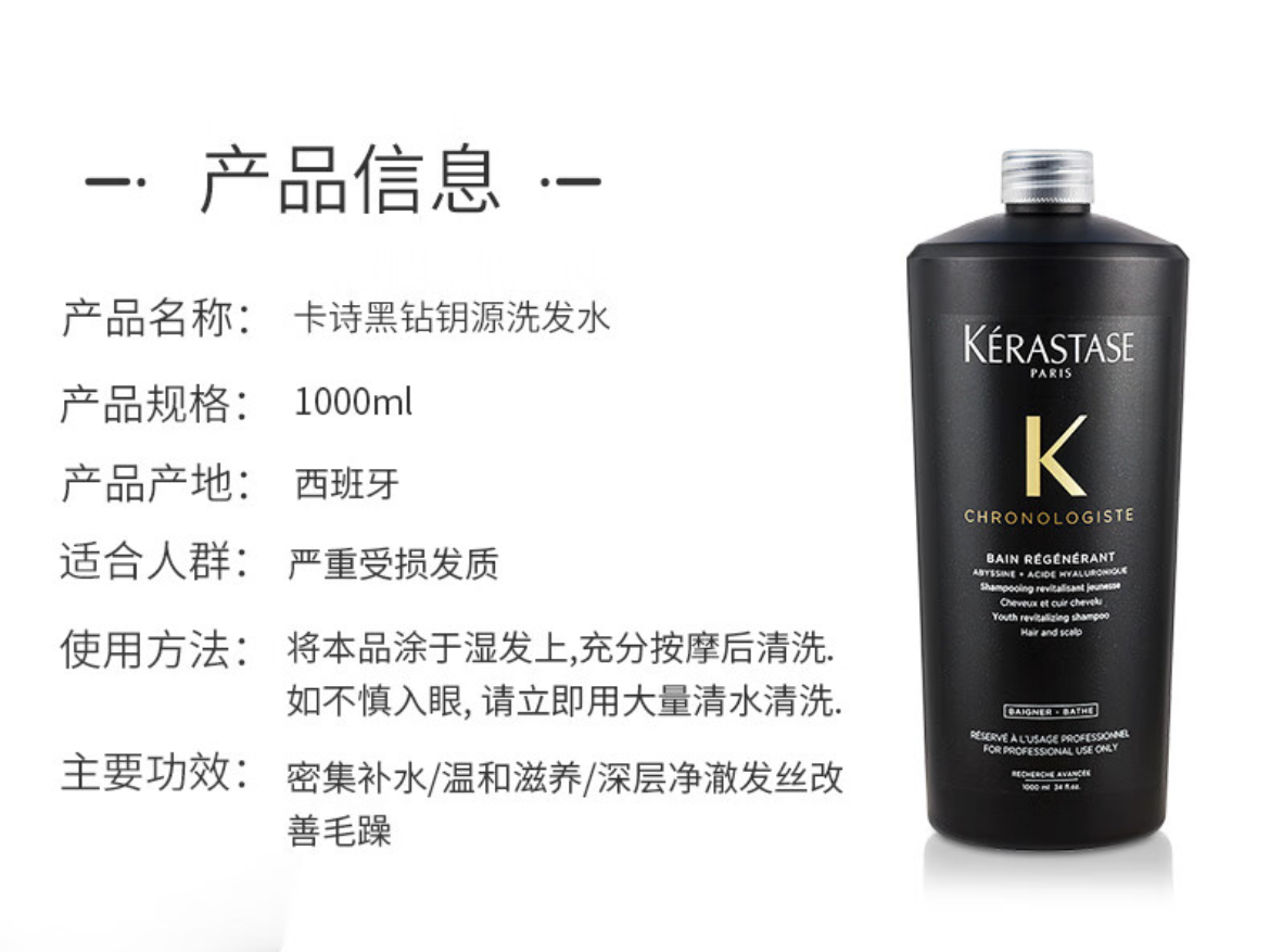 【卡诗1000毫升是瓶装 瓶身微瑕 无外盒 介意勿拍】Kérastase/卡诗黑钻钥源/双重功能/白金赋活/元气姜洗发水1000ml 配泵头
