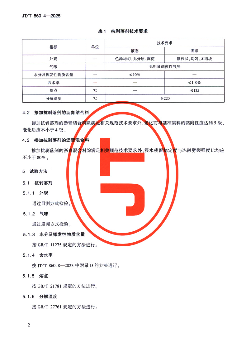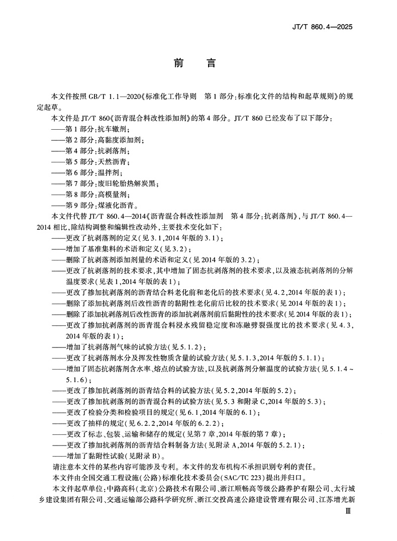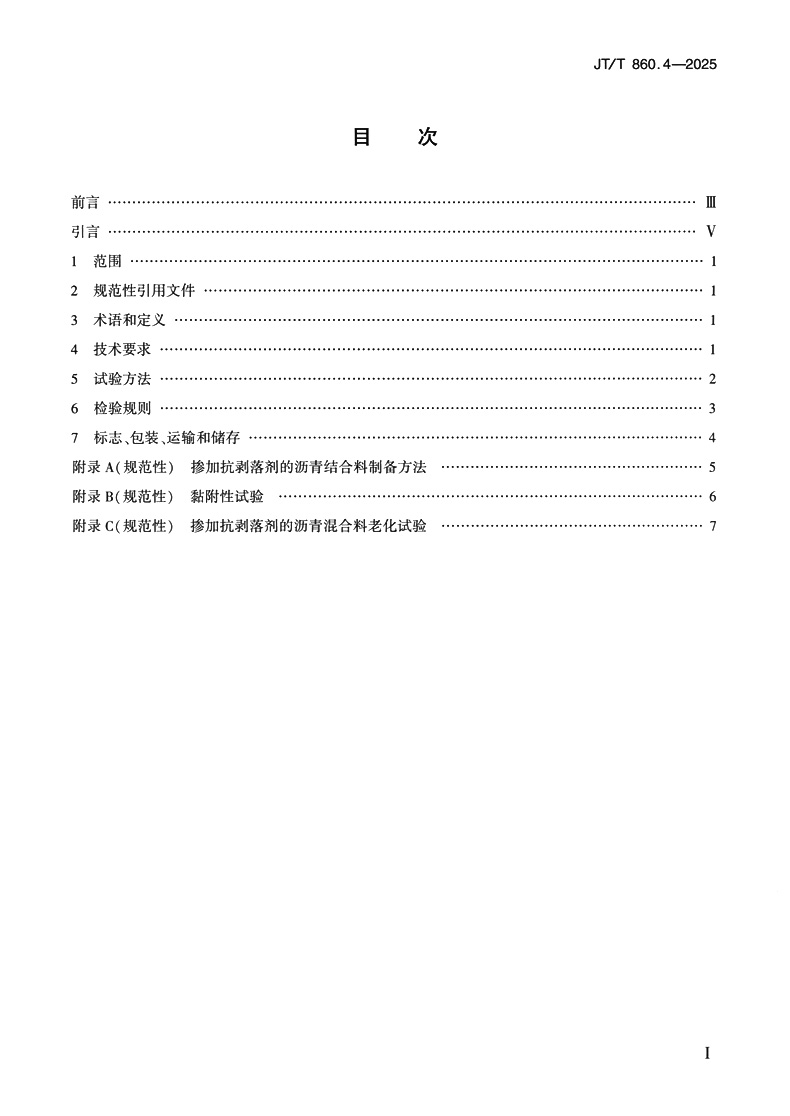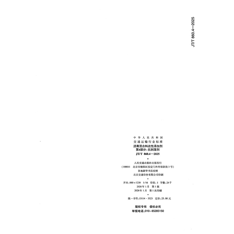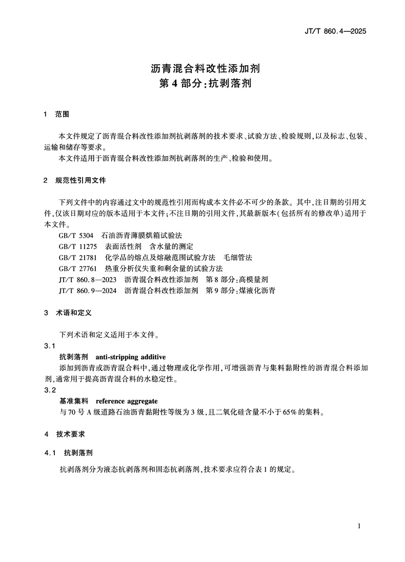 书名:沥青混合料改性添加剂 第4部分:抗剥落剂(JT/T 860.4—2025)