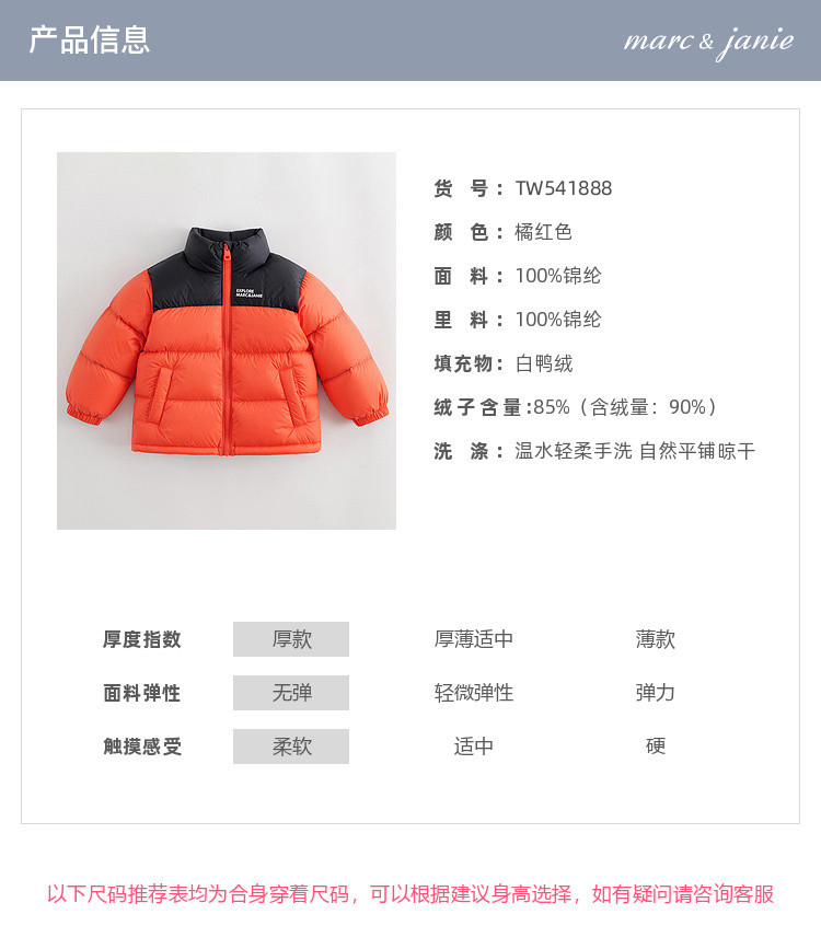 【三防】马克珍妮儿童羽绒服男女童时尚保暖羽绒服外套冬装541888