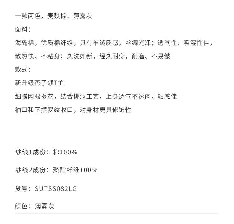 callisto仪式系列薄雾灰海岛棉燕子领T恤