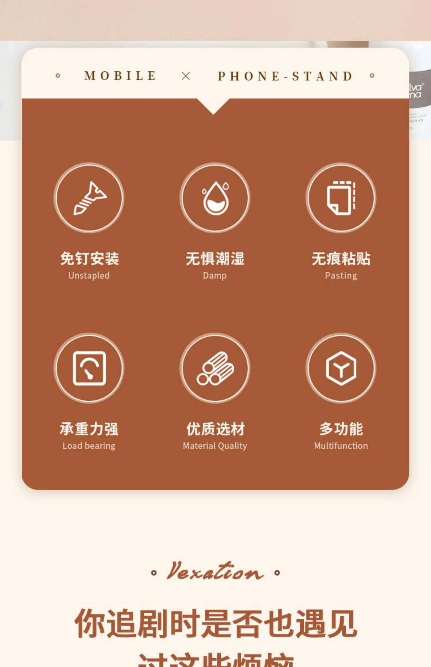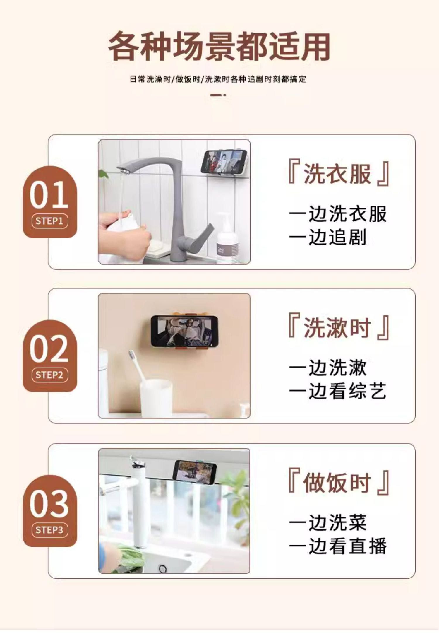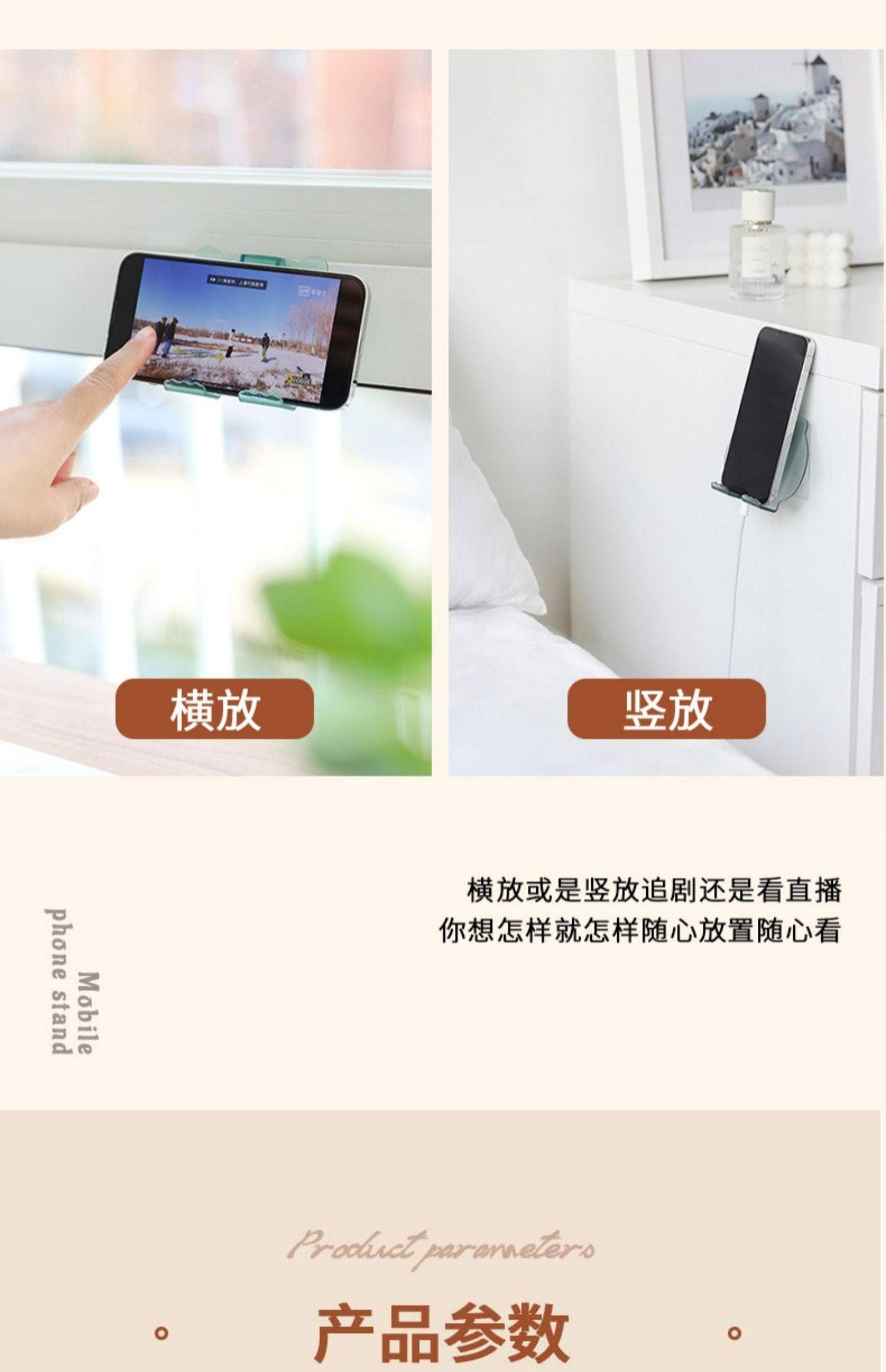 免打孔支架手机手机支架壁挂式墙上厨房架墙面粘贴多功能神器追剧
