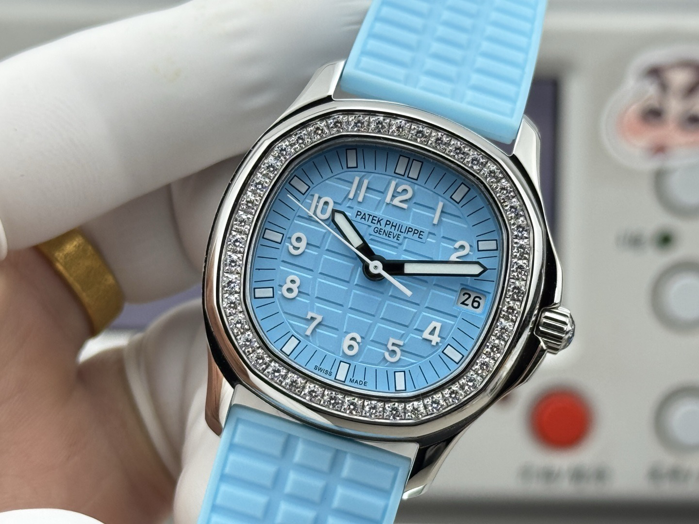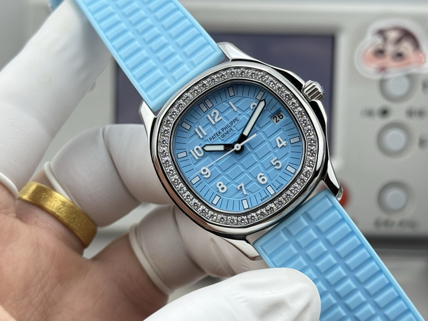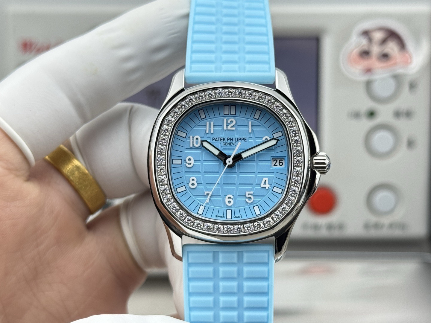PPF factory工厂百达翡丽AQUANAUT系列机械女手雷,35.6mm毫米的表径,进口全钢(金色为电镀18k加厚的真金)采用原装进口9015机芯开发和改装的324定制版满血版一体机芯❕❕❕