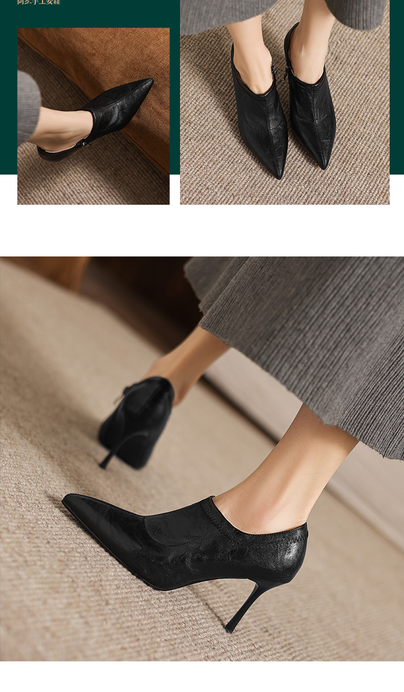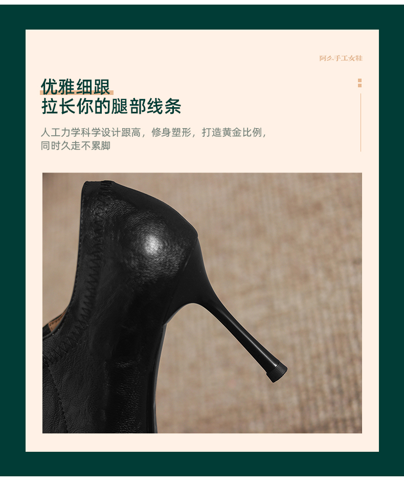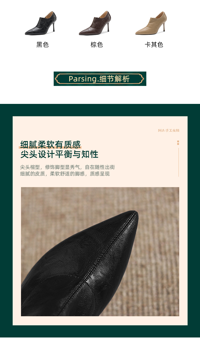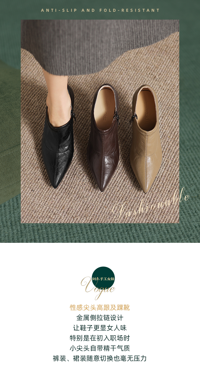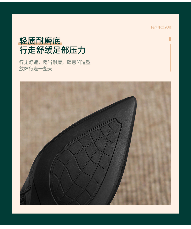 阿么手工女鞋尖头高级时尚上班鞋百搭不累脚简约春季女单鞋8.5CM