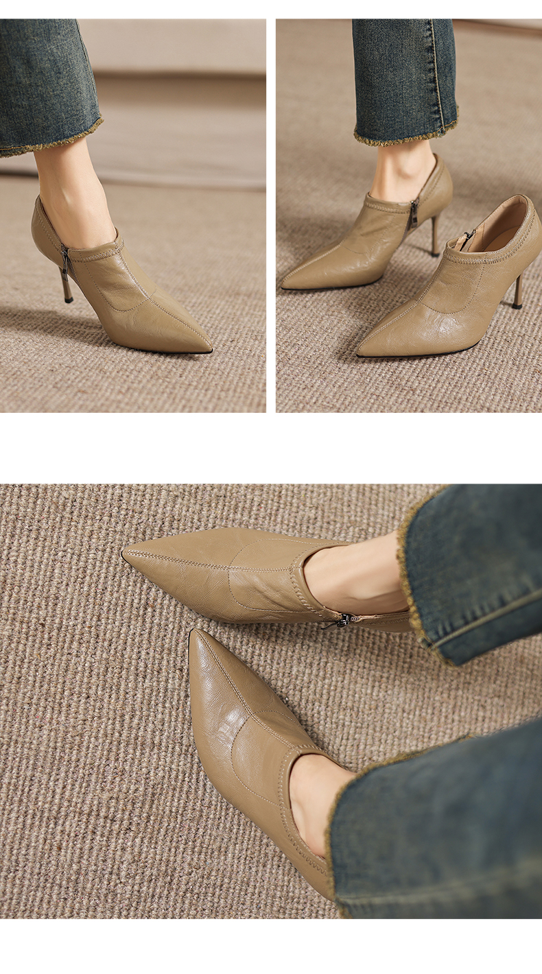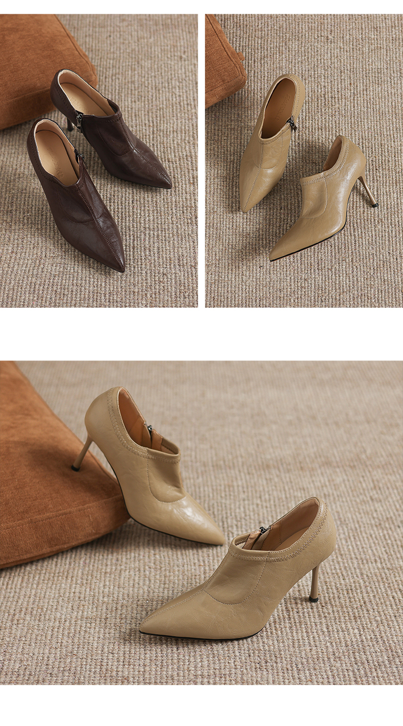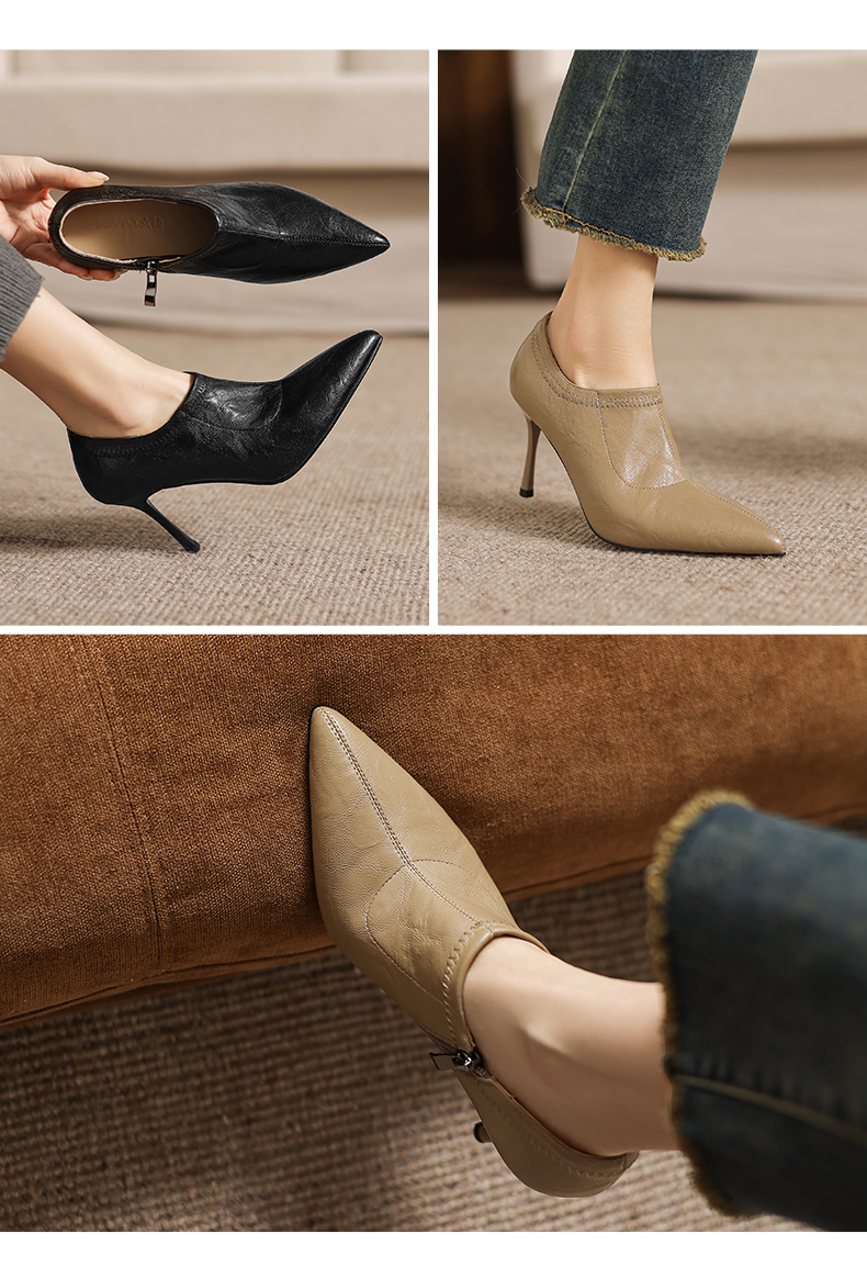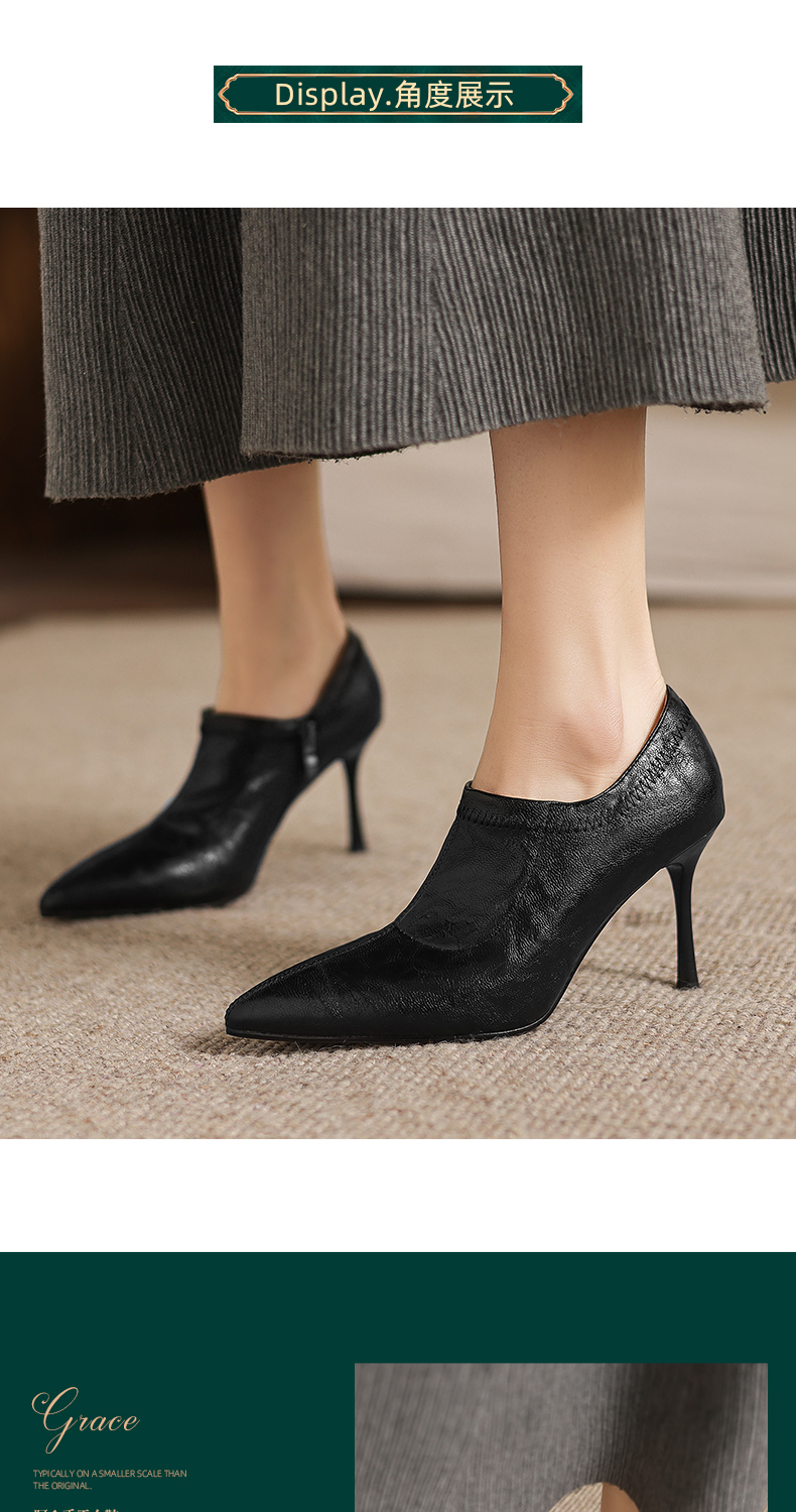 阿么手工女鞋尖头高级时尚上班鞋百搭不累脚简约春季女单鞋8.5CM
