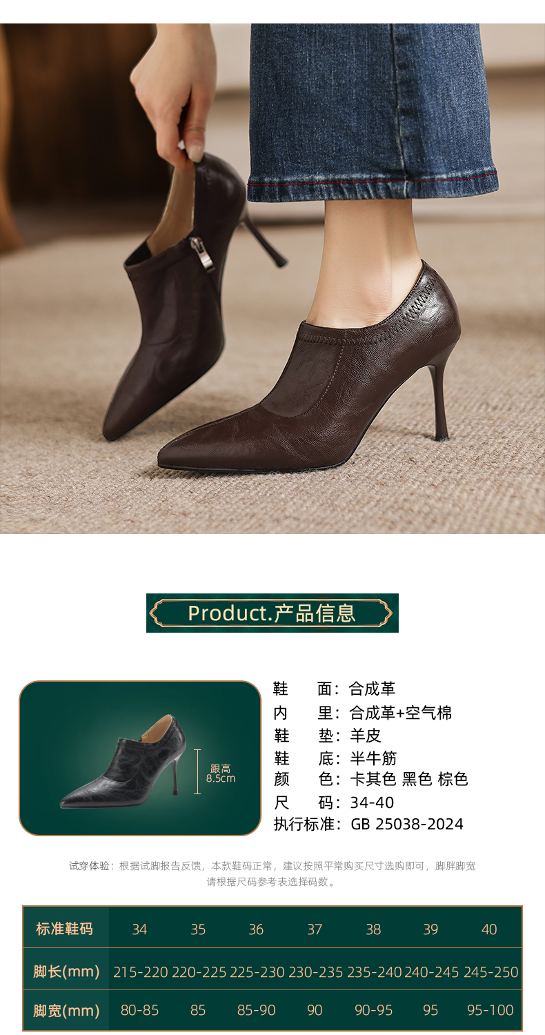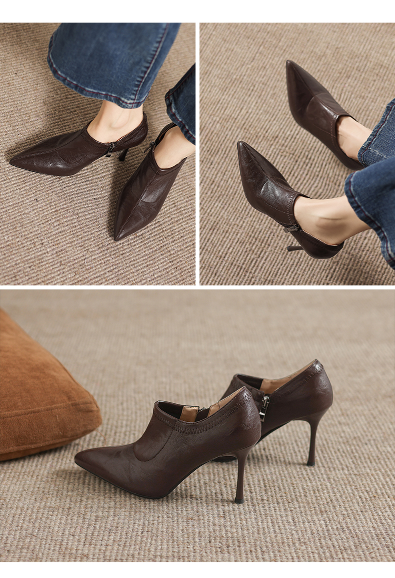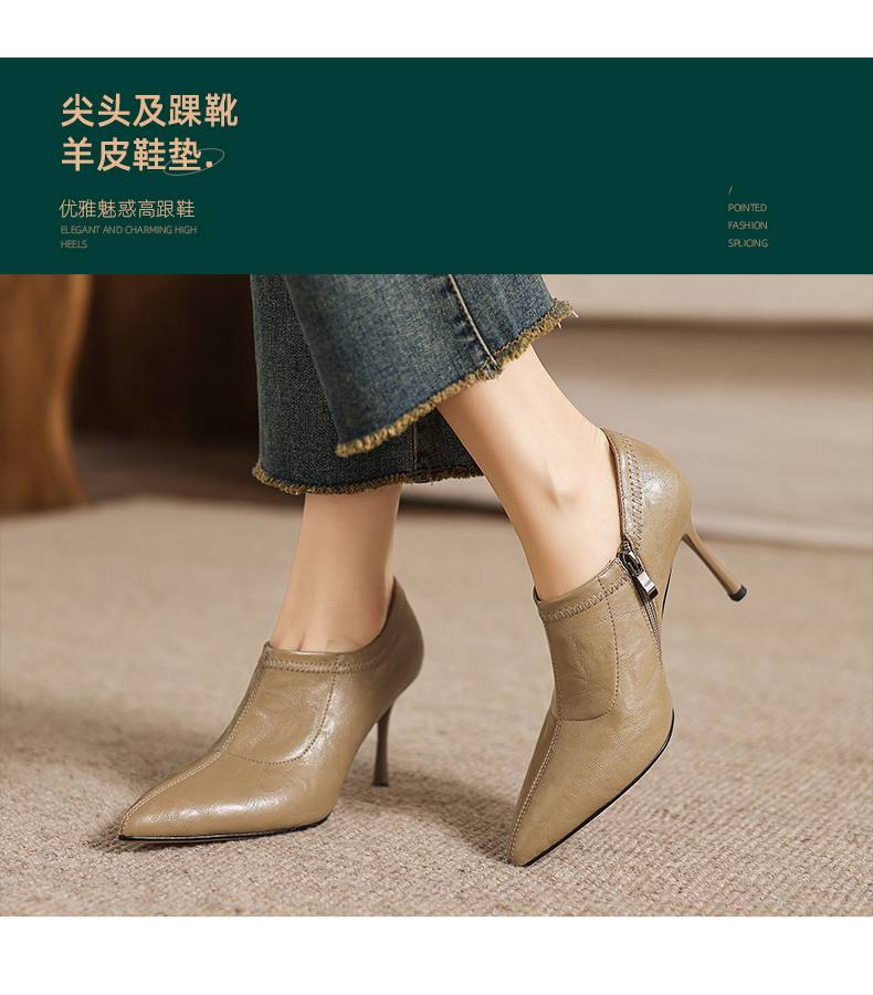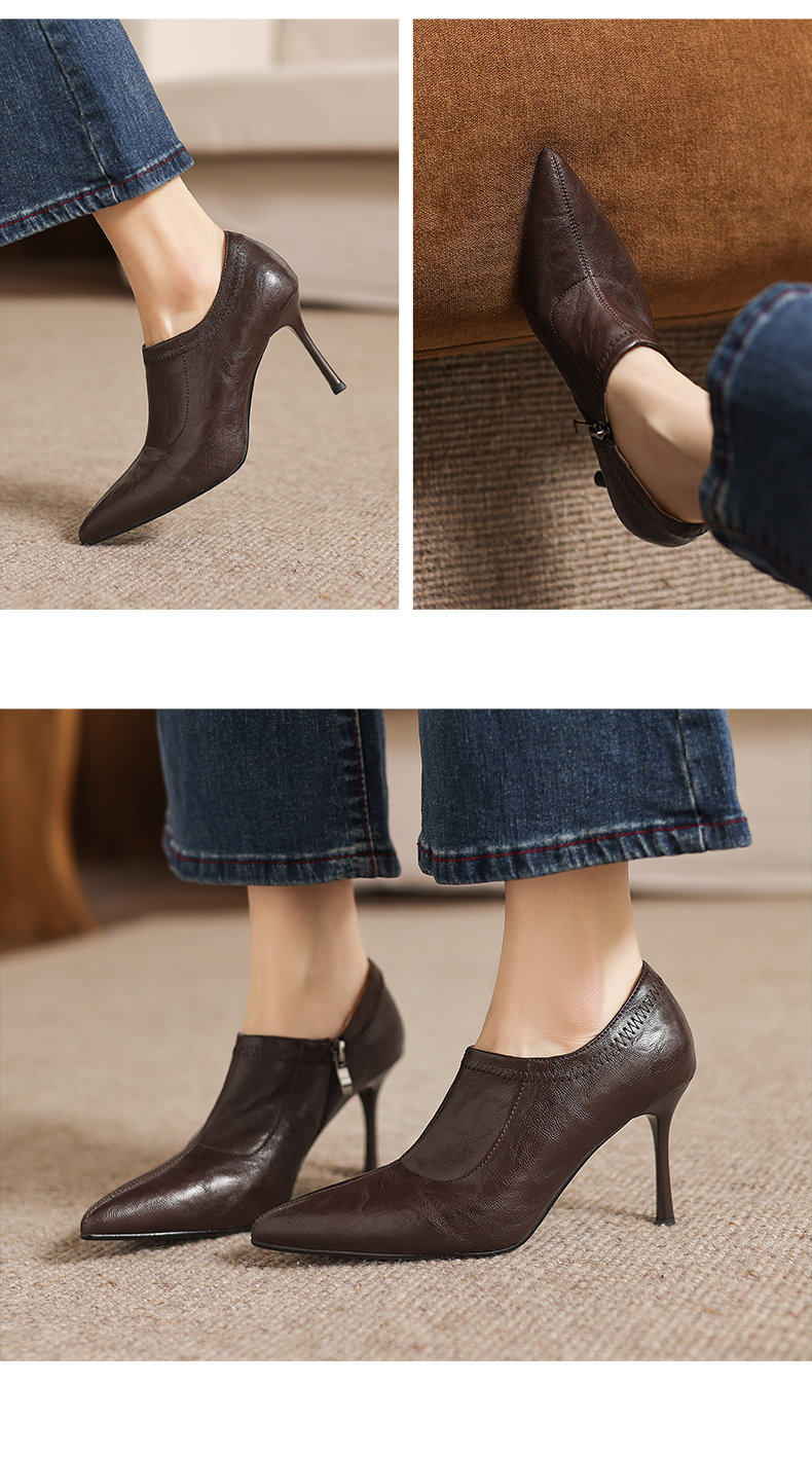 阿么手工女鞋尖头高级时尚上班鞋百搭不累脚简约春季女单鞋8.5CM