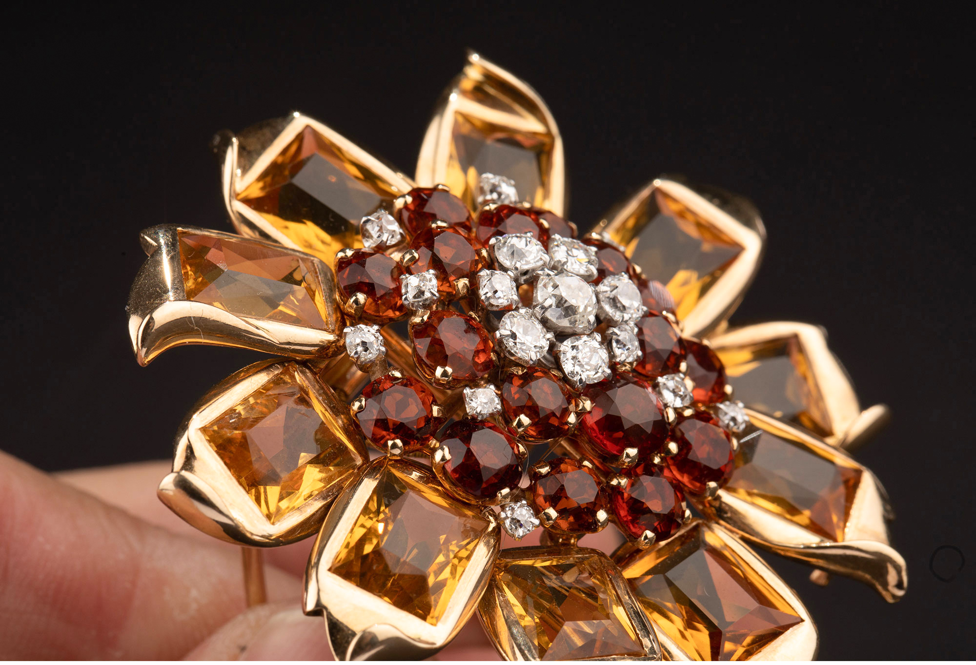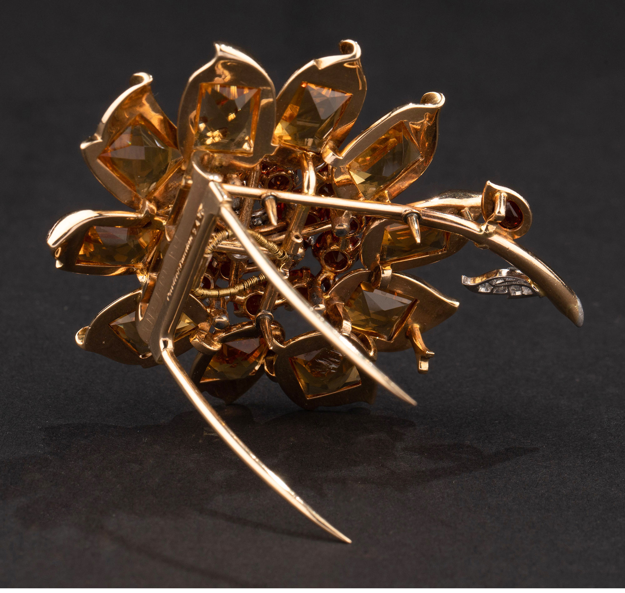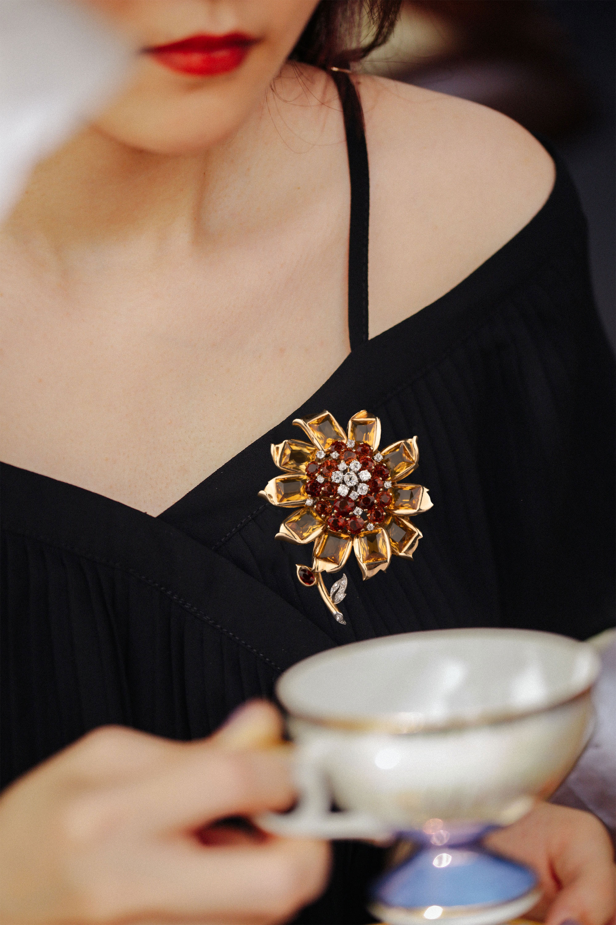 1940年代出品18k黄金镶嵌黄水晶及钻石「向日葵」主题胸针