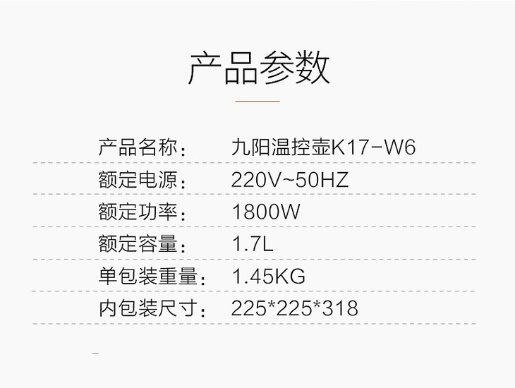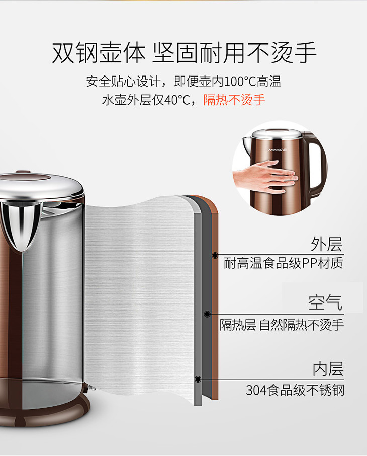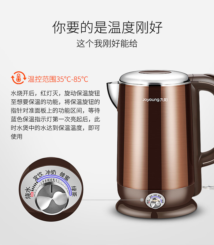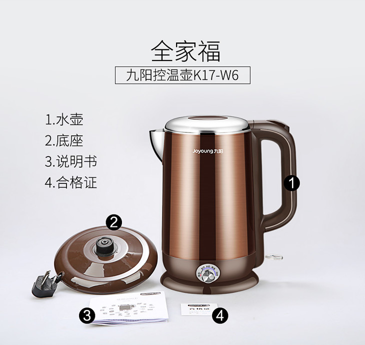 Joyoung/九阳(507645) K17-W6电热水壶304食品级不锈钢家用控温烧开水煲