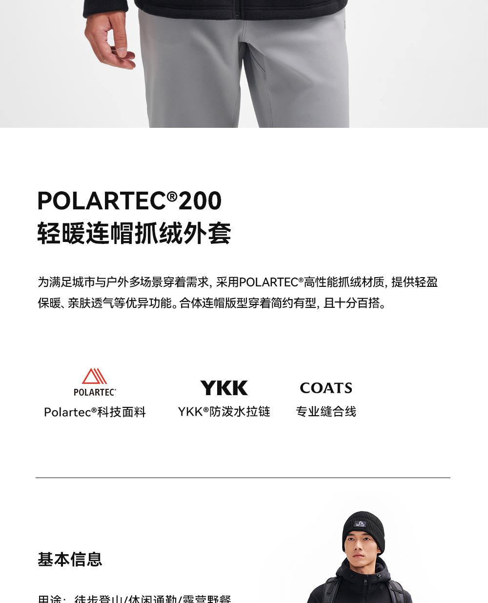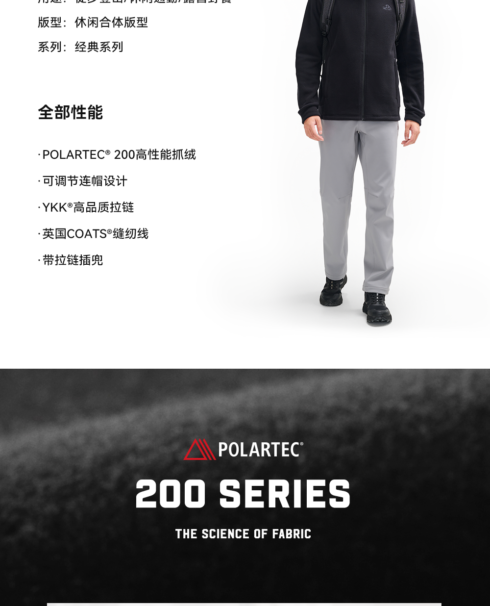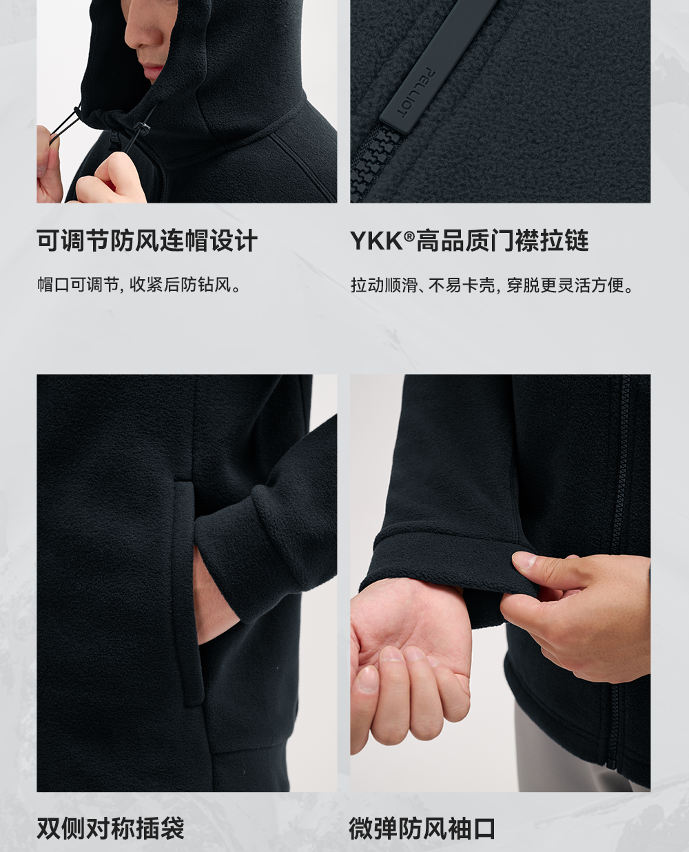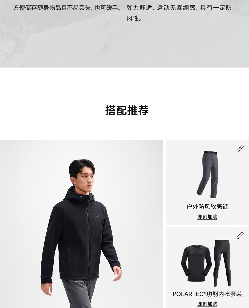 伯希和户外抓绒衣男Polartec200防风保暖运动登山服休闲连帽外套