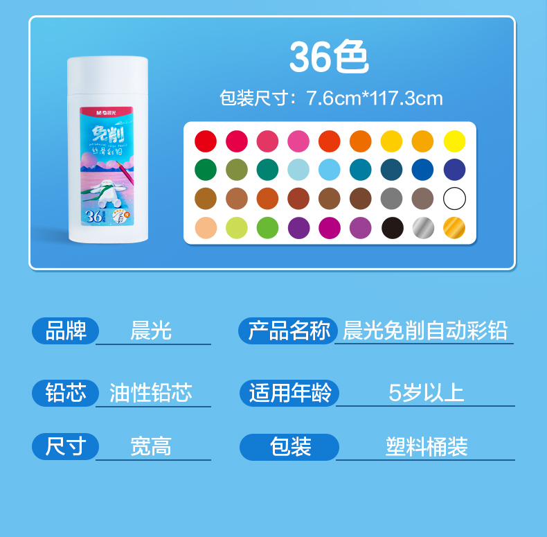 晨光免削彩铅小学生画画专用油性彩色铅笔绘画涂色专用画笔儿童初学者彩笔36色24色18色12色美术素描铅笔套装