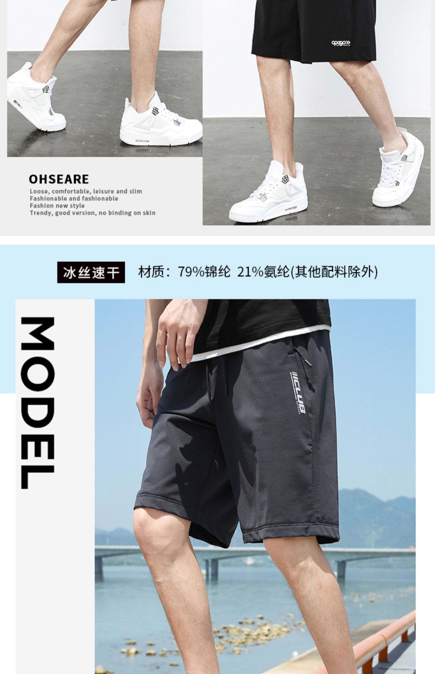 圣得西男士休闲短裤夏季新款冰丝速干凉感薄款运动宽松五分裤2222917017
