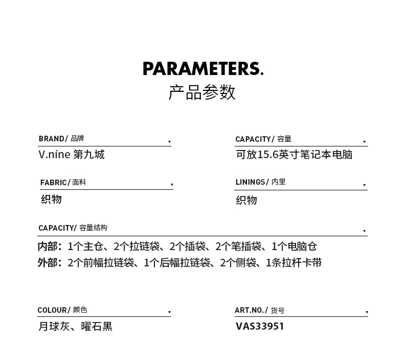 第九城VAS33951 双肩电脑包15.6英寸笔记本电脑包休闲男士背包商务出差包中学生书包女高中生大学生双肩包