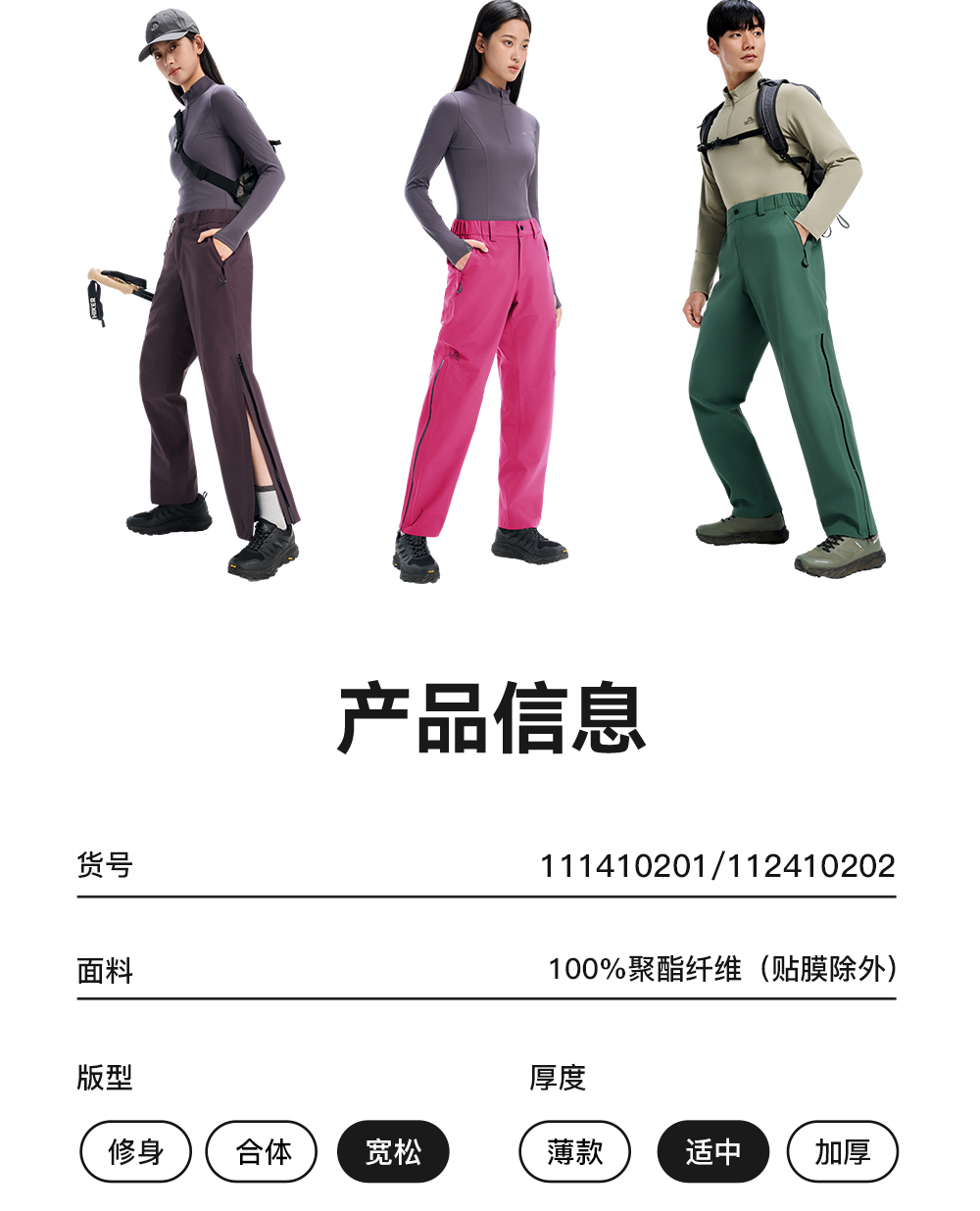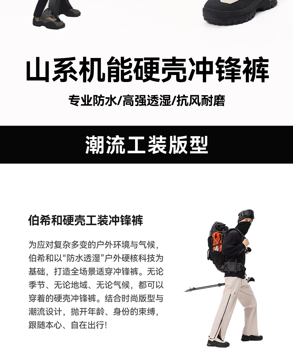 【山壳】伯希和户外硬壳冲锋裤男女防风徒步登山裤压胶防水长裤子