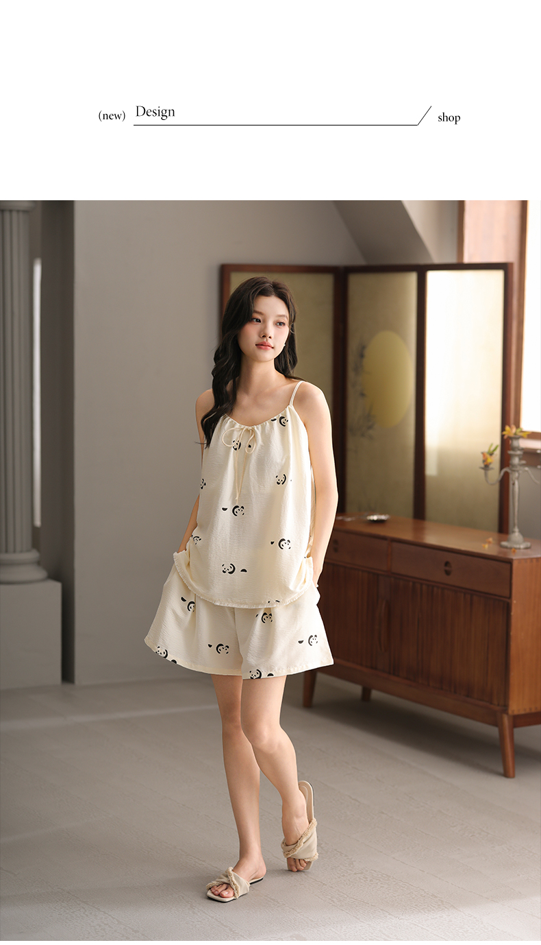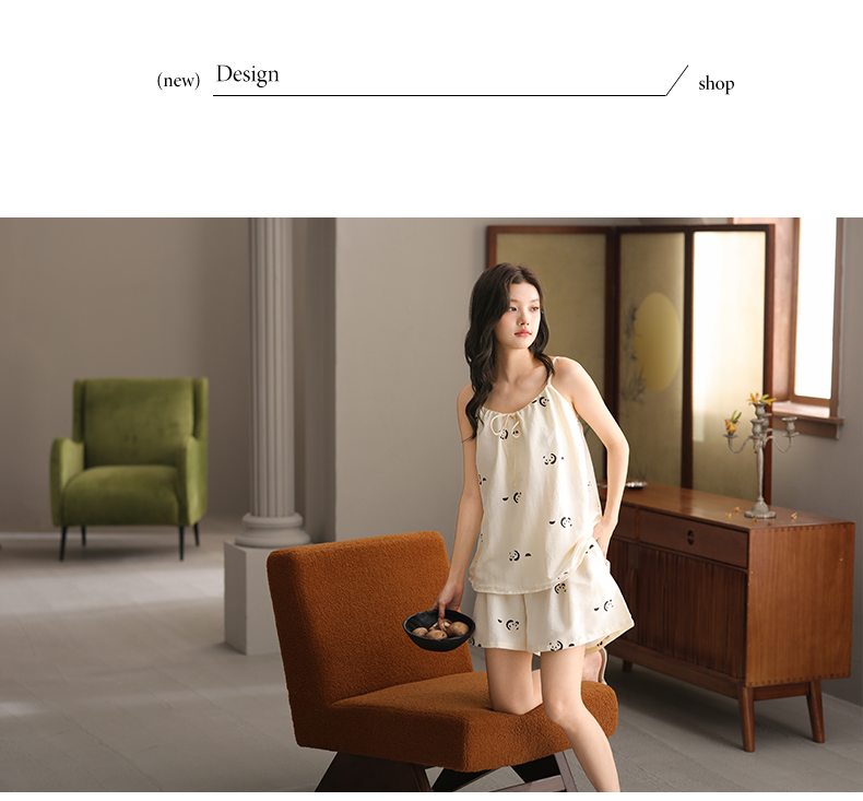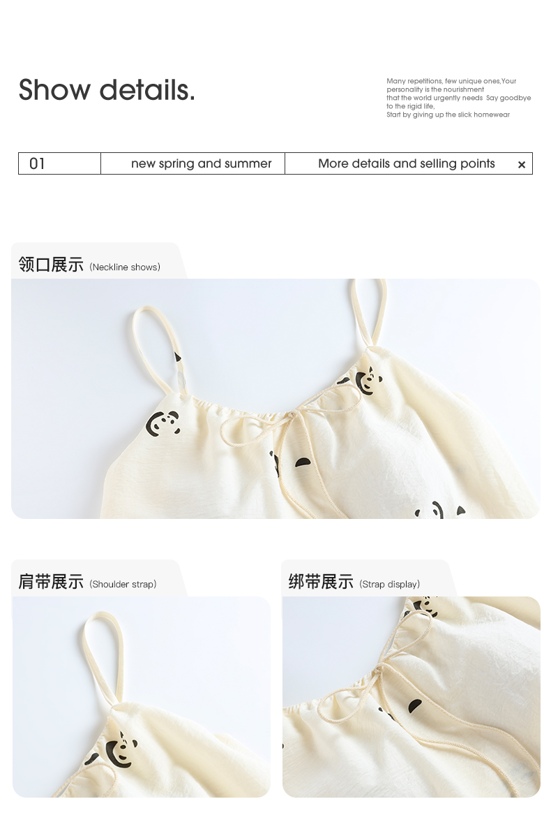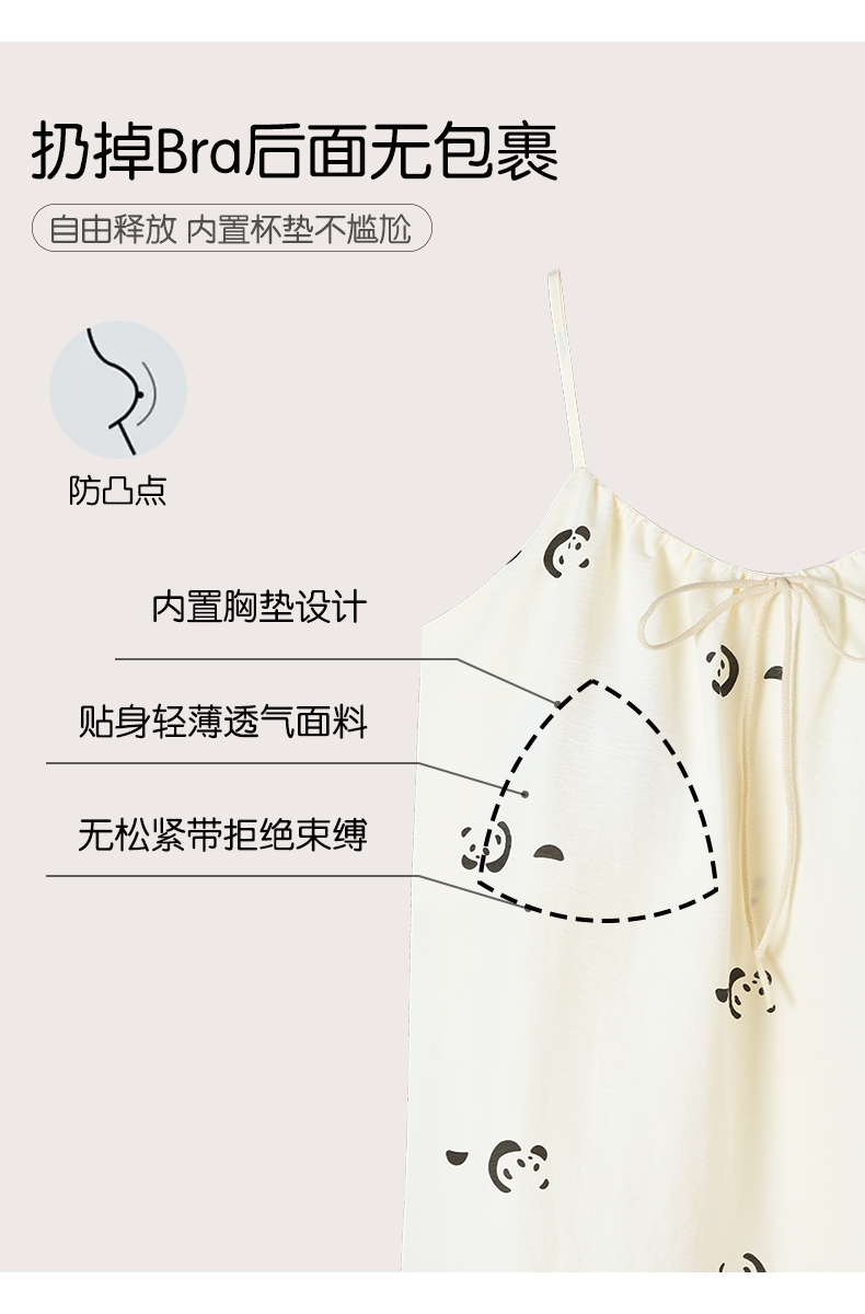 可人儿带bra泡泡绵女士吊带短裤睡衣夏季可外出家居服长裤三件套