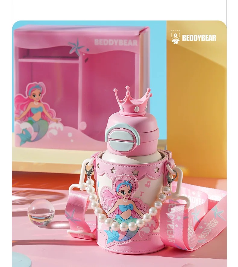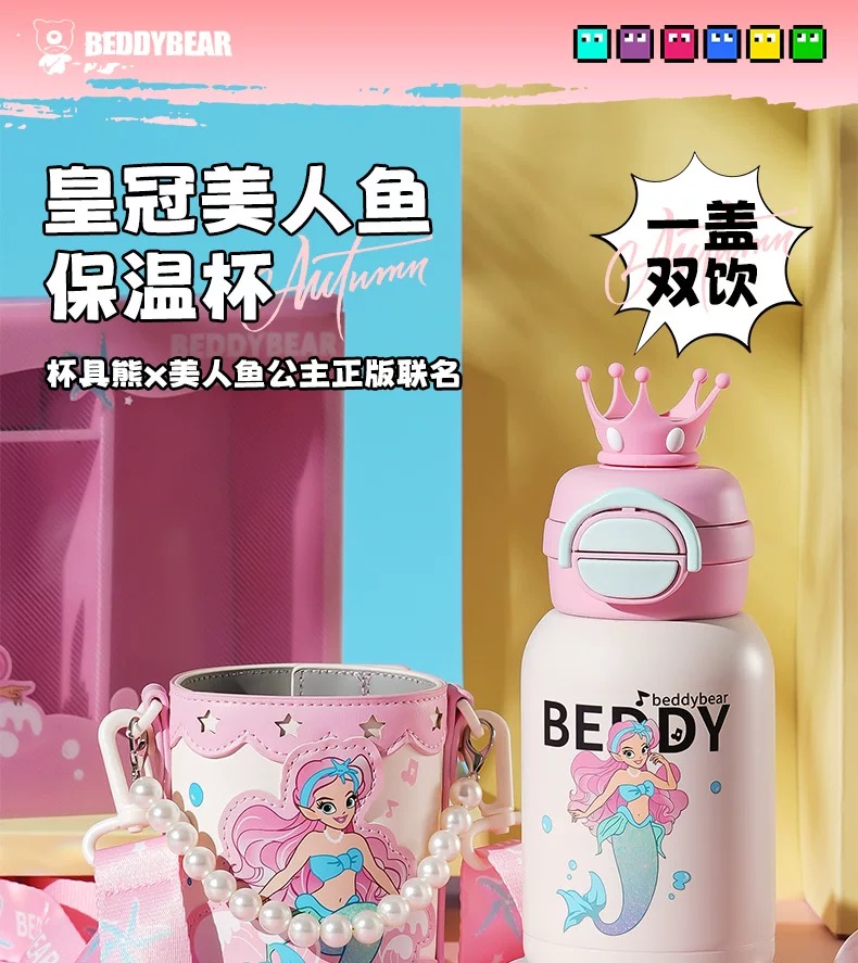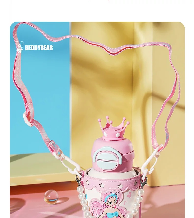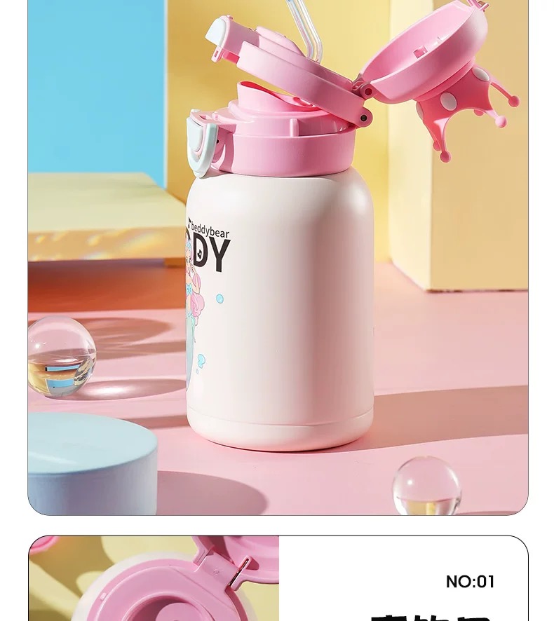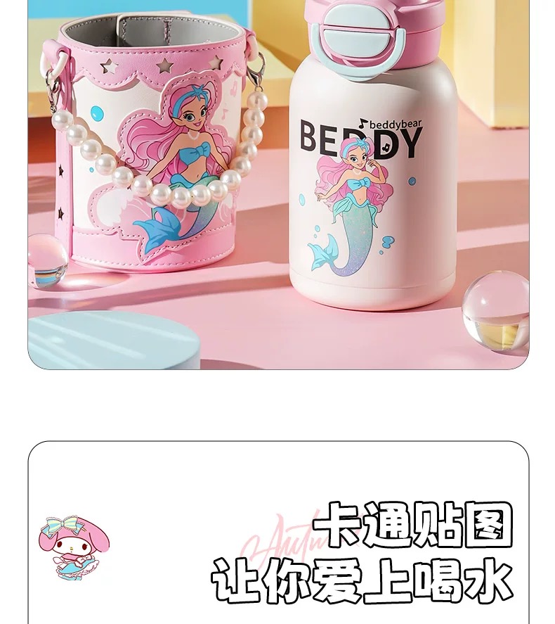 【品牌直发】【杯具熊开口笑双饮杯保温杯】双饮杯600ml 直饮+吸管杯 公主美人鱼儿童水壶可爱学生316不锈钢