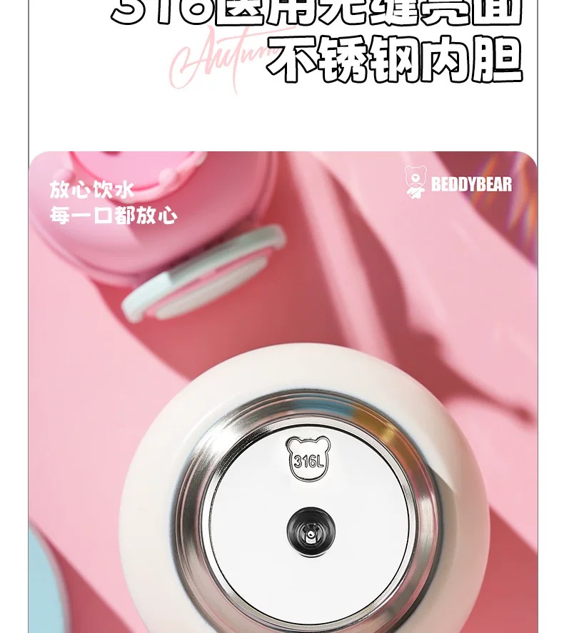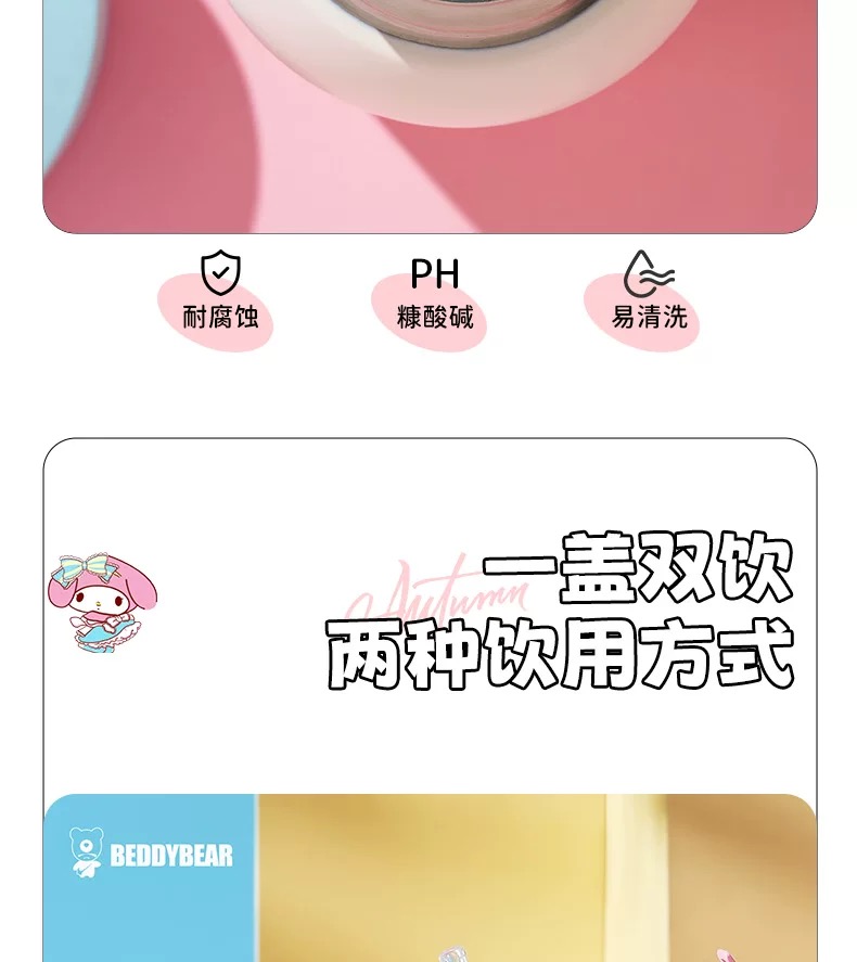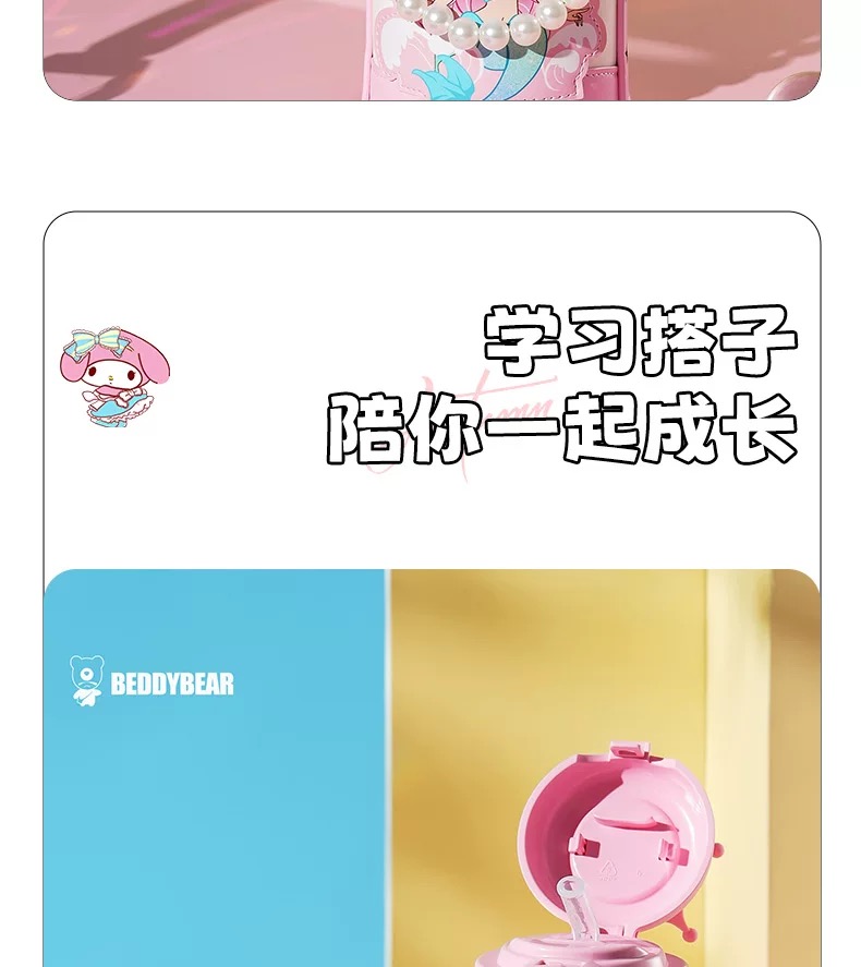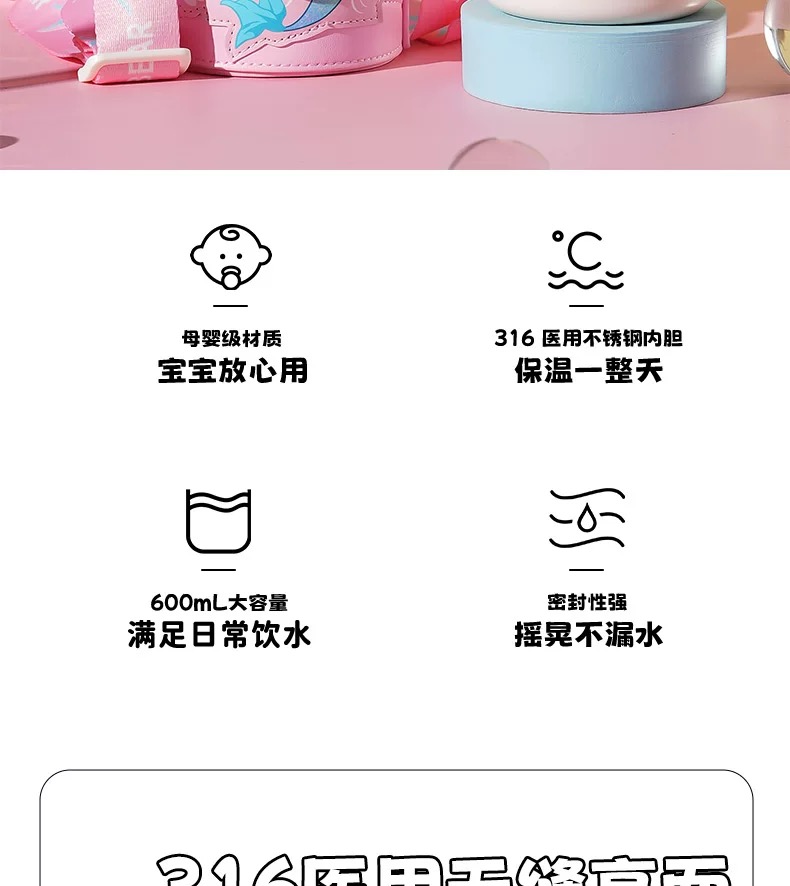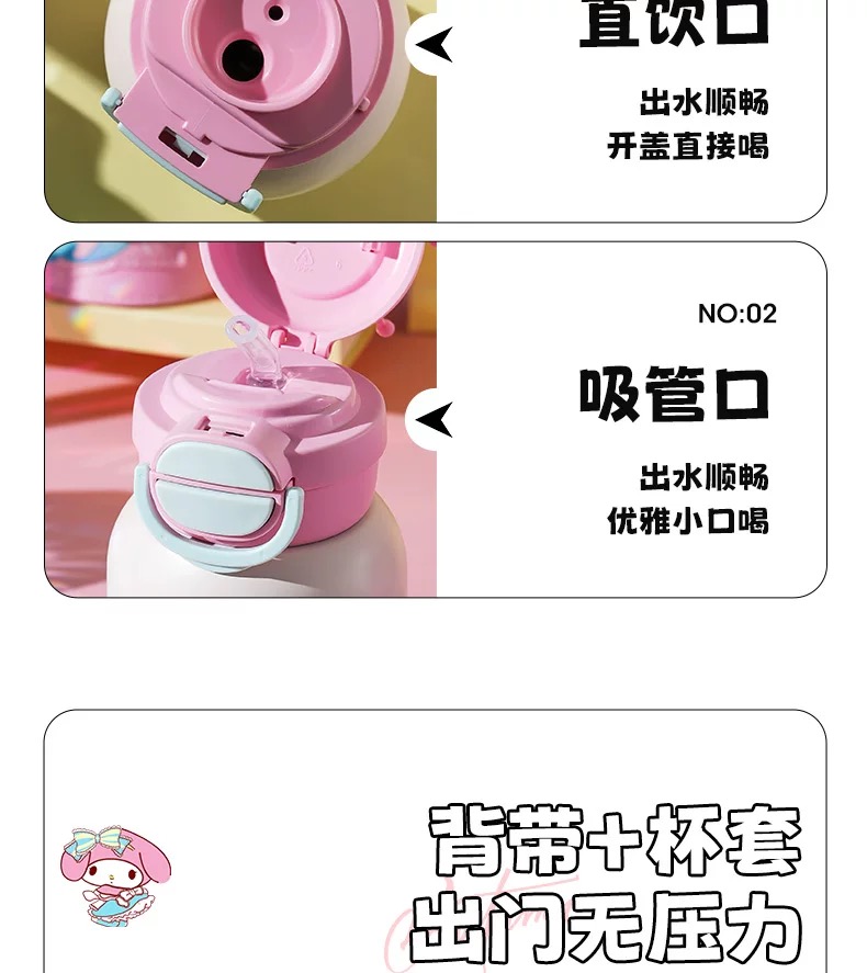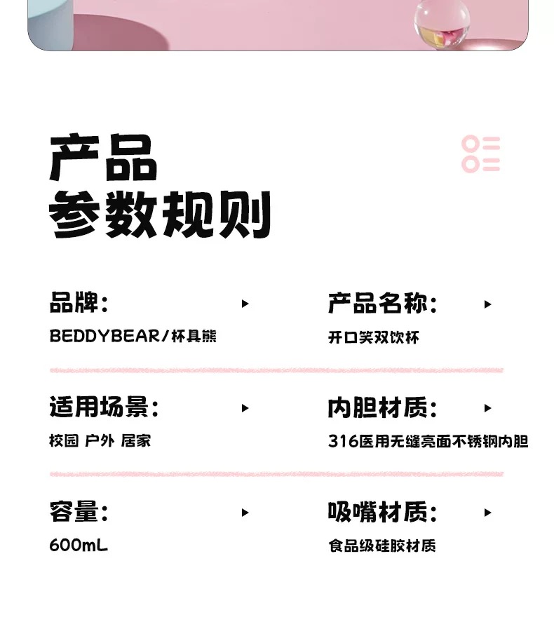 【品牌直发】【杯具熊开口笑双饮杯保温杯】双饮杯600ml 直饮+吸管杯 公主美人鱼儿童水壶可爱学生316不锈钢